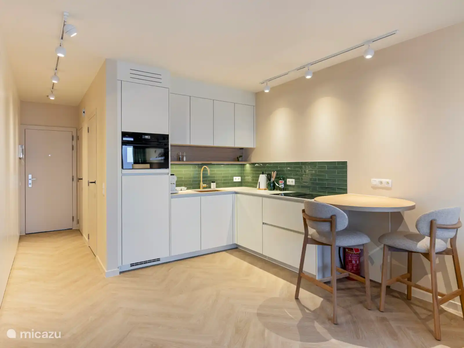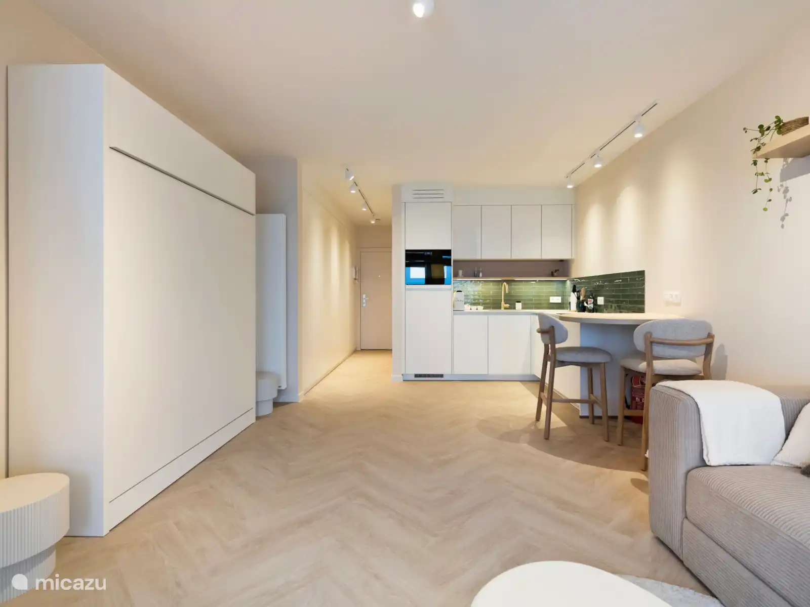 Das Studio ist geschickt eingerichtet mit einem Wandbett im Wohnzimmer, einem modernen Badezimmer mit begehbarer Dusche und separater Toilette sowie einer voll ausgestatteten Küche. Für Ihren Komfort gibt es Heizung, WLAN, Smart-TV, eine Waschmaschine mit Trockner und alle grundlegenden Annehmlichkeiten, die Sie für einen stressfreien Aufenthalt benötigen.