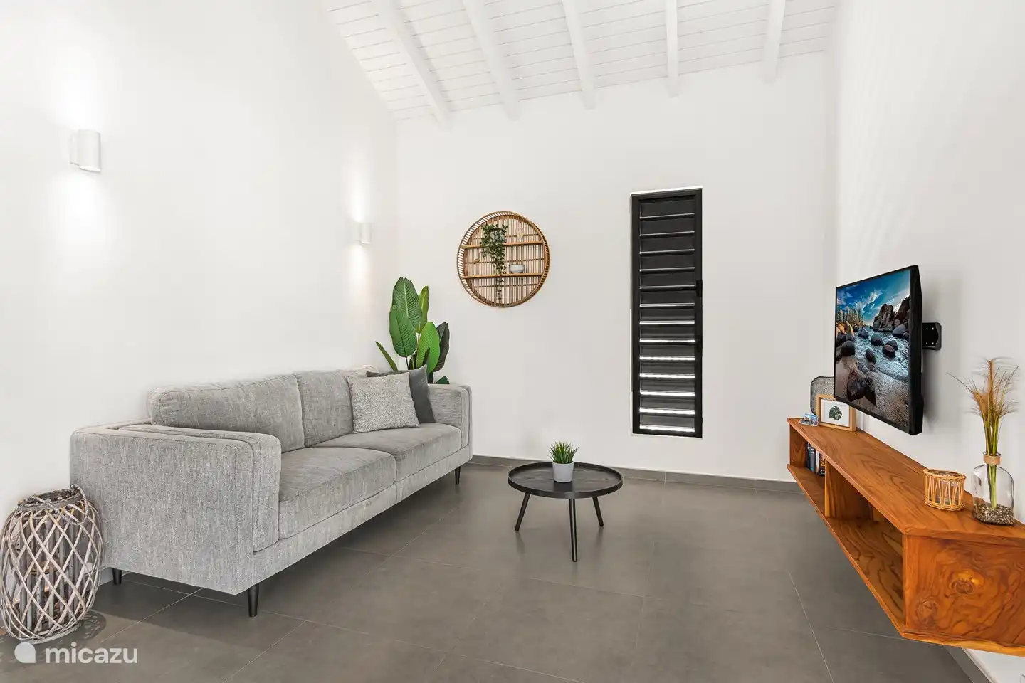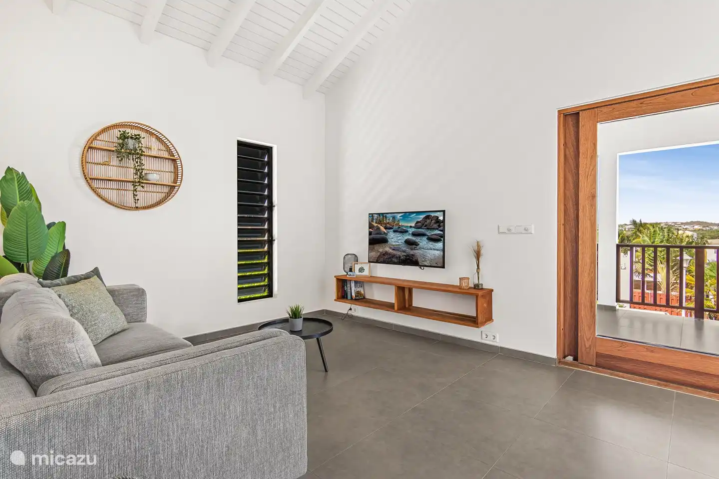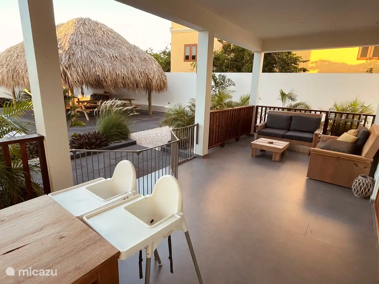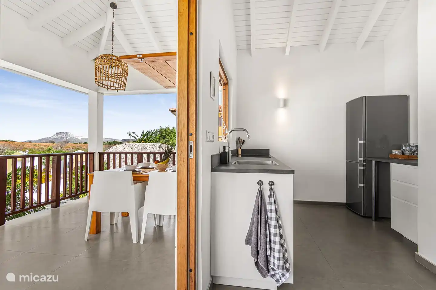 Die Küche ist voll ausgestattet und ein schöner Ort, um ein köstliches Essen zuzubereiten. Es gibt einen großen Kühlschrank/Gefriertruhe, eine Geschirrspülmaschine, eine Senseo-Kaffeemaschine, einen Wasserkocher, einen Kombiofen-Mikrowellen-Ofen und einen Induktionskof. Alle notwendigen Dinge zum Kochen werden bereitgestellt. Von der großen Luke in der Küche aus haben Sie direkten Kontakt zur privaten Terrasse und haben außerdem einen herrlichen Blick auf den karibischen Garten und die Umgebung von der Küche aus.
