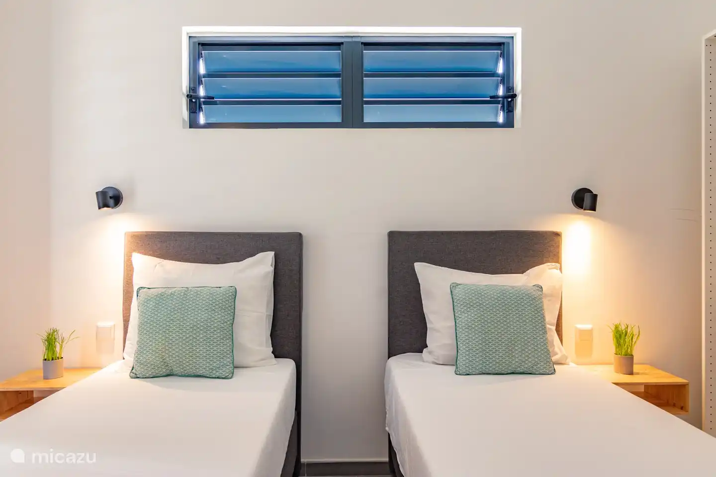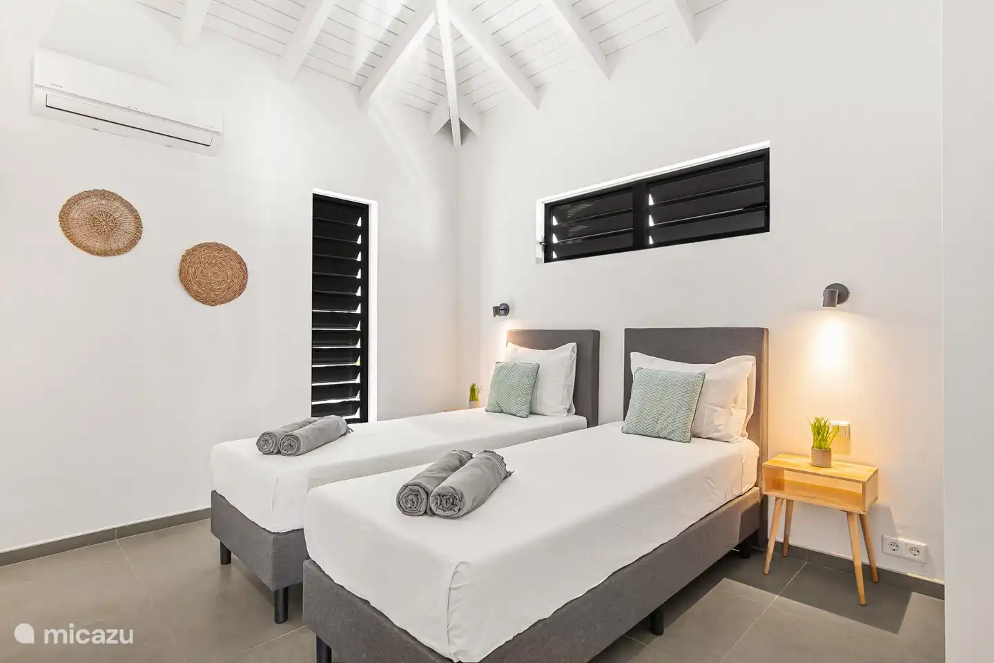 Jede Wohnung verfügt über zwei geräumige Schlafzimmer. Wenn Sie diesen Aufenthalt buchen, haben Sie Zugang zu 4 Schlafzimmern. Die Schlafzimmer verfügen über ein Doppelbett mit Boxspring. Wenn gewünscht, können wir mehrere Betten auseinanderziehen und sie als zwei separate Einzelbetten einrichten. Die Schlafzimmer sind klimatisiert und die Fensterläden sind mit Moskitonetzen ausgestattet.