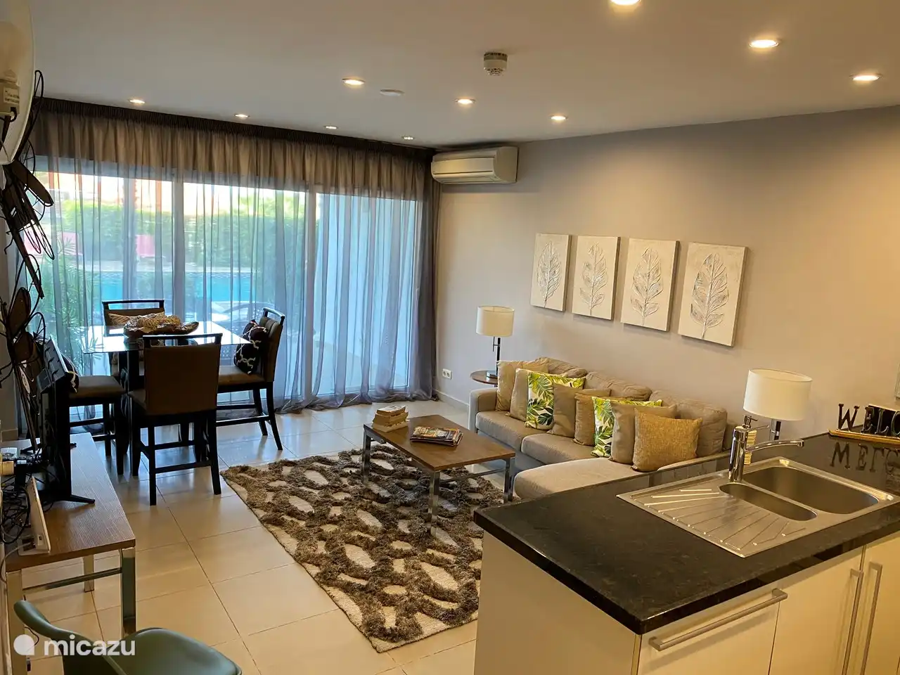 Sie haben dieses Haus aus Ihren Favoriten entfernt. Last Minute appartement, Piscadera, Curacao-Mitte, Curaçao - Royal Breeze (Brise 41 - Blaue Bucht) Auf der Terrasse können Sie essen und entspannen. Ein wunderbarer Raum! Die Küche ist komplett ausgestattet. Die Schlafzimmer verfügen über eine Klimaanlage und ein eigenes Bad. Der Blue Bay Beach Beach ist kostenlos und etwa 10 Gehminuten entfernt. Willkommen in dieser brandneuen Wohnung. Sie können die Schiebetüren ganz öffnen, um einen großen Raum zu schaffen. Das Wohnzimmer ist gemütlich und verfügt über einen Smart-TV. In der Küche kann ausgiebig gekocht werden. Alle Küchengeräte sind vorhanden. Die Küche ist gemütlich mit dem Wohnzimmer und der Terrasse verbunden. Genießen Sie einen Drink an der Kücheninsel. Schöne Aussicht! Auf der großen Terrasse können Sie eine kühlende Brise genießen. Essen Sie gemeinsam auf der Terrasse. Sie können bis zum Golfplatz sehen. Draußen können Sie einen herrlichen tropischen Blick genießen. Die Schlafzimmer verfügen jeweils über ein eigenes Bad. Das Schlafzimmer verfügt über Klimaanlage und Fernseher. Dieses Schlafzimmer verfügt über einen TV und ein Doppelbett. Mit eigenem Bad. Das Badezimmer verfügt über eine Dusche und ein WC. Eigene Toilette und Dusche. Das andere Schlafzimmer verfügt über einen Arbeitsbereich und ein eigenes Bad. Ein Doppelwaschbecken und eine Dusche. Das Badezimmer verfügt über eine Toilette und eine Dusche. Die Wohnung befindet sich an der Ecke, im Erdgeschoss. In der Waschküche finden Sie eine Waschmaschine, einen Trockner und Reinigungsmittel. Wunderschöner Ort! Genießen Sie den Pool. Der Komplex ist von tropischen Gärten umgeben. Der Komplex verfügt über zwei Swimmingpools. Hier können Sie Bahnen schwimmen. Abkühlendes Schwimmen neben der Wohnung. Du willst hier einsteigen, nicht wahr? Es gibt mehrere Swimmingpools im The Breeze. Der Komplex ist brandneu. Sie können vor der Tür parken. Du gehst eine Treppe hinunter, um zur Haustür zu gelangen. Sie können kostenlos parken. Sie können den Strand kostenlos nutzen, wo es auch Strandbars gibt. Blue Bay Beach nach Einbruch der Dunkelheit. Blue Bay Beach ist ein wunderschöner Ort, 10 Gehminuten entfernt. Royal Breeze (Brise 41 - Blaue Bucht) 9,3 Curaçao Curacao-Mitte Sint Michiel 1-4 Personen 2 Schlafzimmer 7 Bewertungen Nachtpreis ab Pro Woche (7 Nächte): € 1.188,- Nachtpreis ab € 170,-