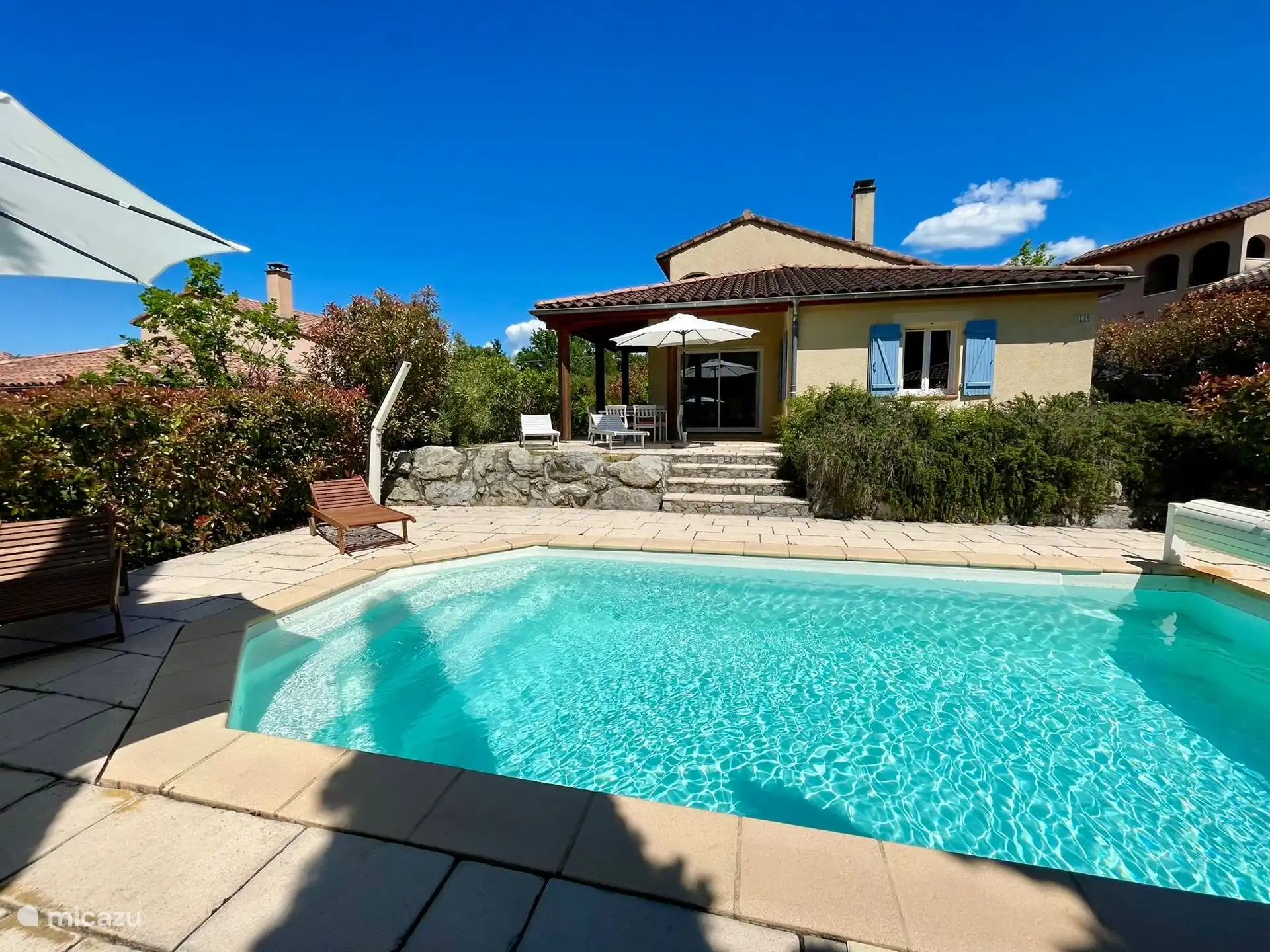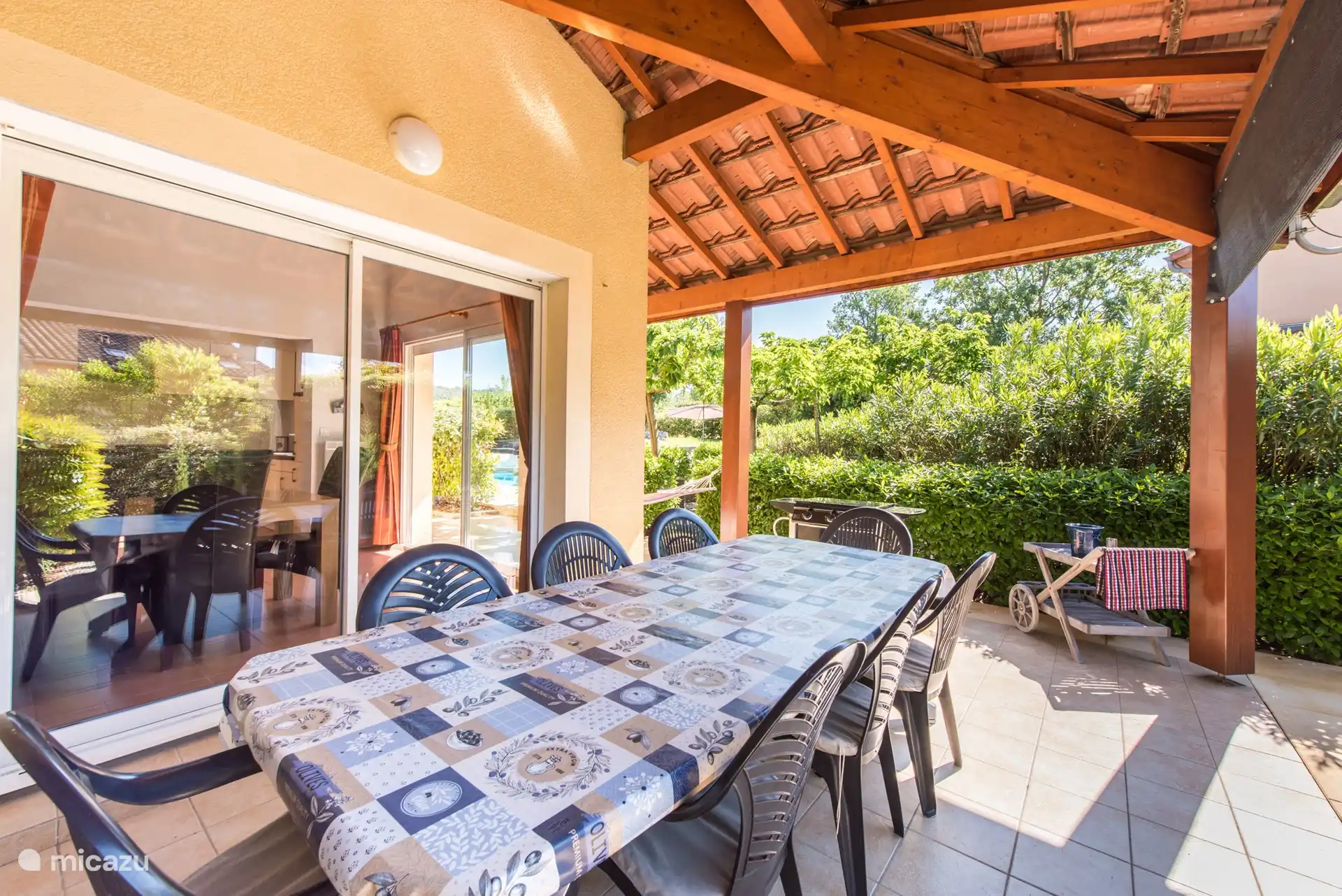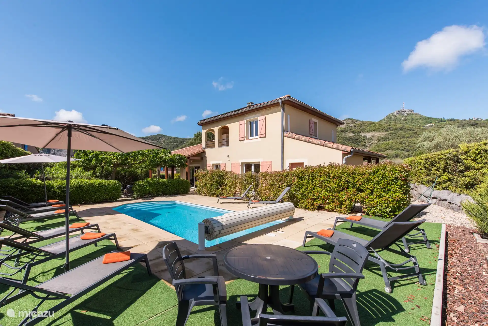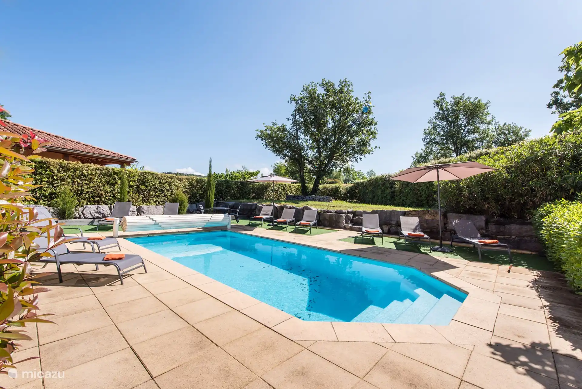 Außenbereich: Im großzügigen Garten haben Sie einen schönen Blick über die umliegenden Weinberge und Hügel, die Villa befindet sich am Rande des Parks. Es gibt einen privaten Swimmingpool von über 9 x 4 Metern, der gegen eine zusätzliche Gebühr beheizt werden kann. Rund um den Pool gibt es viele Liegestühle, um die französische Sonne zu genießen. Das Schwimmbad ist von April bis Oktober geöffnet. Möchten Sie sich lieber in den Schatten zurückziehen? Oder im Schatten speisen? Dann können Sie dies auf der schönen überdachten Terrasse mit Tisch und Stühlen tun. Im hinteren Teil des Gartens steht den Gästen ein neues und komfortables Lounge-Set zur Verfügung. Sie können das Trampolin auch benutzen (auf eigene Gefahr). Parkplätze stehen auf der privaten Einfahrt zur Verfügung. Für Elektroautos können Sie die Ladestation zwischen 9:00 und 18:00 Uhr nutzen.