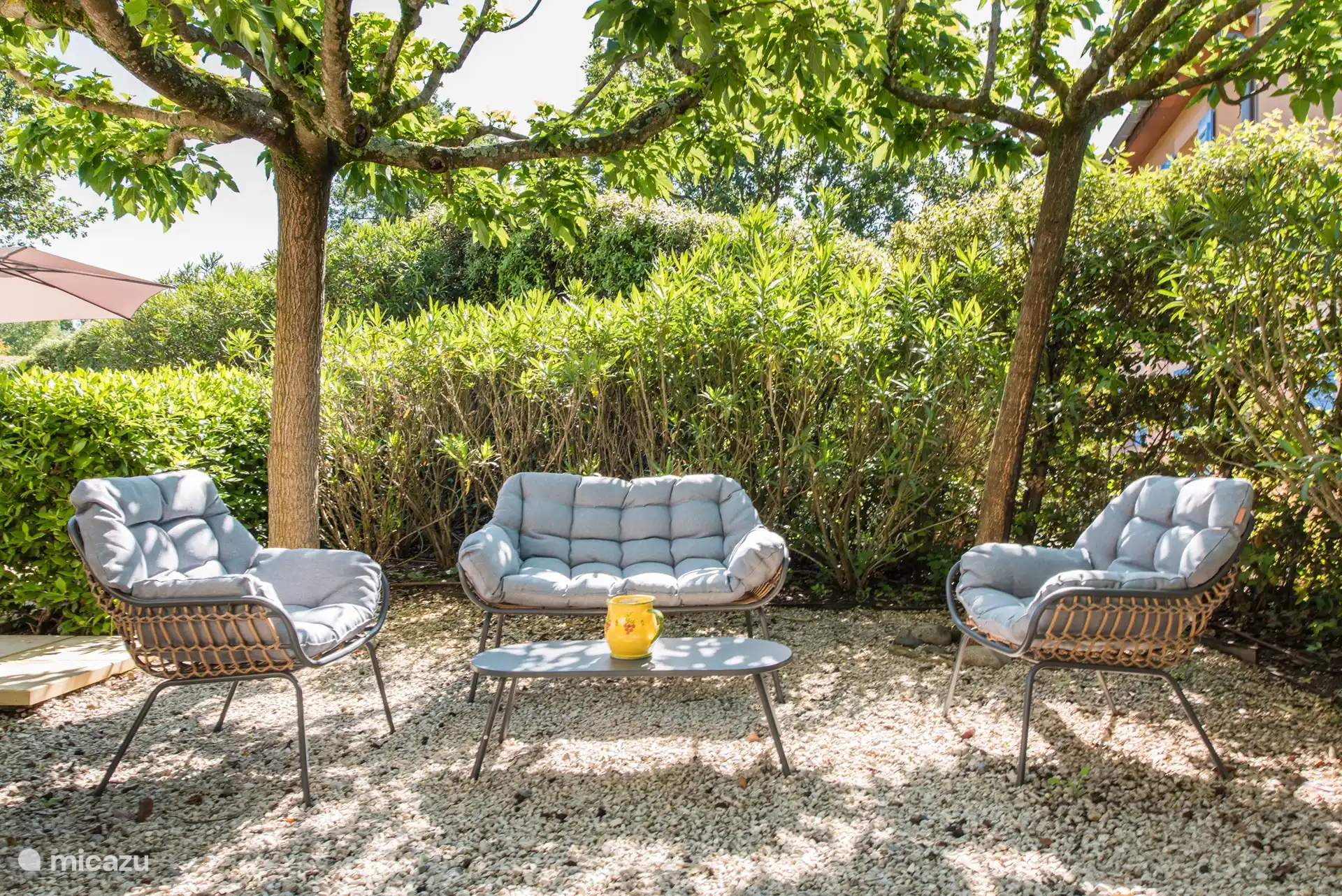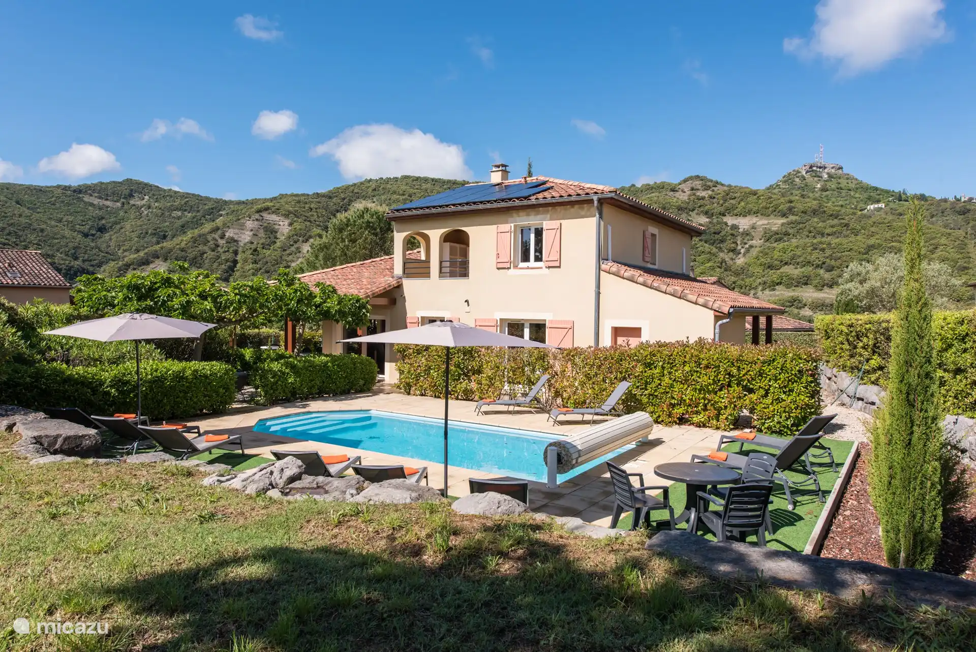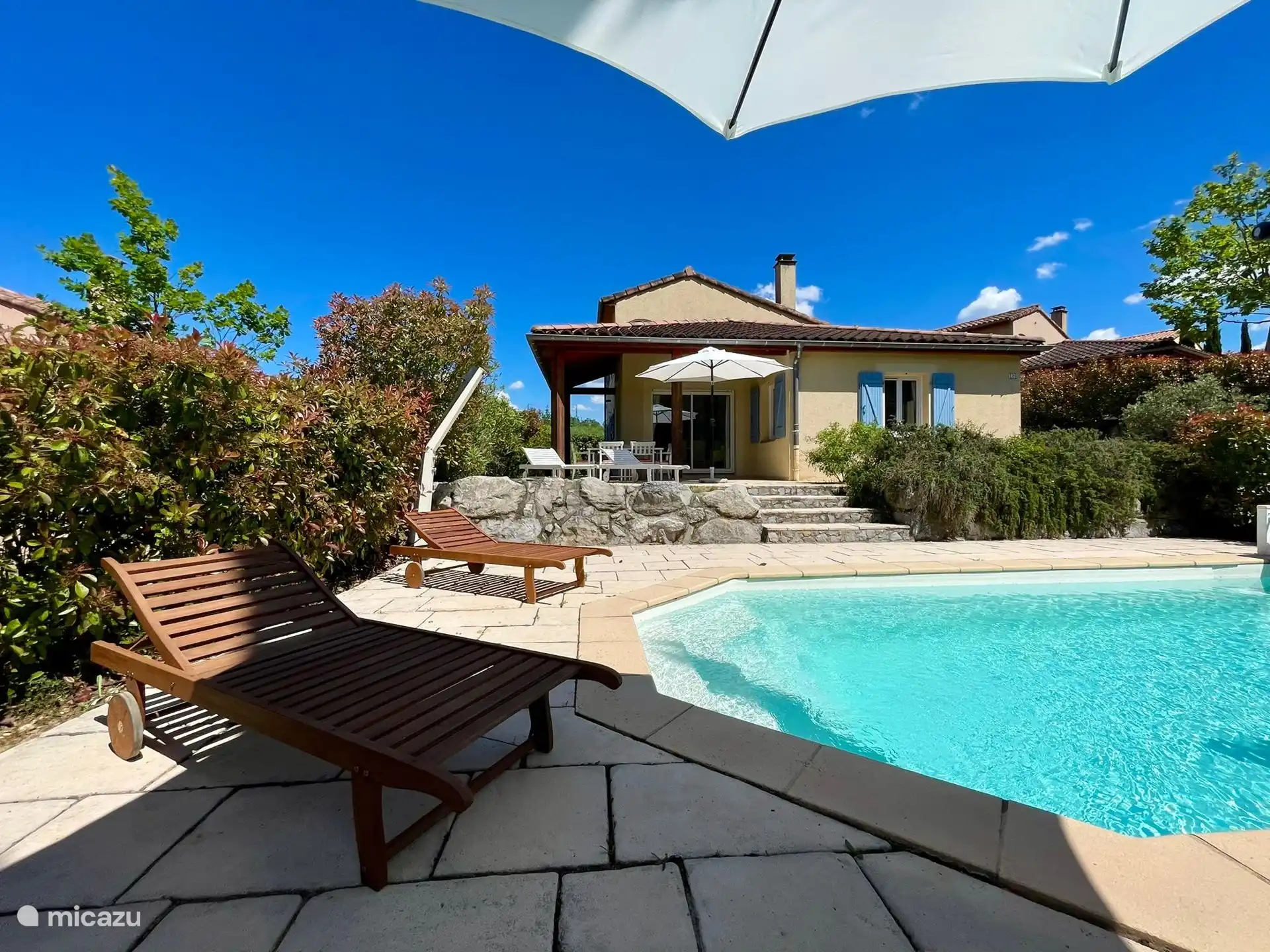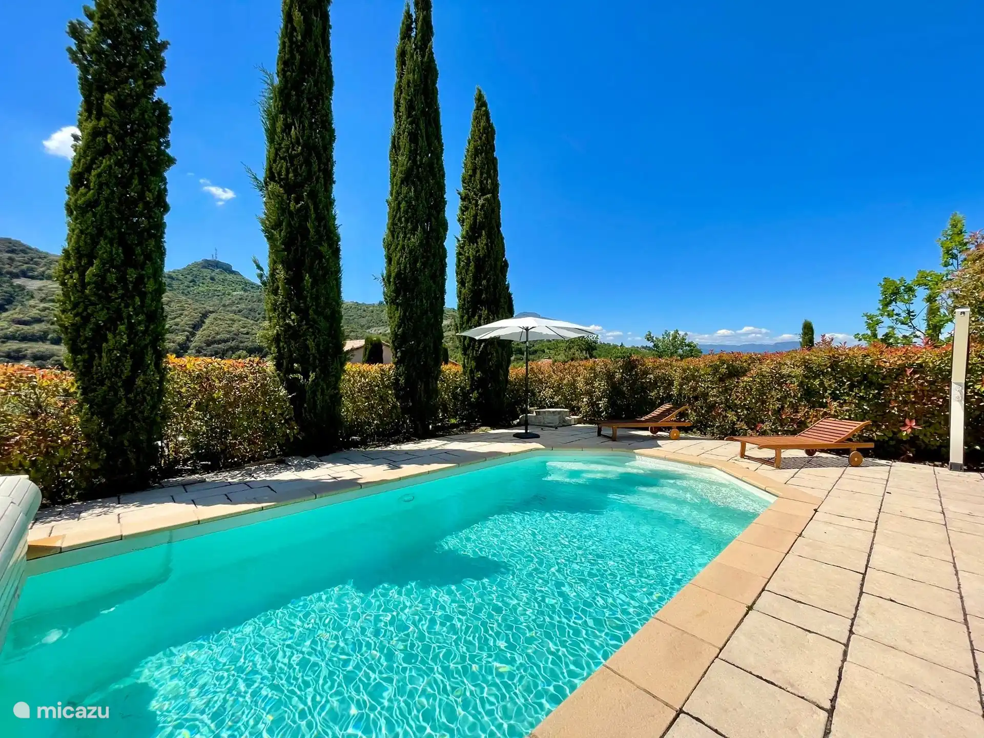 Außenbereich: Im großzügigen Garten haben Sie einen schönen Blick über die umliegenden Weinberge und Hügel, die Villa befindet sich am Rande des Parks. Es gibt einen privaten Swimmingpool von über 9 x 4 Metern, der gegen eine zusätzliche Gebühr beheizt werden kann. Rund um den Pool gibt es viele Liegestühle, um die französische Sonne zu genießen. Das Schwimmbad ist von April bis Oktober geöffnet. Möchten Sie sich lieber in den Schatten zurückziehen? Oder im Schatten speisen? Dann können Sie dies auf der schönen überdachten Terrasse mit Tisch und Stühlen tun. Im hinteren Teil des Gartens steht den Gästen ein neues und komfortables Lounge-Set zur Verfügung. Sie können das Trampolin auch benutzen (auf eigene Gefahr). Parkplätze stehen auf der privaten Einfahrt zur Verfügung. Für Elektroautos können Sie die Ladestation zwischen 9:00 und 18:00 Uhr nutzen.