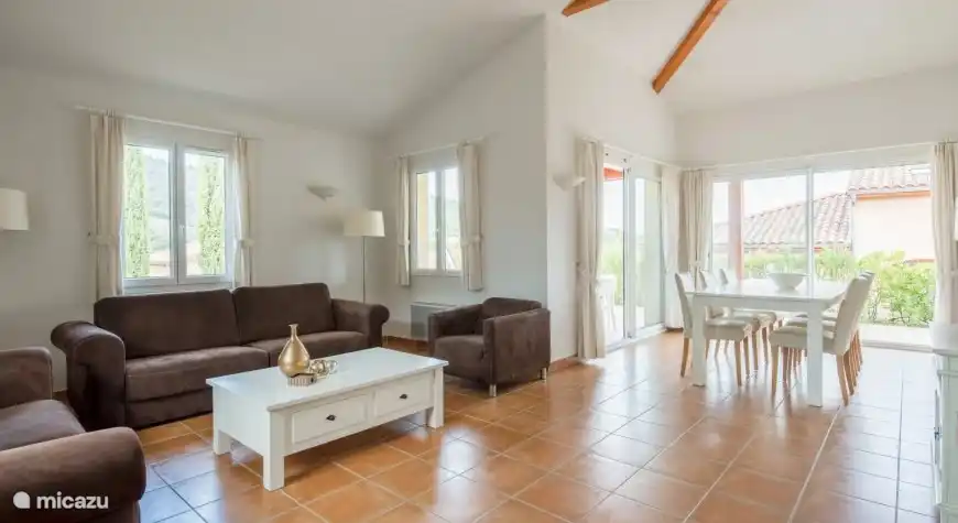 Schöne, geräumige Villa für 10 Personen, am Rande des Ferienparks Les Rives de l'Ardèche in der Nähe des malerischen Dorfes Vallon-Pont-d'Arc in der Ardèche. Im Park können die Gäste dieser Villa alle Einrichtungen des Parks kostenlos nutzen, wie z. B. den großen gemeinschaftlichen Außenpool, die Tennisplätze und den Spielplatz. Der Fluss Ardèche liegt 500 m vom Garten entfernt.