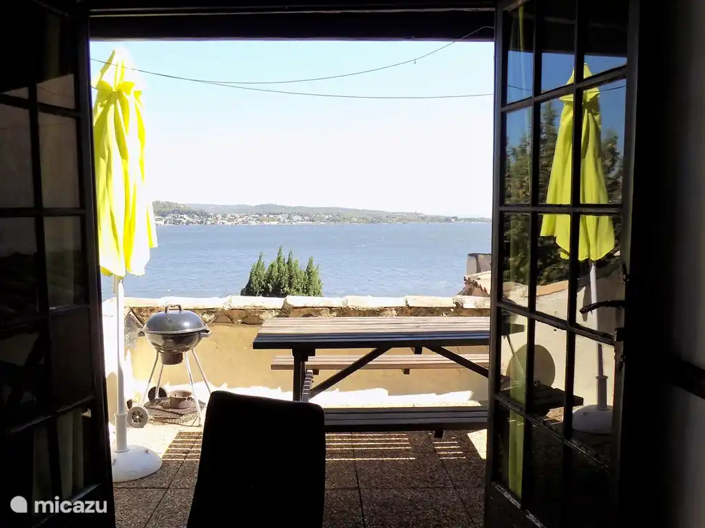 Sie betreten den Raum durch einen kleinen Flur, links befindet sich ein Schlafzimmer mit 2 Einzelbetten (90 x 190) und geradeaus das Badezimmer mit Waschbecken, Dusche und WC. Über eine Treppe gelangt man in den ersten Stock, wo sich das Wohnzimmer mit einer Sitzecke mit 2 Einzelbetten (90 x 190), der offene Küchenbereich mit großem Kühlschrank mit Gefrierfach, einem 4-Flammen-Gasherd und Geschirr, Besteck usw. und der Esstisch sowie ein Schlafzimmer mit einem Doppelbett (140 x 190) befinden. Französische Türen öffnen sich zur Terrasse, die etwas kleiner ist als die anderen, aber natürlich mit Tisch, Sonnenschirm, kleinem Grill und mit herrlichem Blick über den See. Im Ferienhaus gibt es Bettwäsche, Bettdecken, Decken und Kissen, bitte bringen Sie Ihre eigenen Handtücher mit.