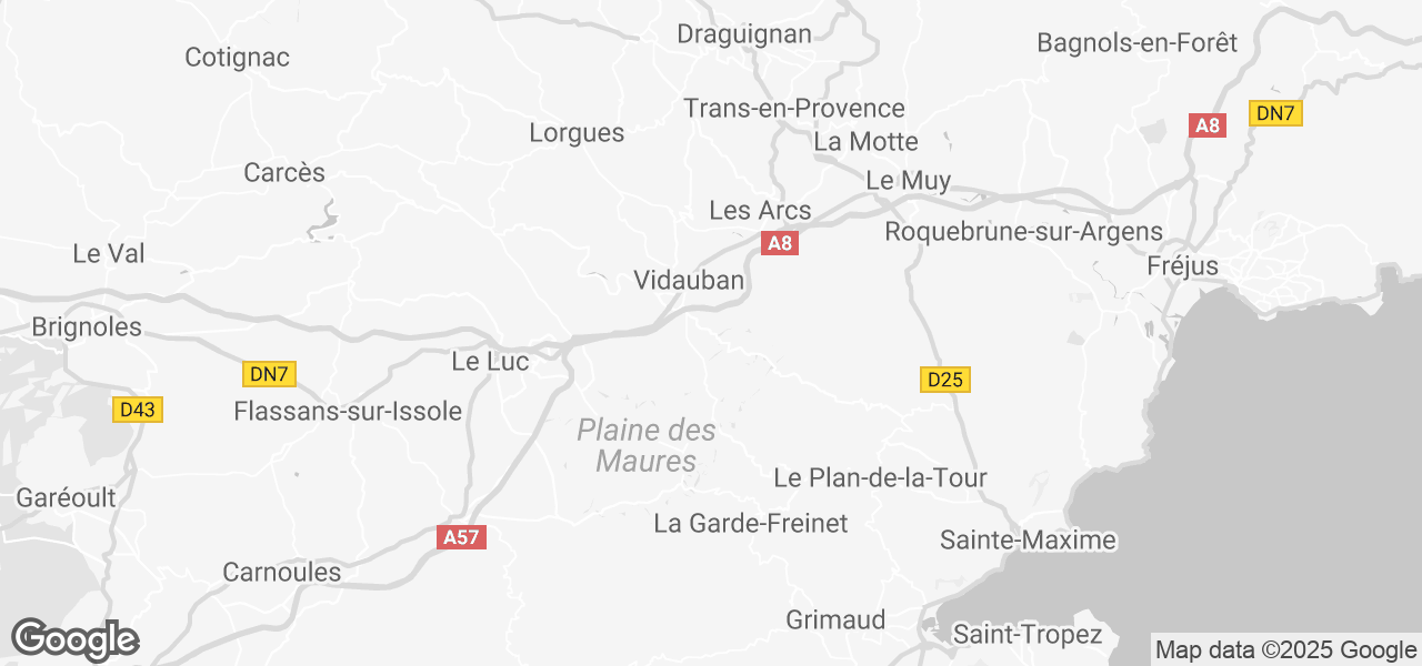 Auf der einen Seite liegt das große Naturschutzgebiet " Le Massif des Maures" und auf der anderen Seite der Boulevard und die Strände von Sainte-Maxime. "Maures" kommt vom provenzalischen Begriff "maouro", was dunkel bedeutet, das Mittelgebirge erstreckt sich zwischen Hyères und Saint- Raphael. Die Berge sind dicht mit Kastanien, Korke, Eichen und Pinien bedeckt. Eine Spazierfahrt führt durch unberührte und einsame Berglandschaften über steile und enge Strässchen mit atemberaubenden Aussichten. Sie führen in Dörfer wie Collobrières, für seine Kastanienmarmelade und kandierten Kastanien bekannt, oder das aus dem 12. Jahrhundert stammende Kartäuserkloster Chartreuse de la Verne und La Garde-Freinet. Das für sein Kunsthandwerk bekannte Dorf bietet Grimaud einen atemberaubenden Blick auf die Berge und die Küste.