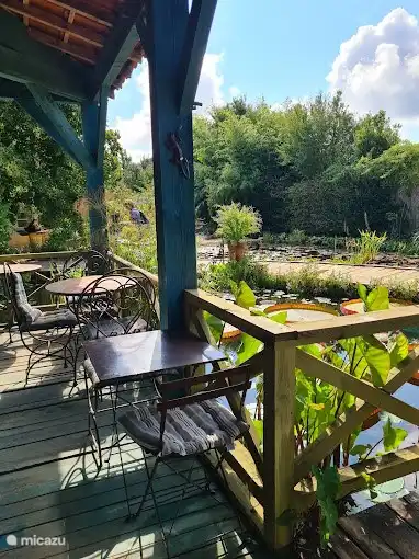 Die Treppe im Wohnzimmer führt zu einem Schlafzimmer mit Doppelbett und 2 Einzelbetten. Wenn Sie morgens die französischen Fensterläden öffnen, blicken Sie auf die Domaine de Carsac. Über der Küche befindet sich ein Loft mit einem Doppelbett und einem Etagenbett. Für die Kleinen gibt es auch ein Campingbett. Optional können Sie bei uns Bett- und Badwäsche mieten.