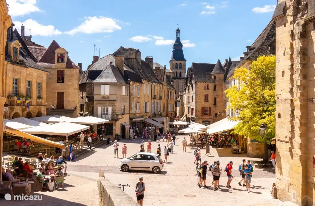 Mitten in den Wäldern des Périgord Noir, weniger als 10 km von der berühmten mittelalterlichen Stadt Sarlat de Canéda entfernt, liegt die Domaine de Carsac, ein kleiner und ruhiger Park mit Schwimmbad und Tennisplatz. Hier finden Sie unser Haus Sur la Cave in der Nähe des Flusses Dordogne.