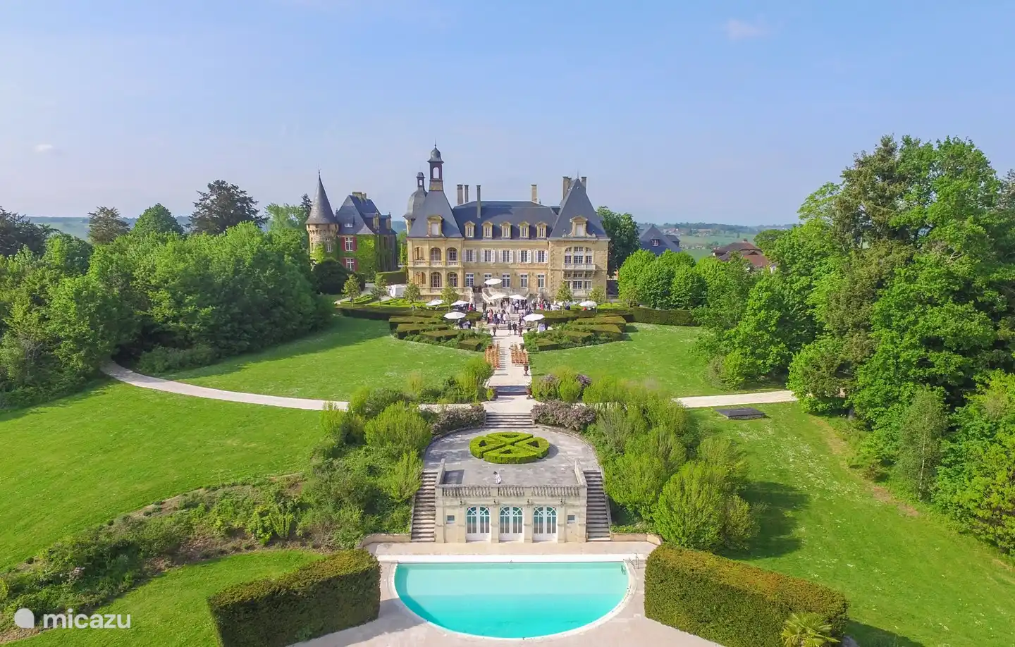 Draußen ein großer Garten mit privatem beheiztem Pool. Le Patelin ist ideal für einen erholsamen Urlaub mit Familie oder Freunden im Périgord.