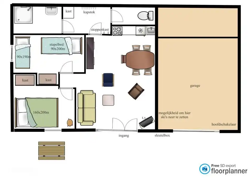 Bed: Etagenbett 200 x 90 cm