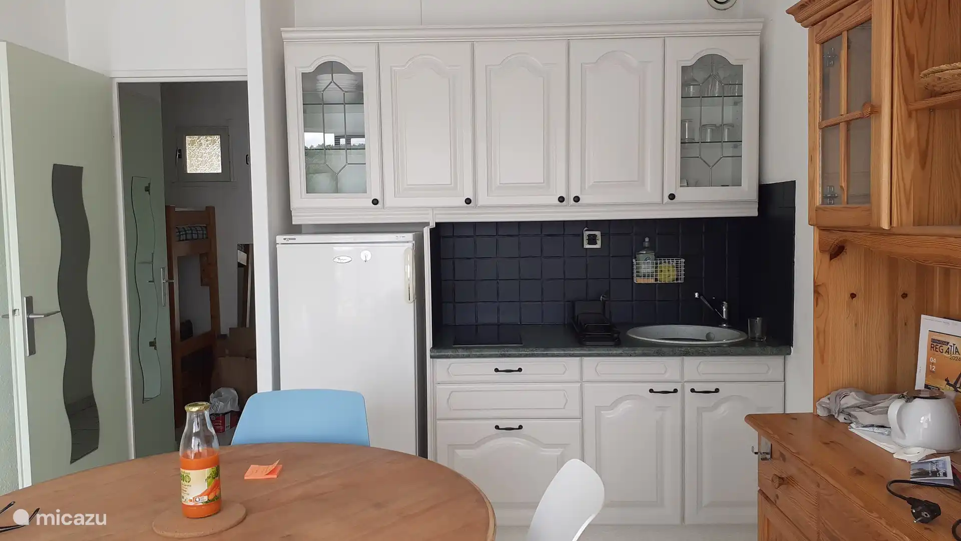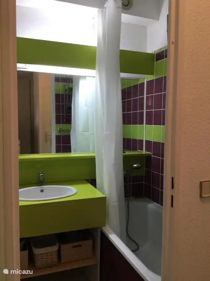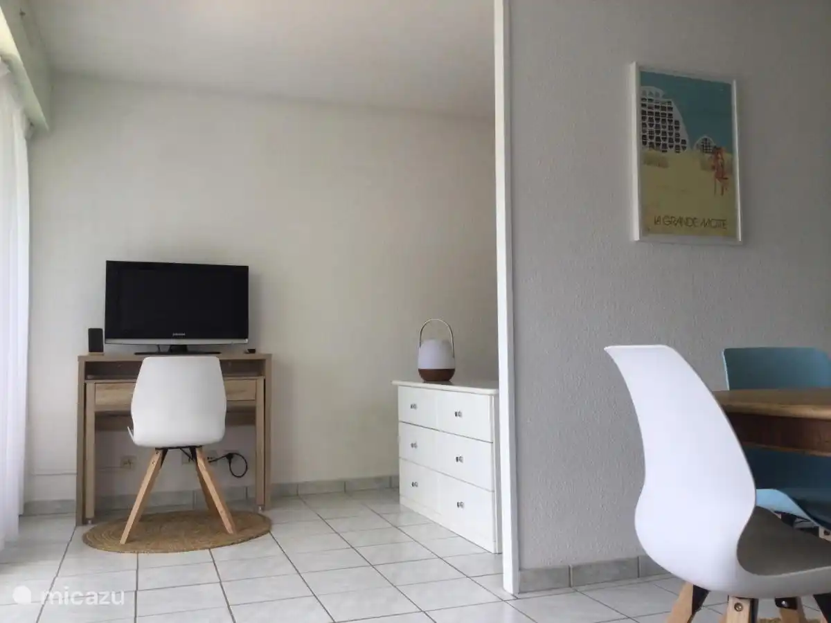 Die Wohnung besteht aus : einem Eingang, einer Kabine mit 2 Etagenbetten, einem Badezimmer mit WC, einem hellen Wohnzimmer mit ausgestatteter Küche, einem TV-Bereich, einem Telearbeitsbereich mit WLAN und einem Schlafzimmer mit einem 140x200 Bett. Ideal für ein Paar oder eine Familie mit 2 bis 3 Kindern.