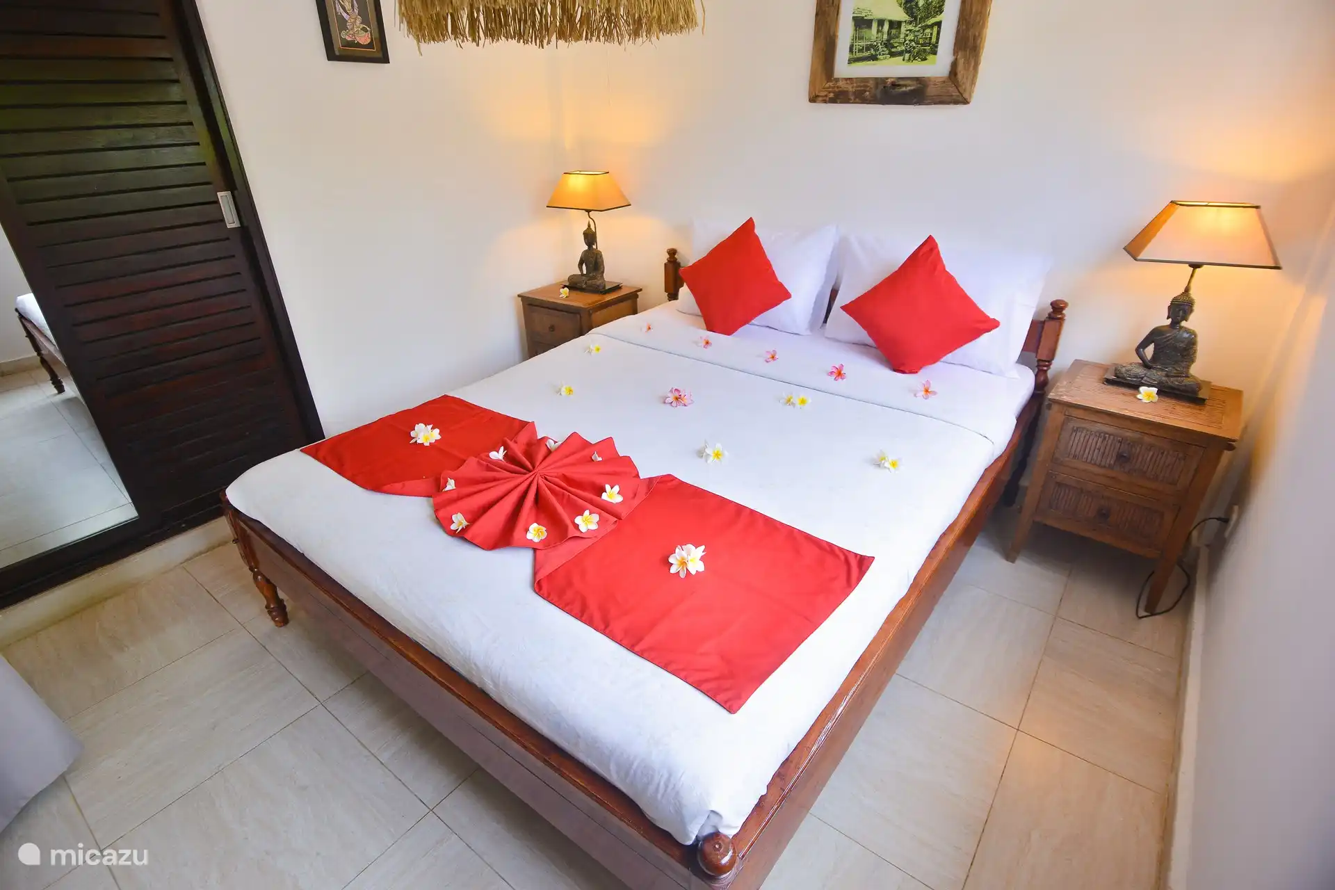 Sie haben dieses Haus aus Ihren Favoriten entfernt. bungalow, Kaliasem, Bali, Indonesien - Rumah Lotus Blick von der überdachten Terrasse (mit einer Decke) auf den Pool und Garten. Es ist wunderbar, in der gepflegten Garten. Schönen Gemeinschaftspool (5x8) ganz privat. Tropical Naturstein-Bad, teilweise im Freien. Die Toilette und Waschbecken teilweise va Dach abgedeckt. Das Wohnzimmer ist geräumig und verfügt über einen großen Esstisch für 8 Personen sowie einen TV-Sitz. Ihnen steht ein Kühlschrank mit Gefrierfach zur Verfügung. Vom Wohnzimmer aus erreichen Sie das mittlere und hintere Schlafzimmer und 1 Badezimmer. Die Küche befindet sich im hinteren Teil des Hauses. Der Essbereich im großen Wohnzimmer. Ein Bild der 2 Badezimmer, die zu den Schlafzimmern gehören Ein Bild der 2 Badezimmer, die zu den Schlafzimmern gehören. Eines der Schlafzimmer mit Klimaanlage und Ventilator. Direkter Zugang zum Bad. Mittleres Schlafzimmer mit Doppelbett und Einzelbett. Klimaanlage und Deckenventilator vorhanden. Hinteres Schlafzimmer mit großem Doppelbett. Klimaanlage und Deckenventilator vorhanden. Blick auf den Pool aus dem Schlafzimmer. Essbereich in der Küche im Freien. Die küche Kadek, der gerne köstliche Mahlzeiten zubereitet. Kadek beim Kochen Kadek, der Koch, jeden Morgen zum Frühstück (im Preis inbegriffen). Beim Starten eines Teller mit frischem Obst oder Smoothie und ein Sandwich, Omelette oder Pfannkuchen. Kadek, Fürsorge für den Koch kann auf Wunsch (gegen Gebühr) Abendessen oder einen Kochkurs. Border im Garten Ganesha, der Gott mit dem Elefantenkopf, schmückt den Garten. Bunte tropische Pflanzen Die Anlage, zu der das Haus seinen Namen Dolphin Sichtungen bei Sonnenaufgang. Wir wünschen Ihnen einen angenehmen Aufenthalt Sunset in Lovina. Rumah Lotus 8,7 Indonesien Bali Lovina 2-8 Personen 3 Schlafzimmer 34 Bewertungen Nachtpreis ab Pro Woche (7 Nächte): € 510,- Nachtpreis ab € 73,-