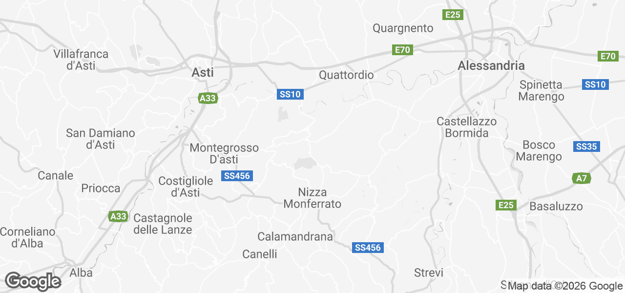 Ein größeres Dorf mit allen täglichen Annehmlichkeiten ist fünf Autominuten entfernt. Asti, eine historische Stadt, ist etwa fünfzehn Minuten entfernt. Orte wie Nizza Monferrato und Alba sind ebenfalls leicht erreichbar. Turin ist etwa 45–60 Minuten mit dem Auto oder etwa eine halbe Stunde mit dem Zug von Asti entfernt, wo man direkt im Zentrum aussteigt. Außerdem werden regelmäßig Antiquitätenmärkte in der Region organisiert, die sich über die gesamte Region erstrecken.