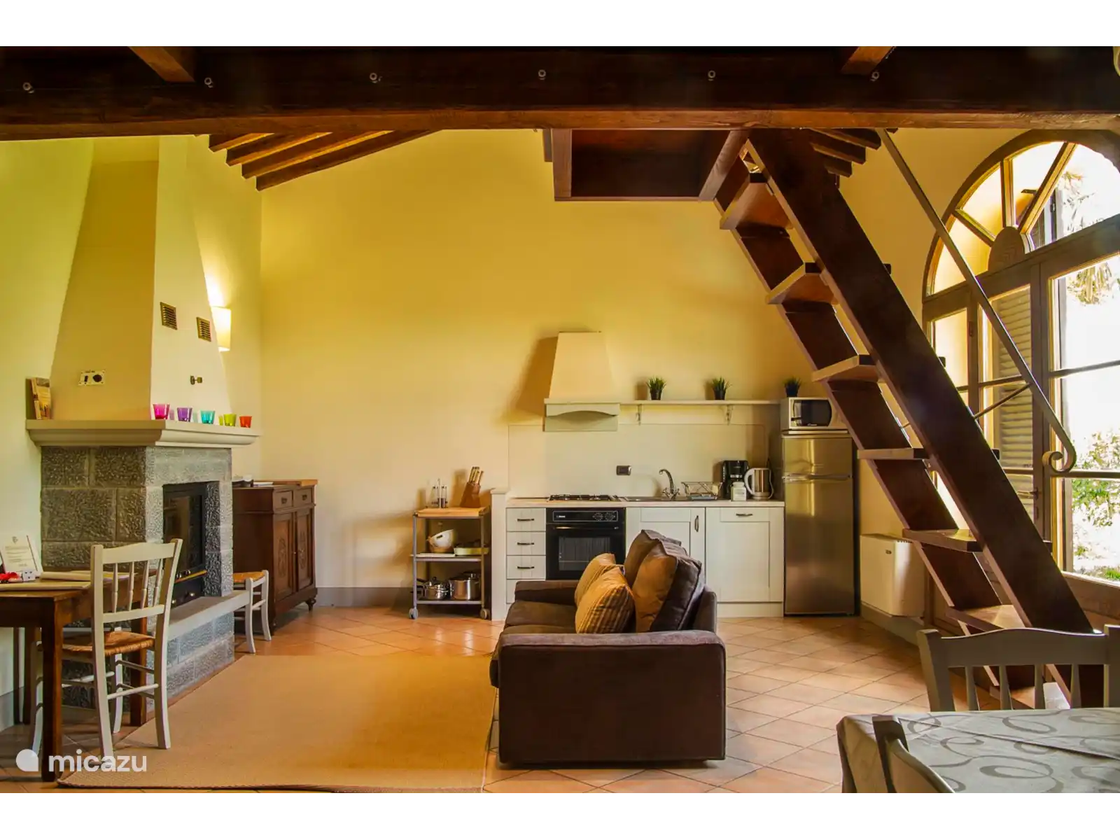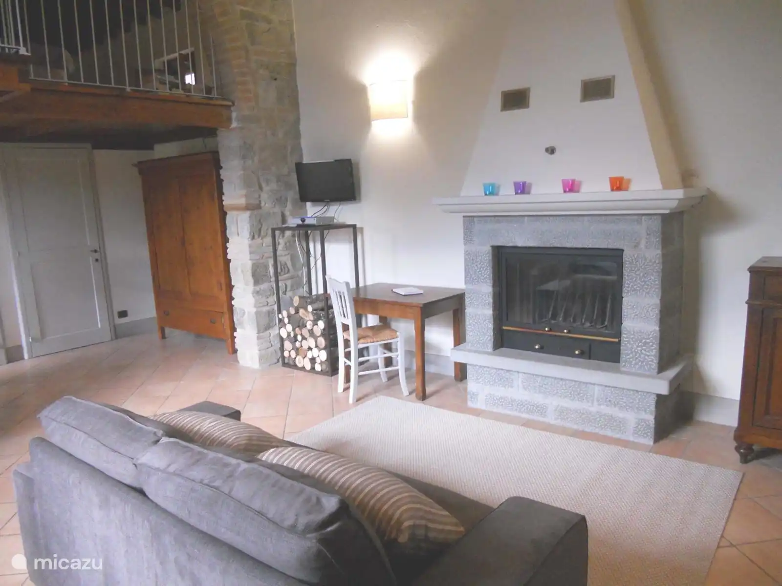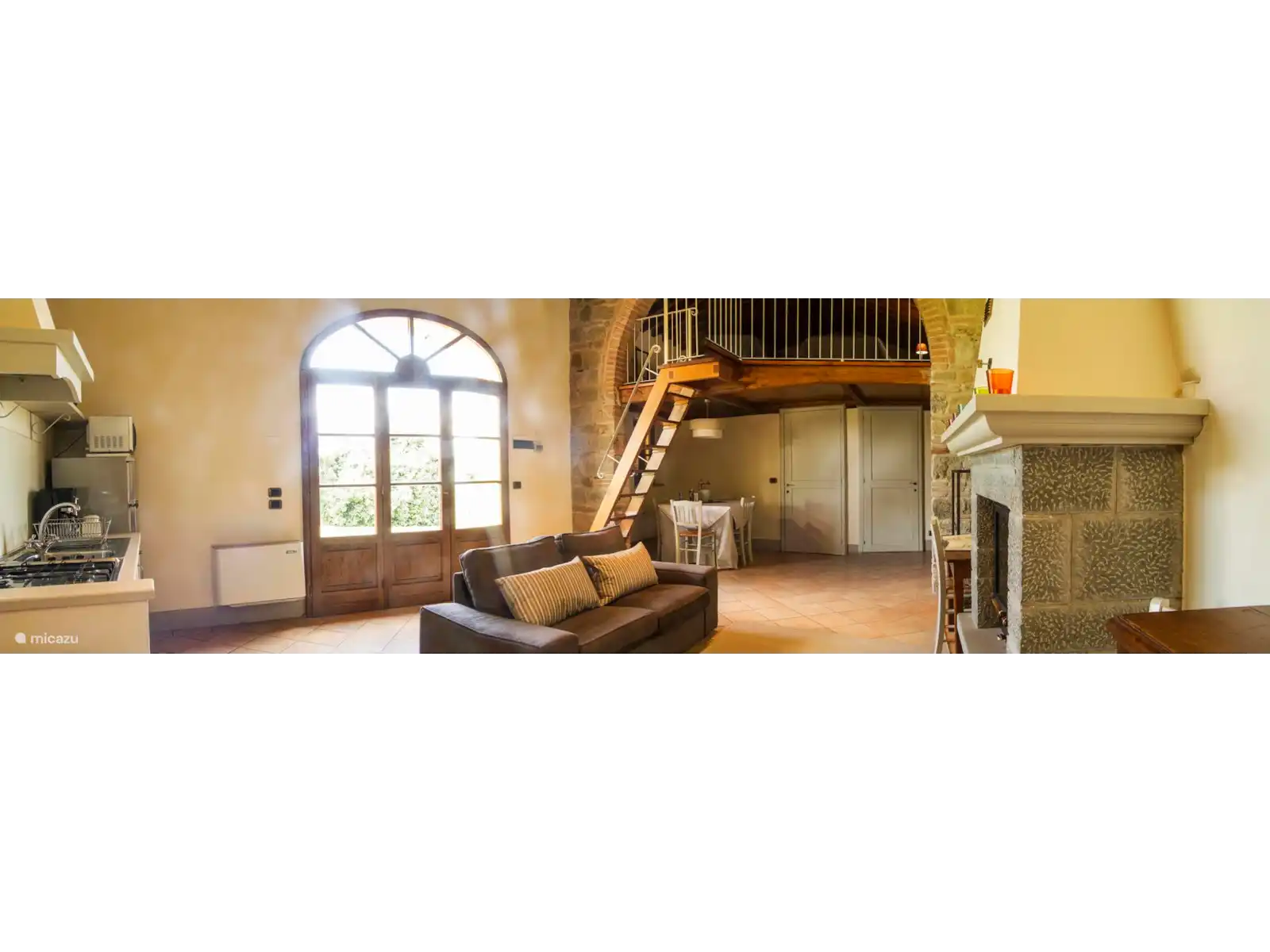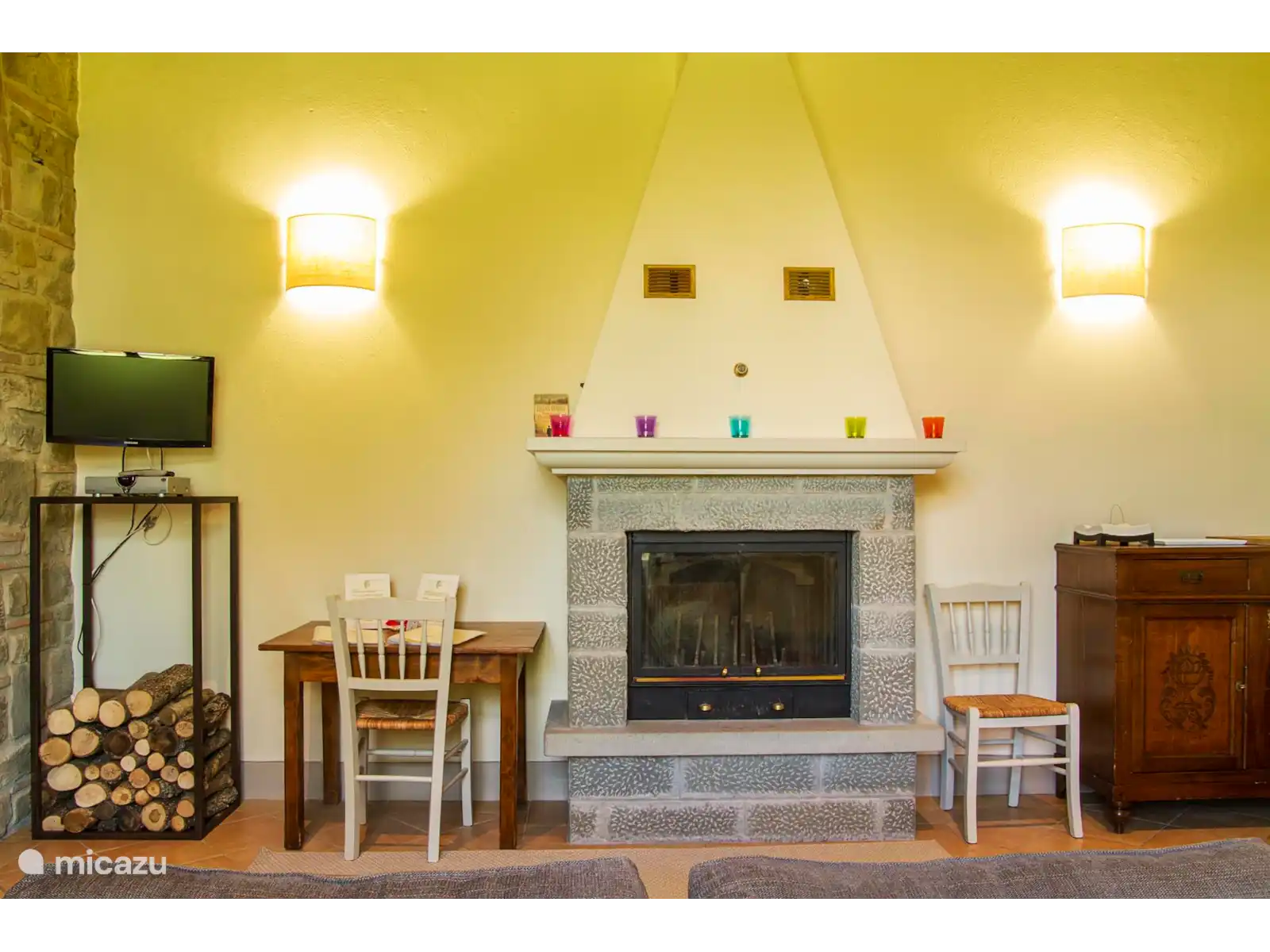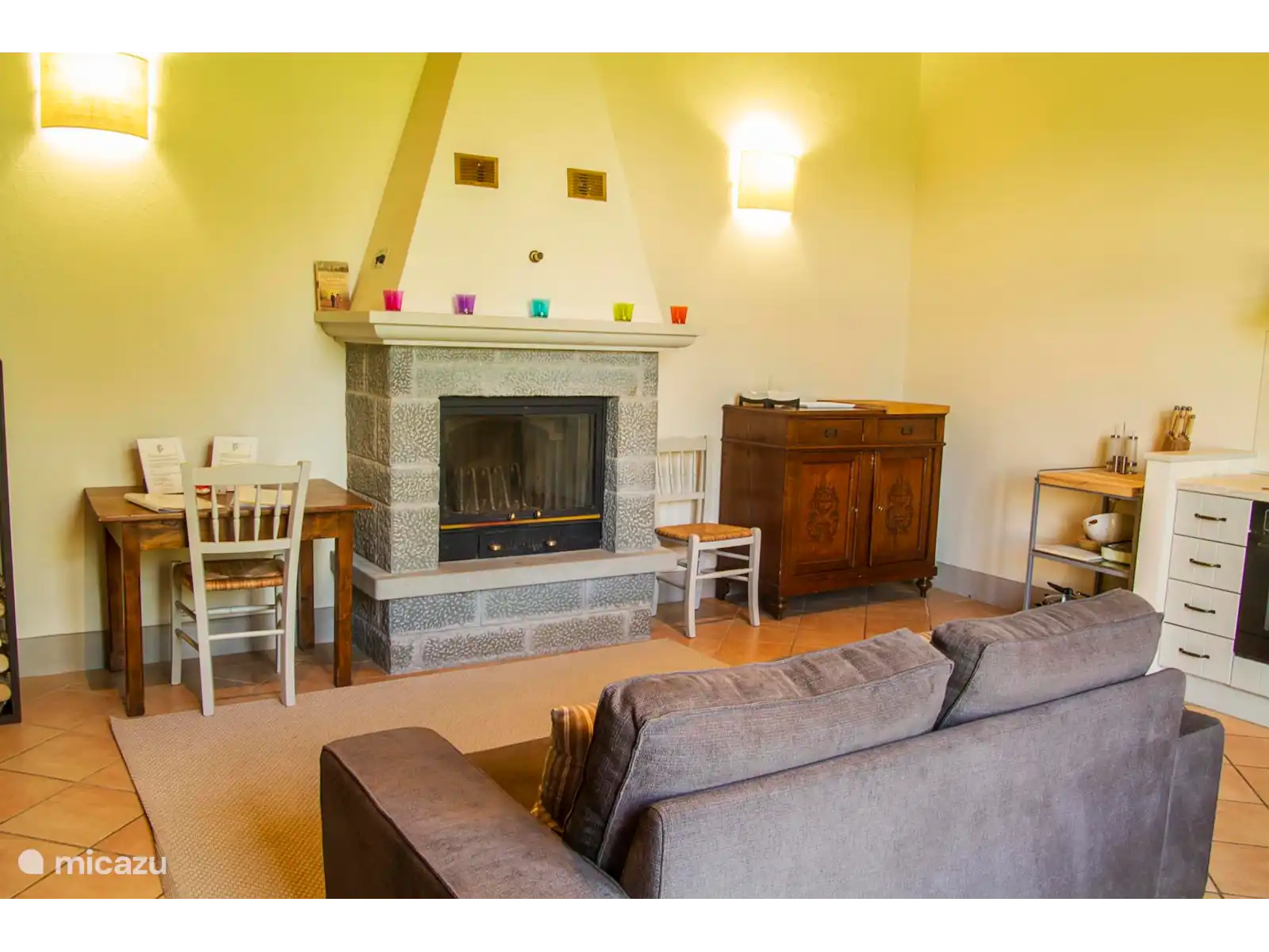 Die Orangerie degli Ulivi besteht aus einem Wohnbereich mit Sofa, Satellitenfernseher und Kamin sowie einer voll ausgestatteten Kochnische und einem Esstisch.