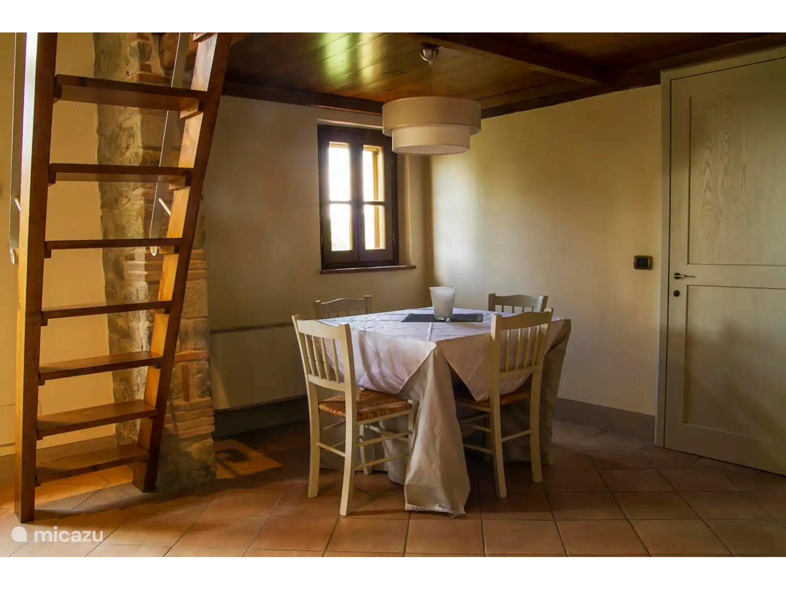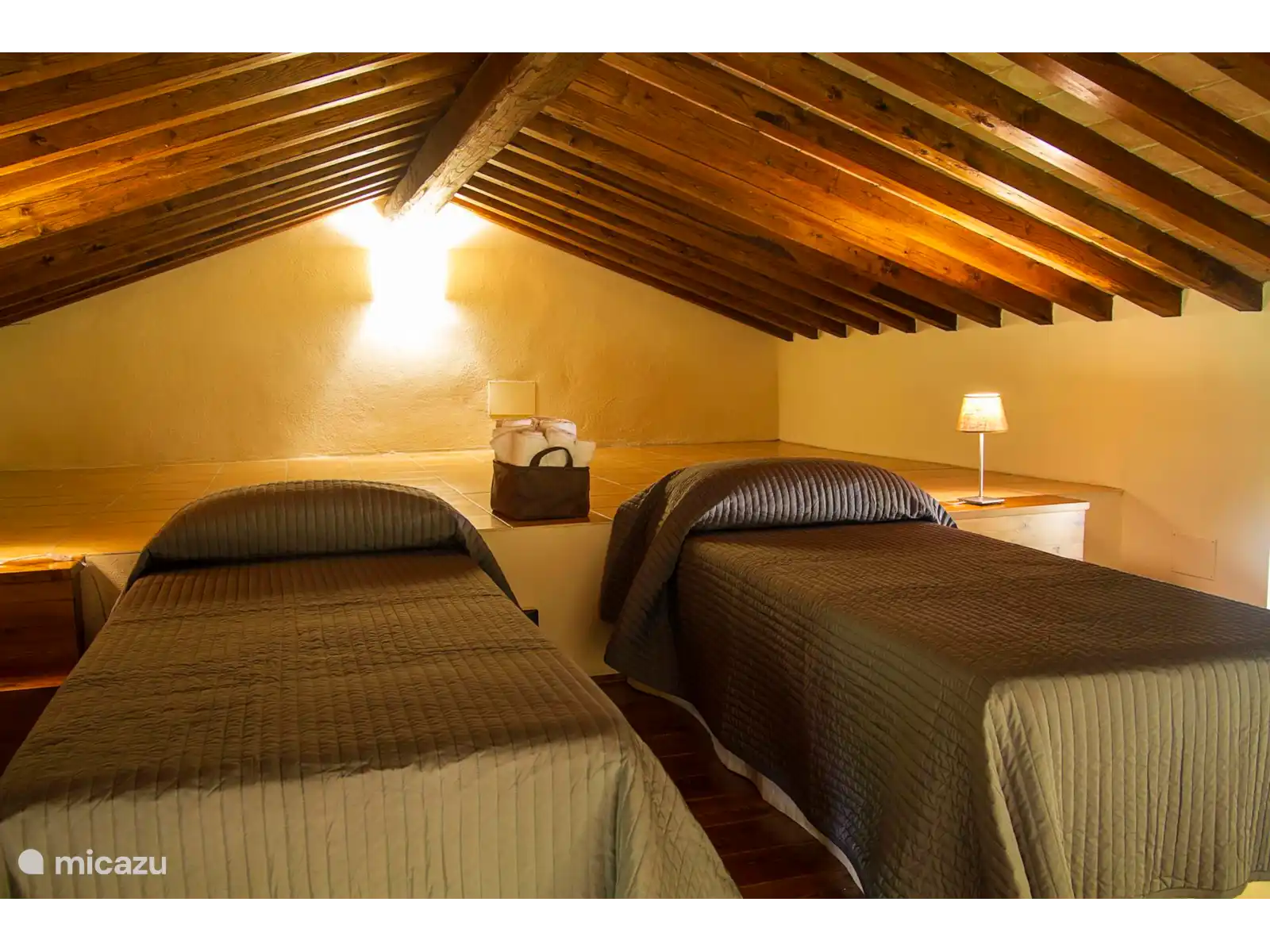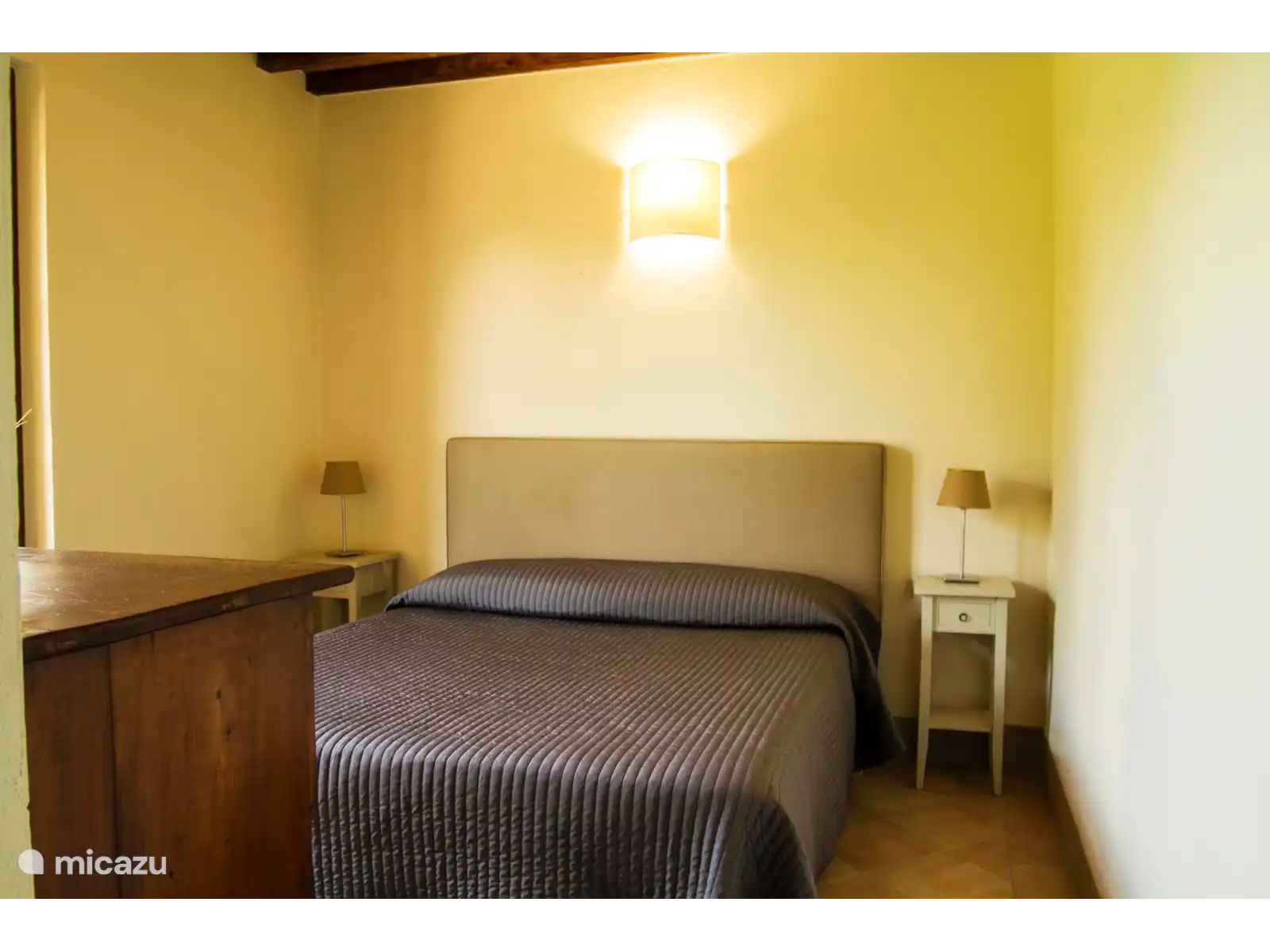 Der Schlafbereich besteht stattdessen aus zwei Zimmern, einem Doppelzimmer und einem Einzelzimmer (im Dachboden) mit zwei Einzelbetten. Das Erdgeschoss wird durch ein Badezimmer mit Dusche ergänzt.