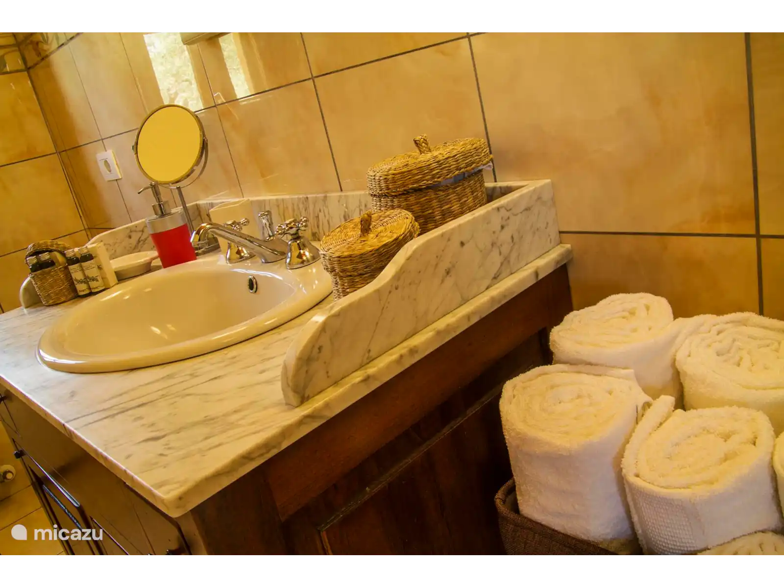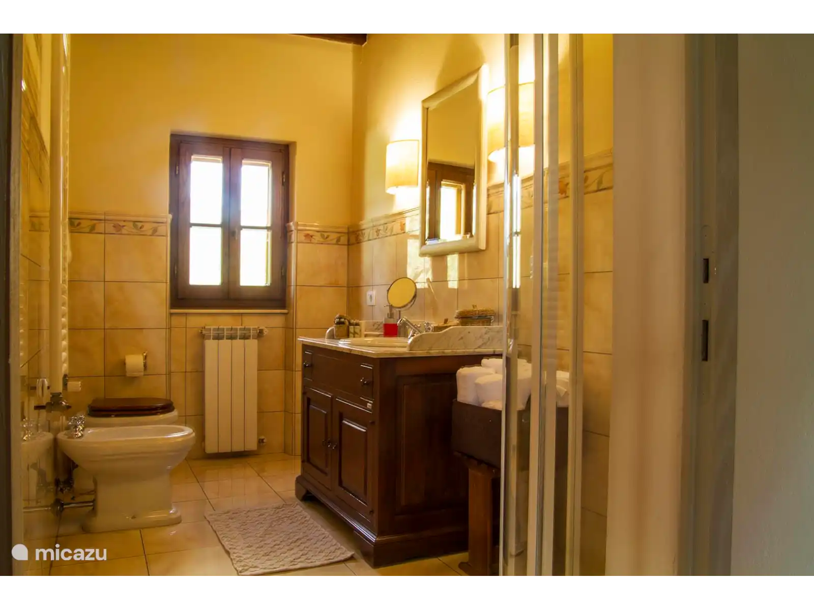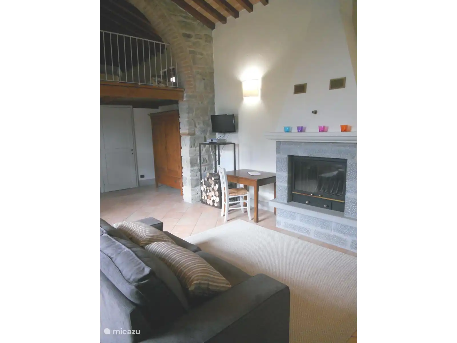 Der Schlafbereich besteht stattdessen aus zwei Zimmern, einem Doppelzimmer und einem Einzelzimmer (im Dachboden) mit zwei Einzelbetten. Das Erdgeschoss wird durch ein Badezimmer mit Dusche ergänzt.