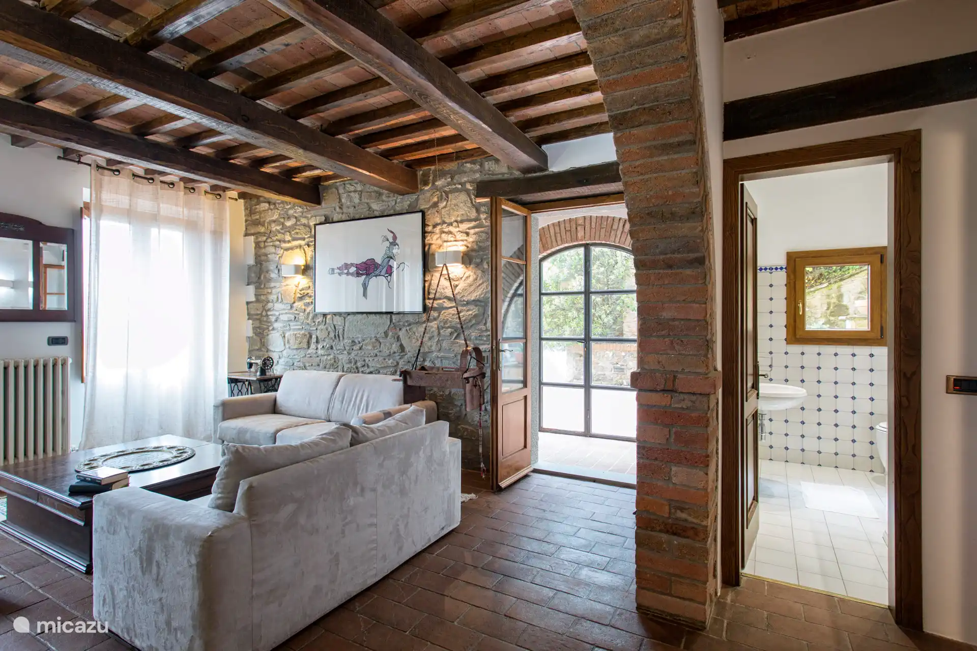 Grundstück 13 km von Cortona entfernt, vollständig eingezäunt, mit privatem Garten und Parkplätzen, einem Außenpool mit Liegestühlen, Sonnenschirmen und Dusche. Wöchentliche Wäschewechsel, Klimaanlage und Moskitonetze, kostenloses WLAN, Smart-TV, Waschmaschine und Trockner, Kamin, Esstisch, voll ausgestattete Küche und komplett aus: Ofen, Herd, Toaster, Wasserkocher, amerikanische Kaffeemaschine, Espressomaschine, Moka, Mikrowelle, Geschirrspüler, Kühlschrank und Gefriertruhe.