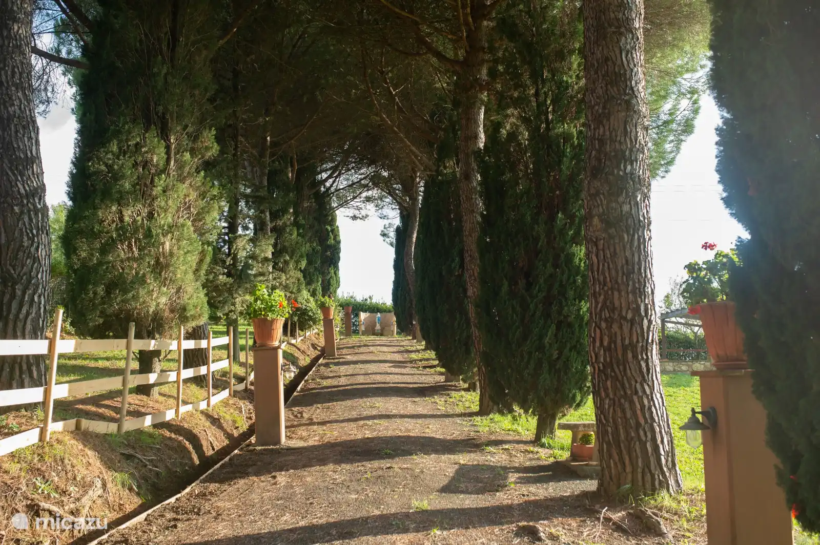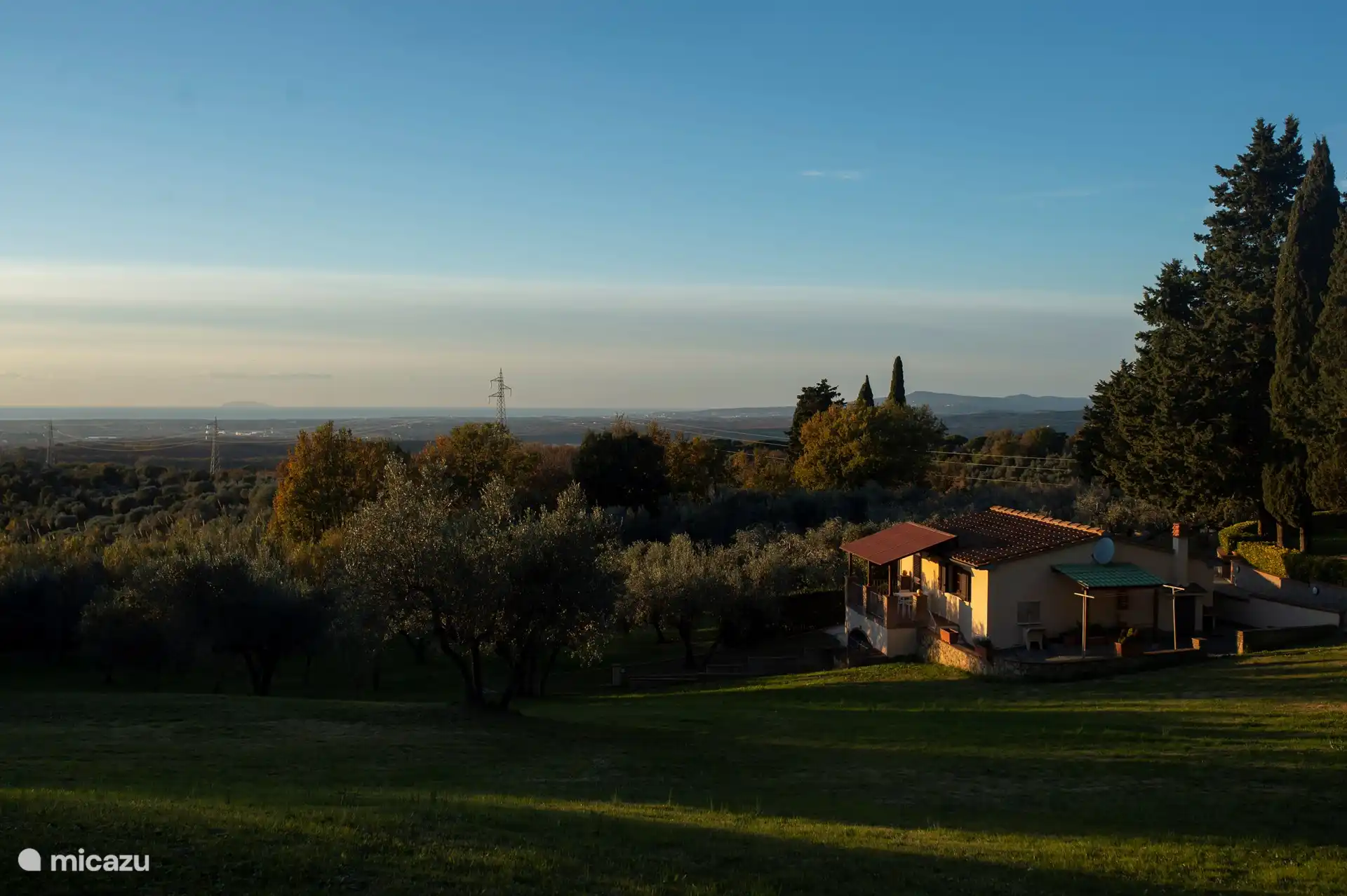 Innerhalb des Parks gibt es eine atemberaubende 60 Quadratmeter große Sonnenterrasse, die mit Sonnenschirmen, Liegestühlen und einer Dusche ausgestattet ist. Es ist der perfekte Ort, um sich zu entspannen und die einzigartige Hügellandschaft zu genießen. Von hier aus schweift der Blick über die Landschaft zu den wunderschönen Inseln Elba, Capraia, Gorgona und sogar Korsika, die ein unvergessliches Naturschauspiel bieten.
