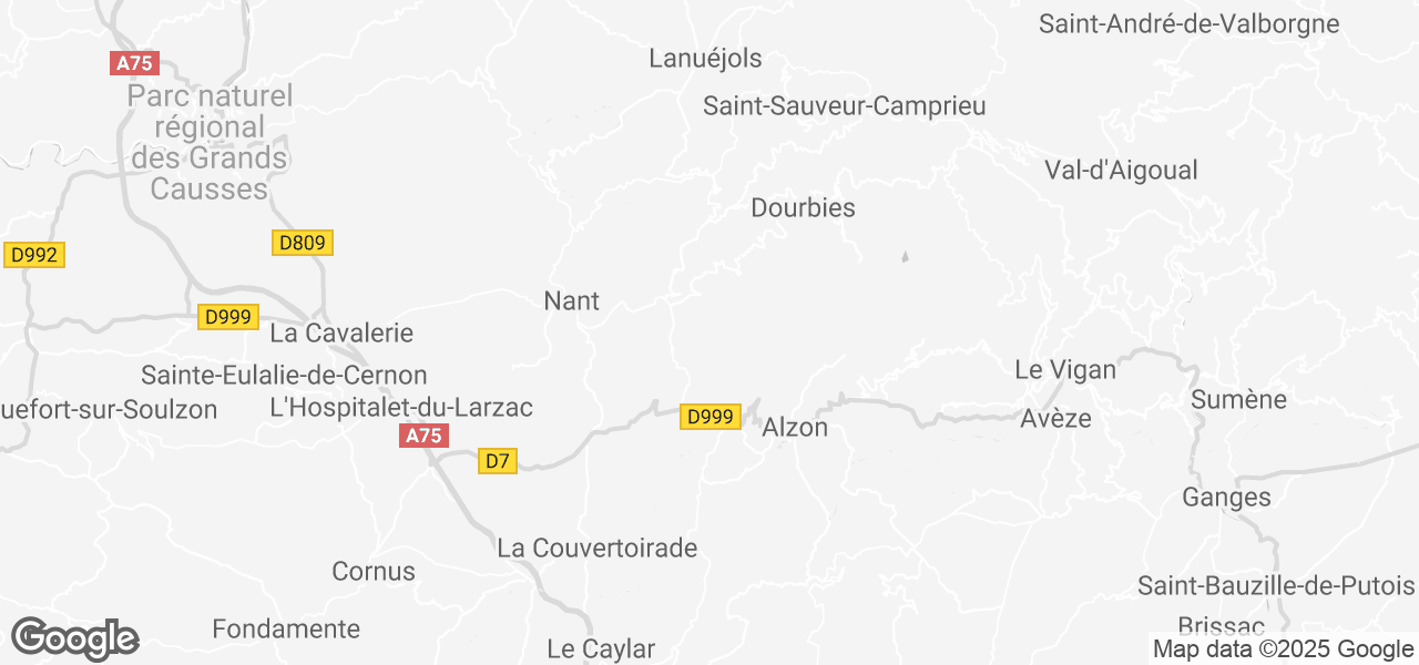 Von Saint-Jean-du-Bruel an den Gorges de la Dourbie sind es drei Kilometer bis nach Le Pradalaux. Am Ende der Straße am Südhang eines kleinen Tals befindet sich das geräumige Haus, das ursprünglich Ende des neunzehnten Jahrhunderts als Bauernhof erbaut wurde und im Laufe der Zeit zu einem geräumigen Haus erweitert und modernisiert wurde. Das Gebiet liegt an der Kreuzung mehrerer emblematischer Landschaften: der Cevennen, der Schluchten und der Ursachen.