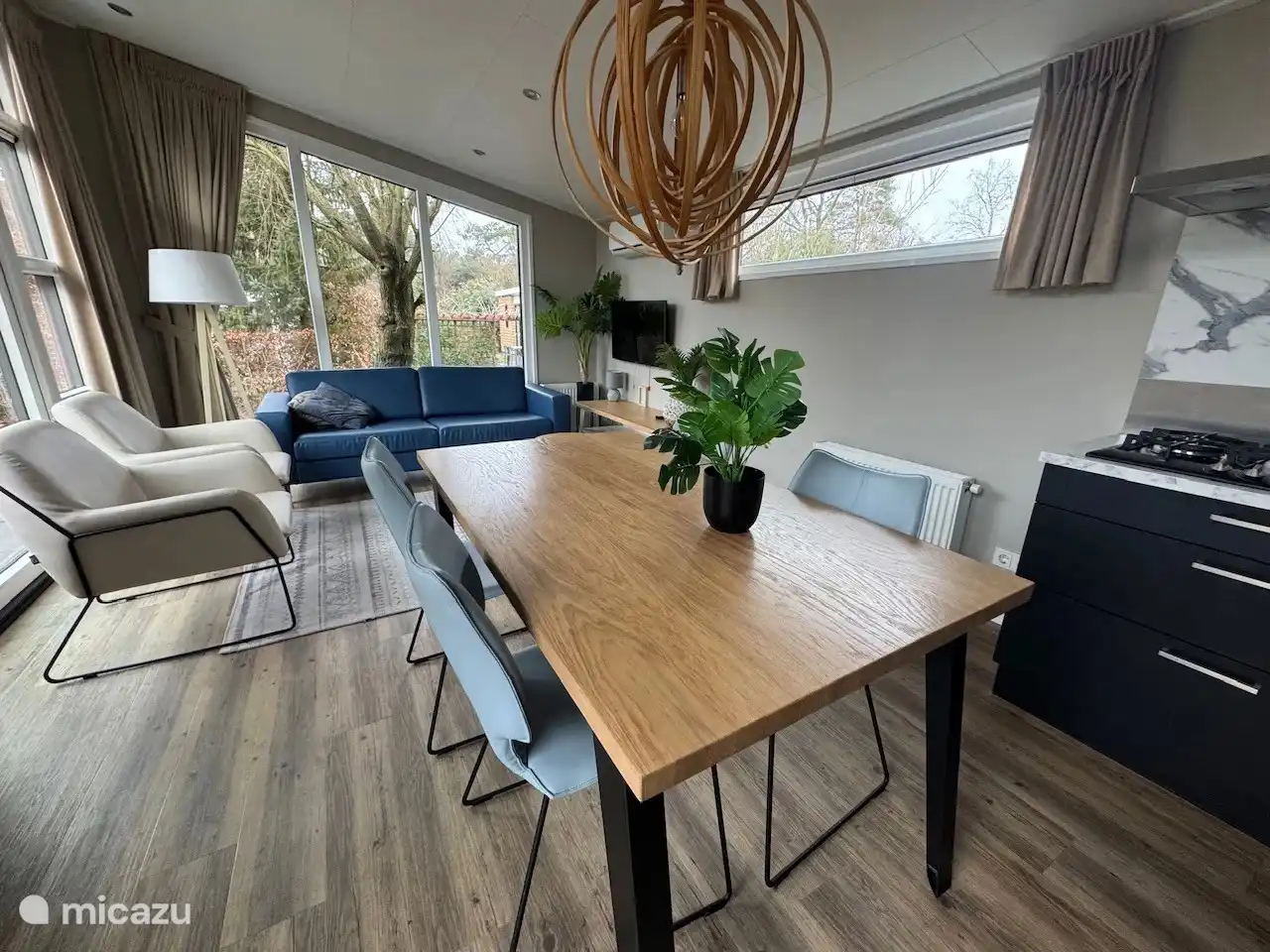 Das Haus in Velthorst selbst wird bis ins kleinste Detail gepflegt und mit einem geschmackvollen Möbelpaket ausgestattet. Denken Sie an einen gemütlichen Sitzbereich, einen einladenden Esstisch und eine voll ausgestattete Küche mit allem, was Sie brauchen – Sie müssen nur Ihren Koffer mitnehmen. Die warmen Farben, die elegante Anordnung von 55 m² und die großen Fenster schaffen eine wunderbare Atmosphäre, in der innen und außen nahtlos ineinander verschmolzen.