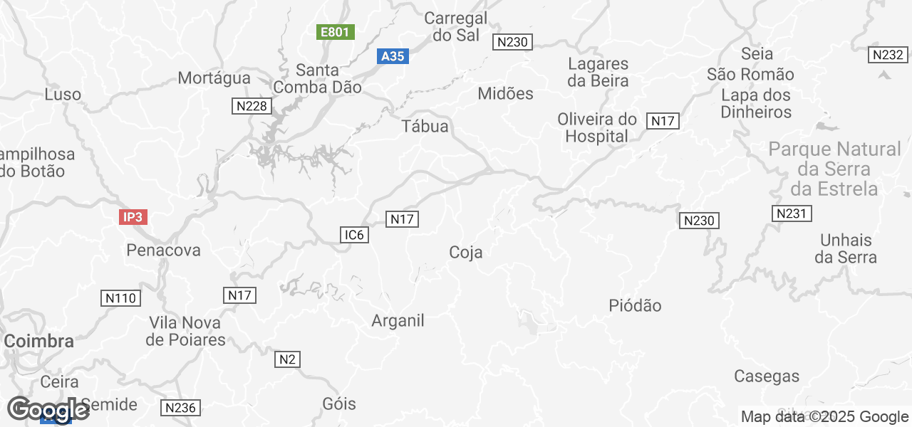 Tábua ist ca. 10km entfernt. Dabei handelt es sich um eine zentrale Gemeinde, in der die wichtigsten Einrichtungen wie Restaurants, Geschäfte, Supermärkte, Post, Banken, Arztpraxis, Schulen, Berufsausbildung, Schwimmbad, Bibliothek und ein Wochenmarkt zur Verfügung stehen. Eine größere Stadt wie Coimbra ist ca. 65km entfernt. Die Gegend zeichnet sich durch die vielen Flussstrände mit sehr klarem Wasser und mehreren Gebirgszügen aus. Der Torre (wo Sie im Winter Ski fahren können) ist 60 KM entfernt.