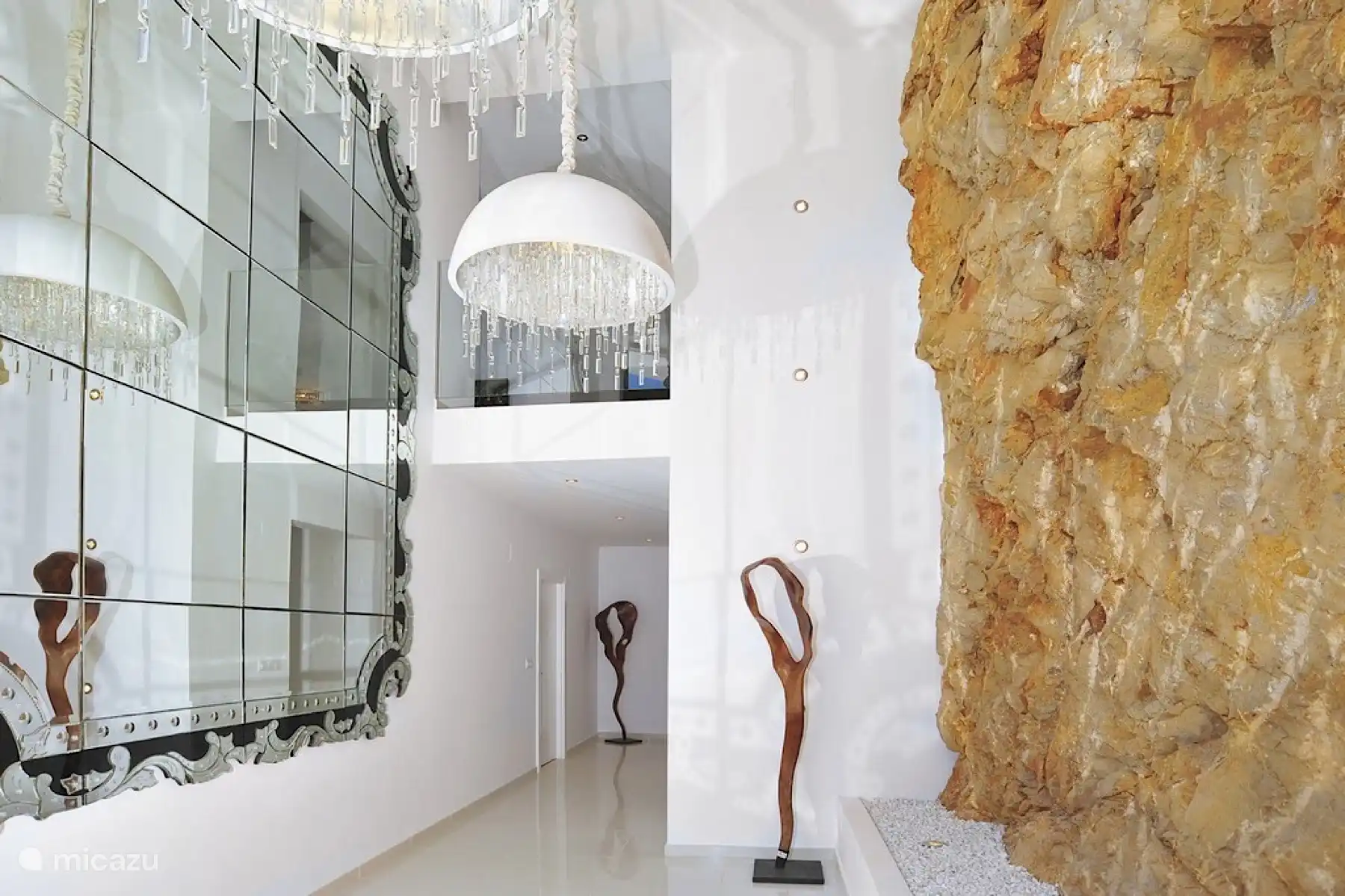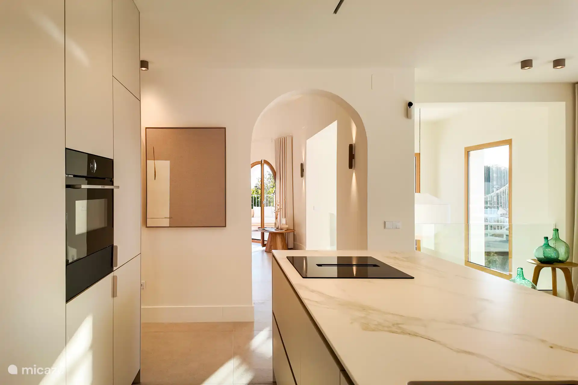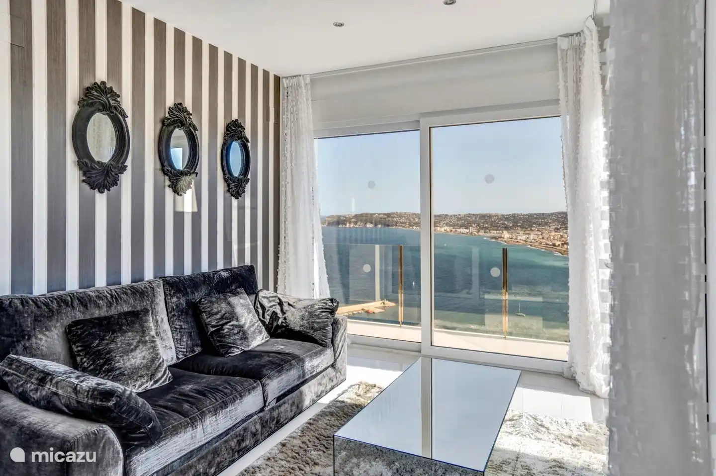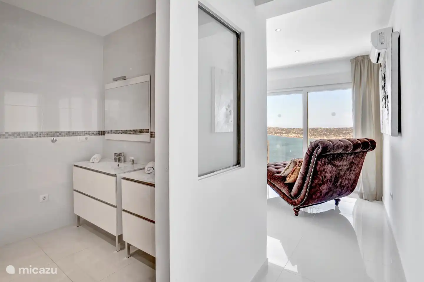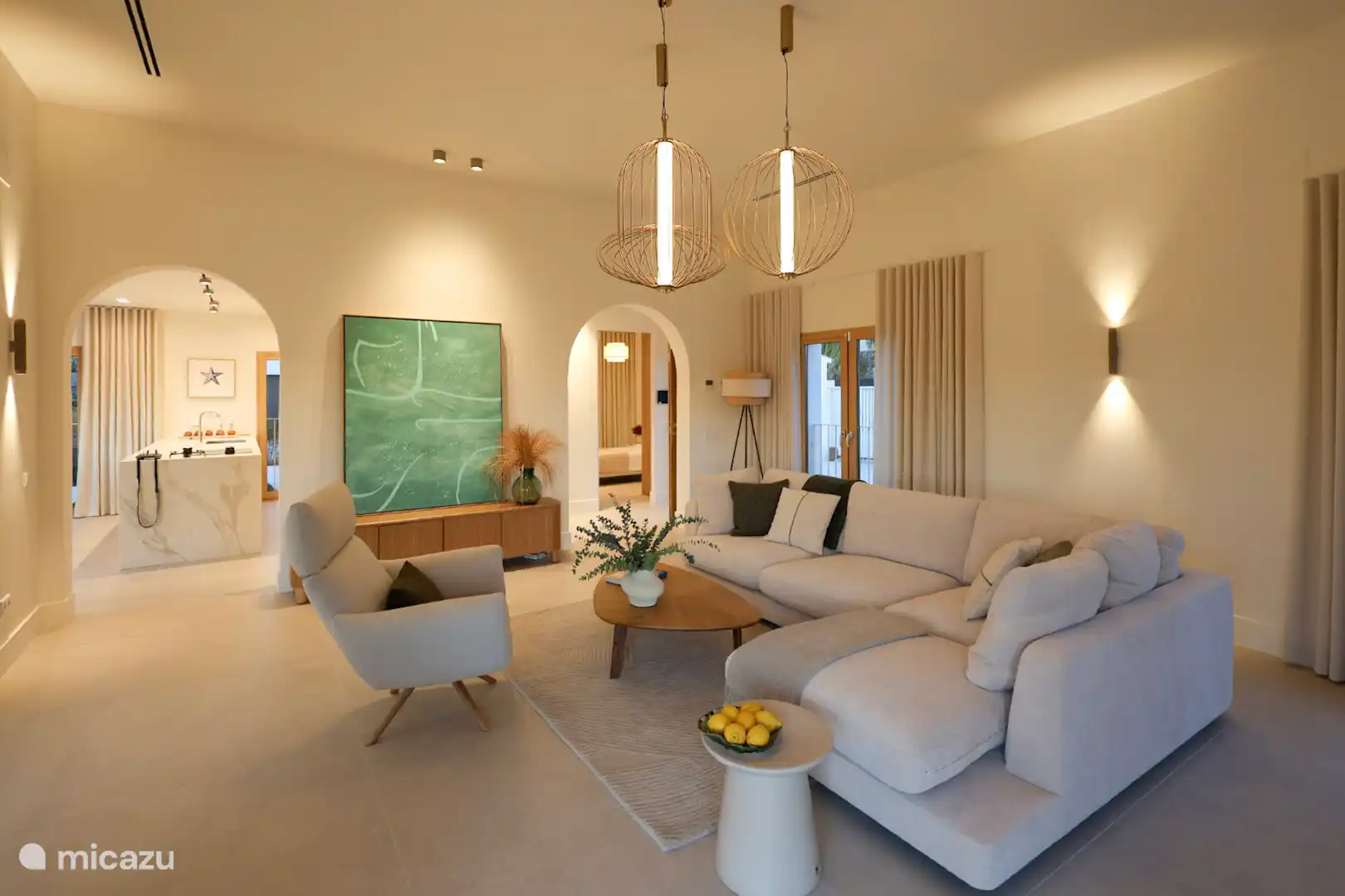 • Stilvolles Interieur: Von der großzügigen Eingangshalle gelangt man in ein elegantes Wohnzimmer mit Charakter, das sich auf eine großzügige Terrasse öffnet – ideal, um Gäste zu unterhalten oder sich mit Meerblick zu entspannen.