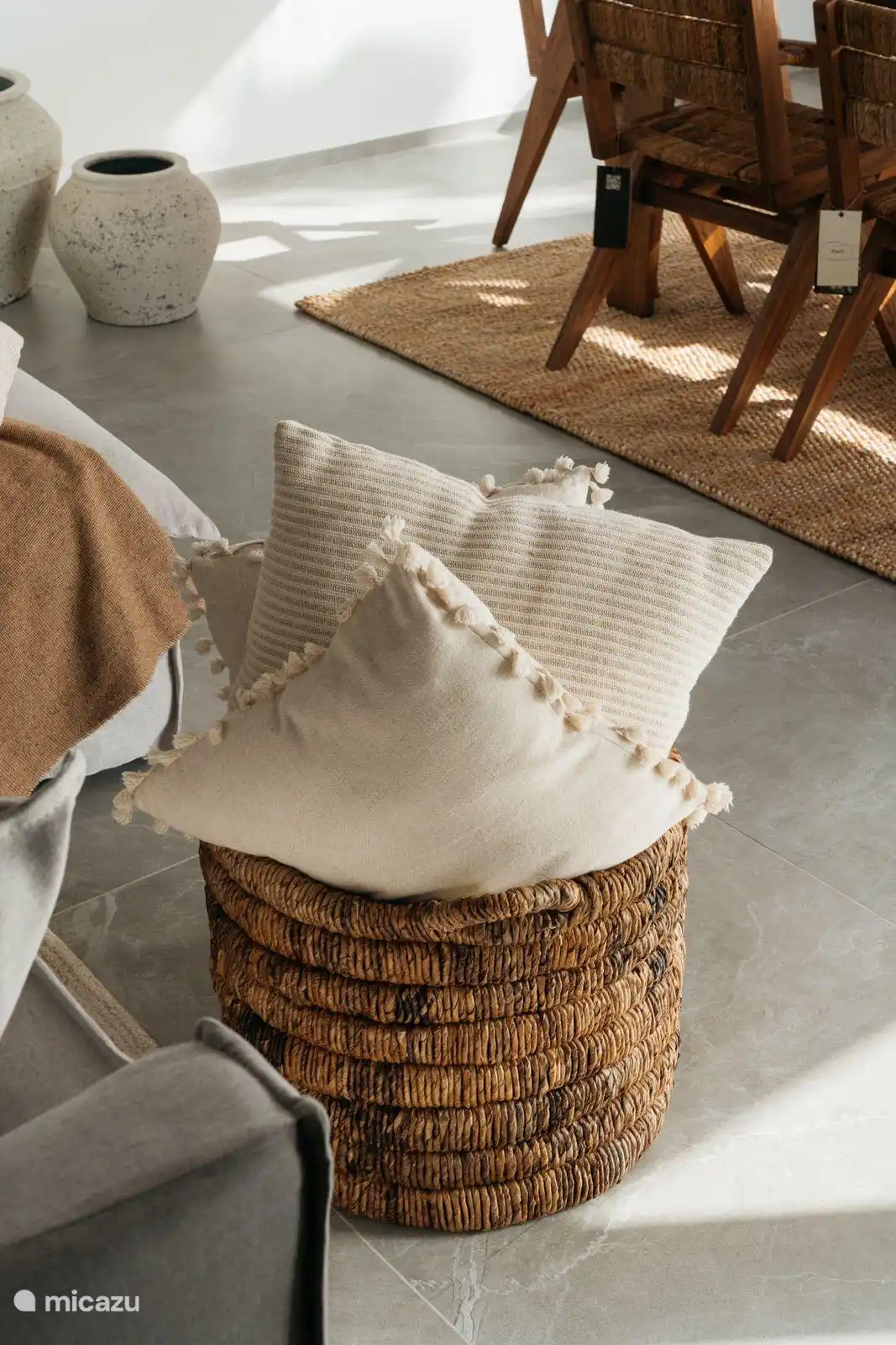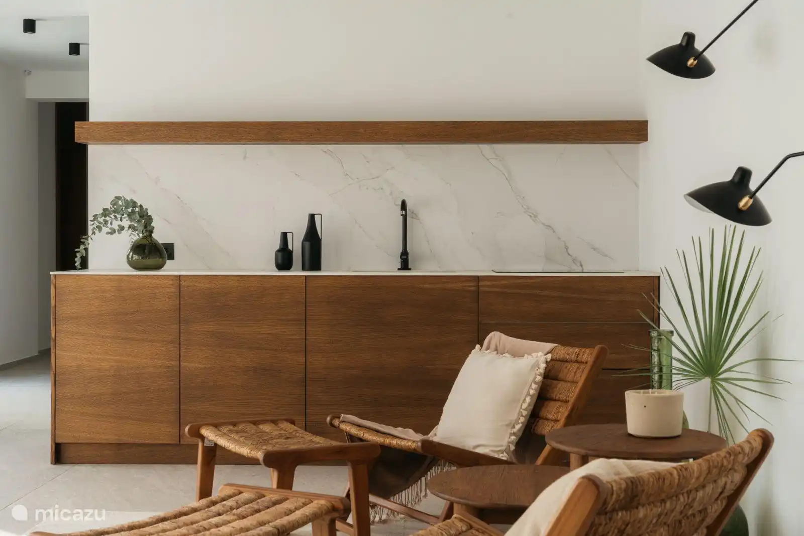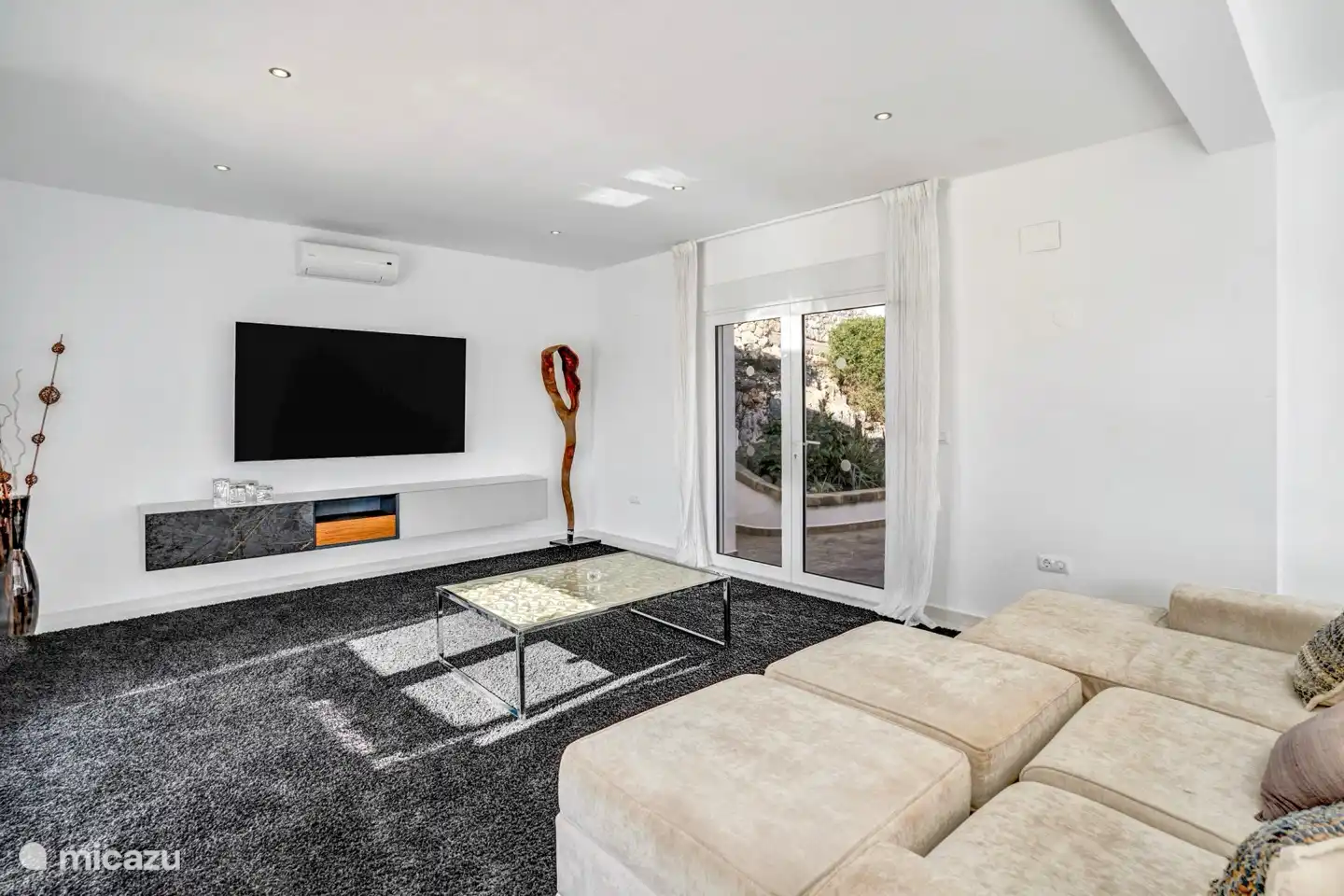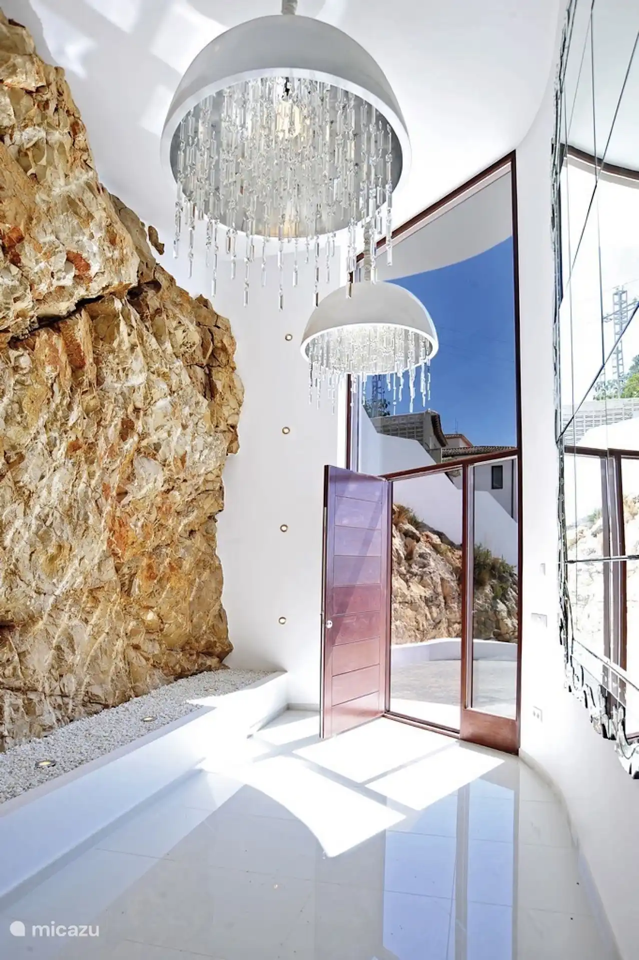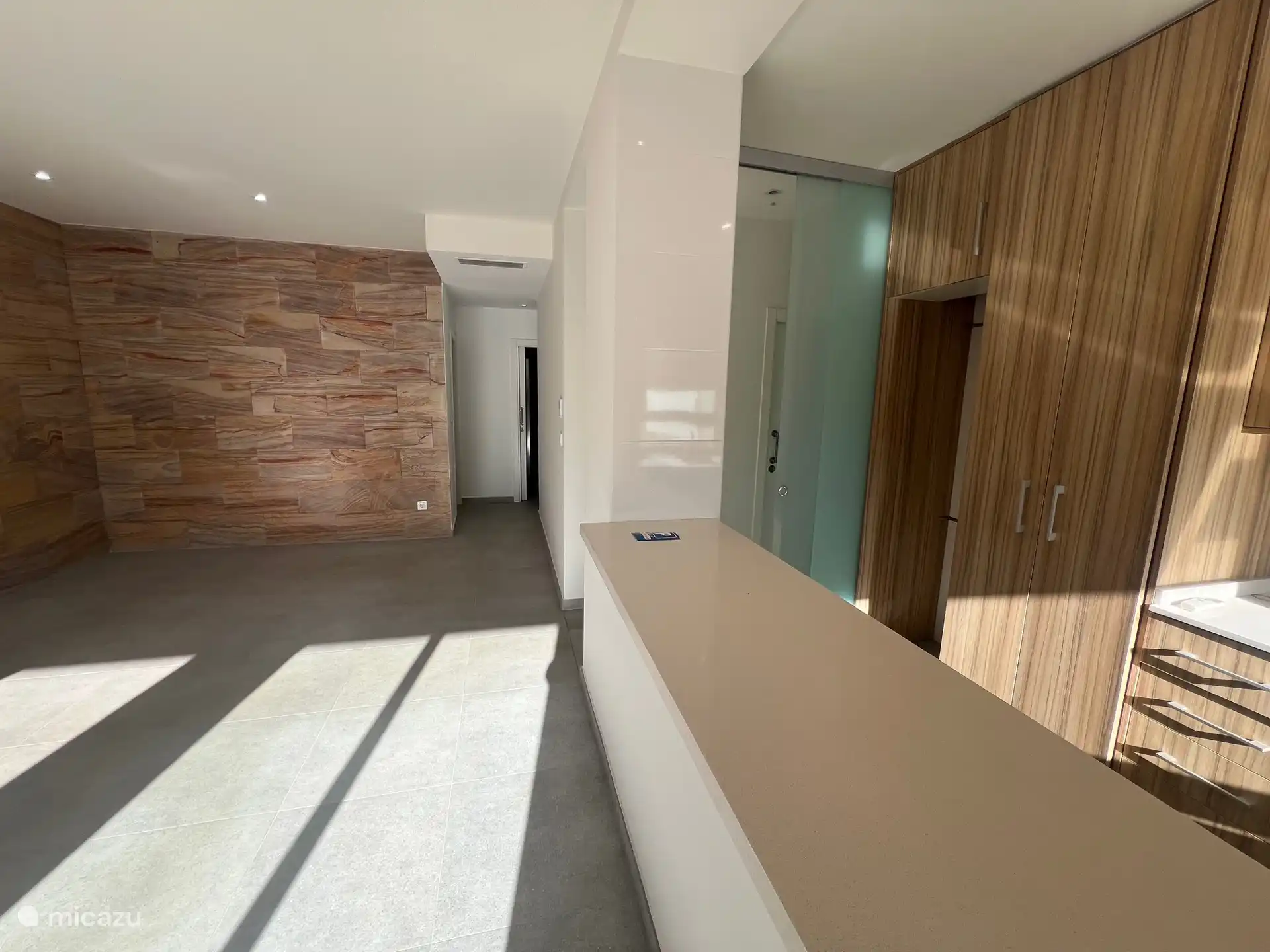 • Stilvolles Interieur: Von der großzügigen Eingangshalle gelangt man in ein elegantes Wohnzimmer mit Charakter, das sich auf eine großzügige Terrasse öffnet – ideal, um Gäste zu unterhalten oder sich mit Meerblick zu entspannen.