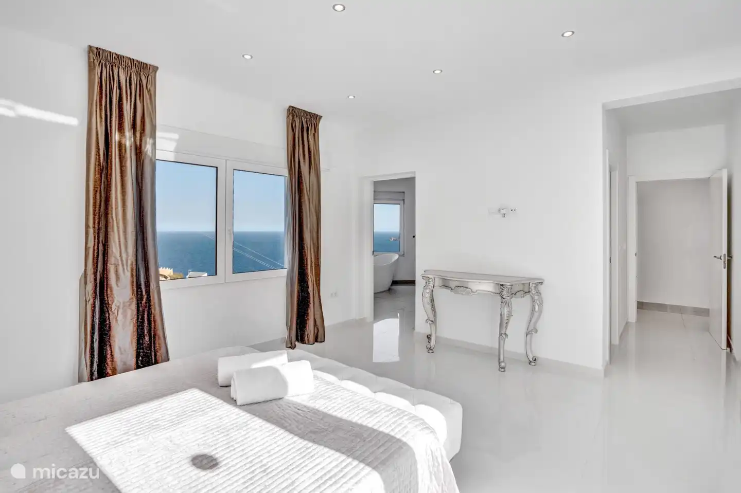 • Erster Stock: Vier geräumige Schlafzimmer mit Bad, alle mit direktem Zugang zu privaten Terrassen mit herrlichem Meerblick.