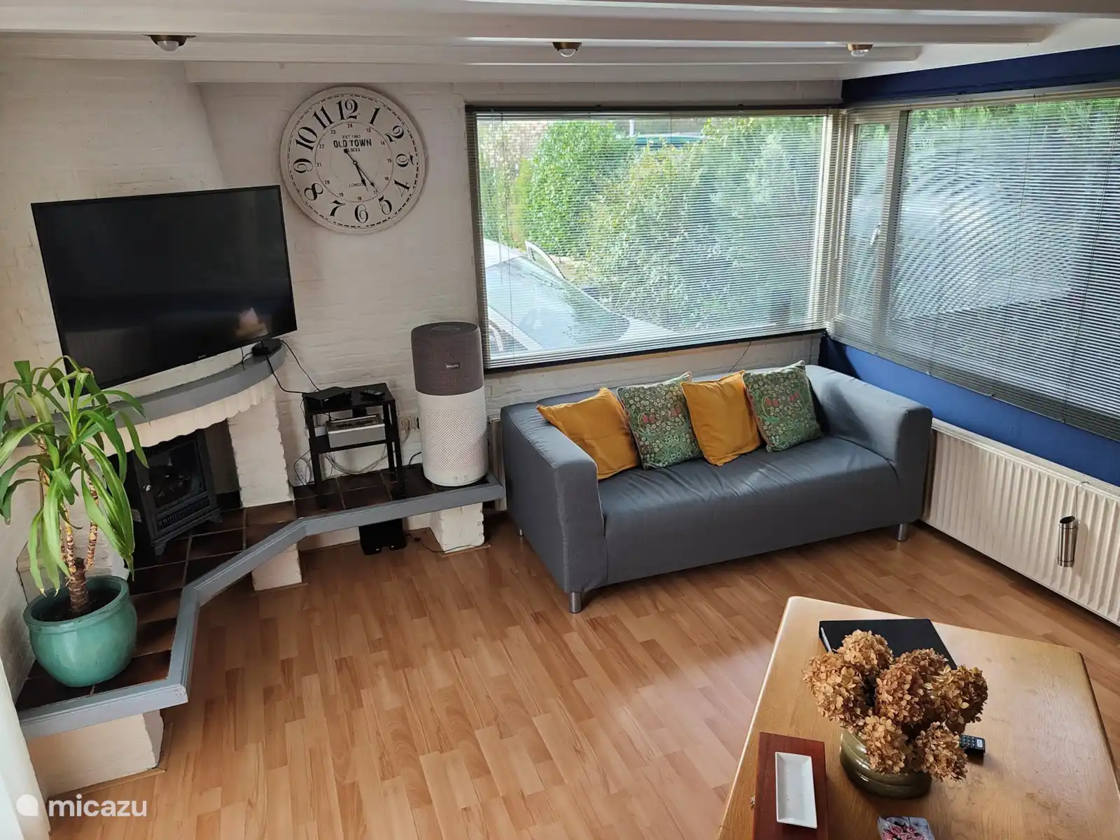 55-Zoll-HD-Fernseher mit Digitenne. Es gibt 2 Schlafzimmer mit je 2 Boxspringbetten.