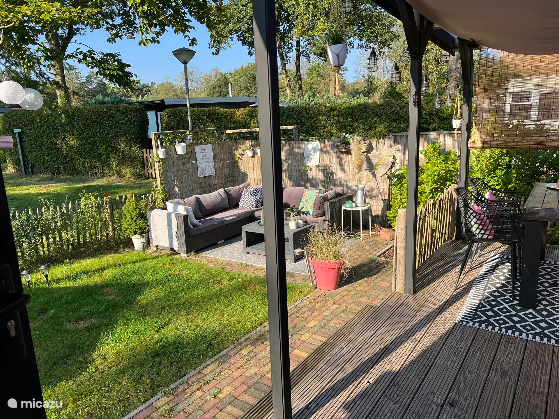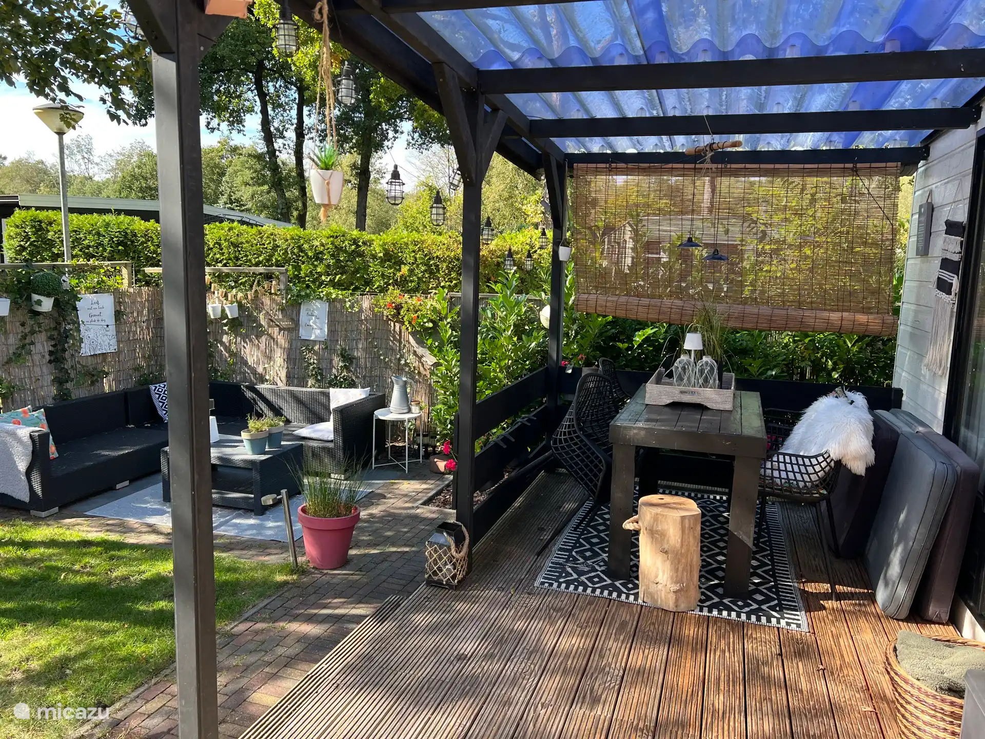 Schönes Lounge-Set, in dem Sie die Sonne ausgiebig genießen können. Aber wenn das Wetter nicht so gut ist, kann man unter der Veranda sitzen.