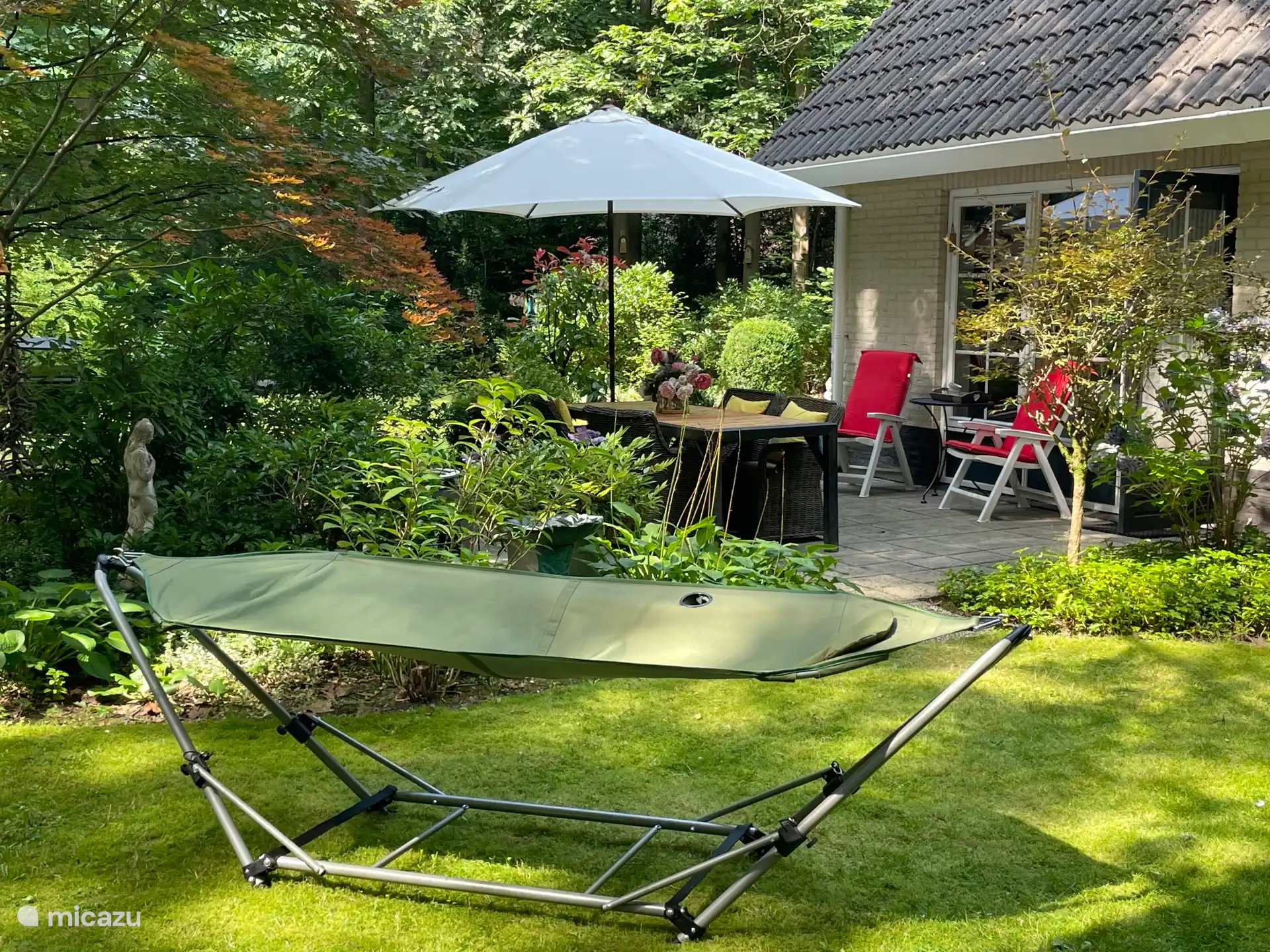 Sie haben dieses Haus aus Ihren Favoriten entfernt. ferienhaus, Vaassen, Gelderland, Niederlande - Bei uns in der Veluwe Der private Garten mit Gartenmöbeln Die Sitzecke vor dem Ferienhaus Wohnzimmer Essbereich & Bar Essbereich & Küche Sitzecke Informationen über die Umgebung Treppe Stab Küche Küche Hinteres Schlafzimmer Hinteres Schlafzimmer Vorderer Schlafplatz (Dachboden) Waschbecken Waschbecken Dusche Bei uns in der Veluwe Niederlande Gelderland Vaassen 1-4 Personen 2 Schlafzimmer Nachtpreis ab Pro Woche (7 Nächte): € 850,- Nachtpreis ab € 121,-