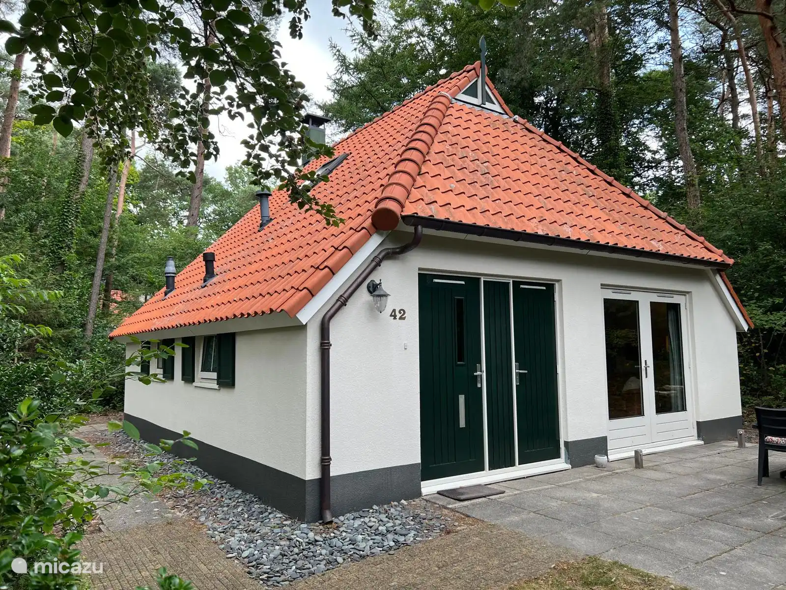 Das Cottage ist für vier Personen geeignet und verfügt über ein gemütliches Wohnzimmer mit grünem Ausblick, eine offene Küche mit Essbereich, zwei Schlafzimmer (1x Doppelbett, 1x Doppelbett) und ein ordentliches Badezimmer mit Dusche und Toilette. Draußen wartet eine sonnige Terrasse mit Gartenmöbeln und Platz zum Spielen.