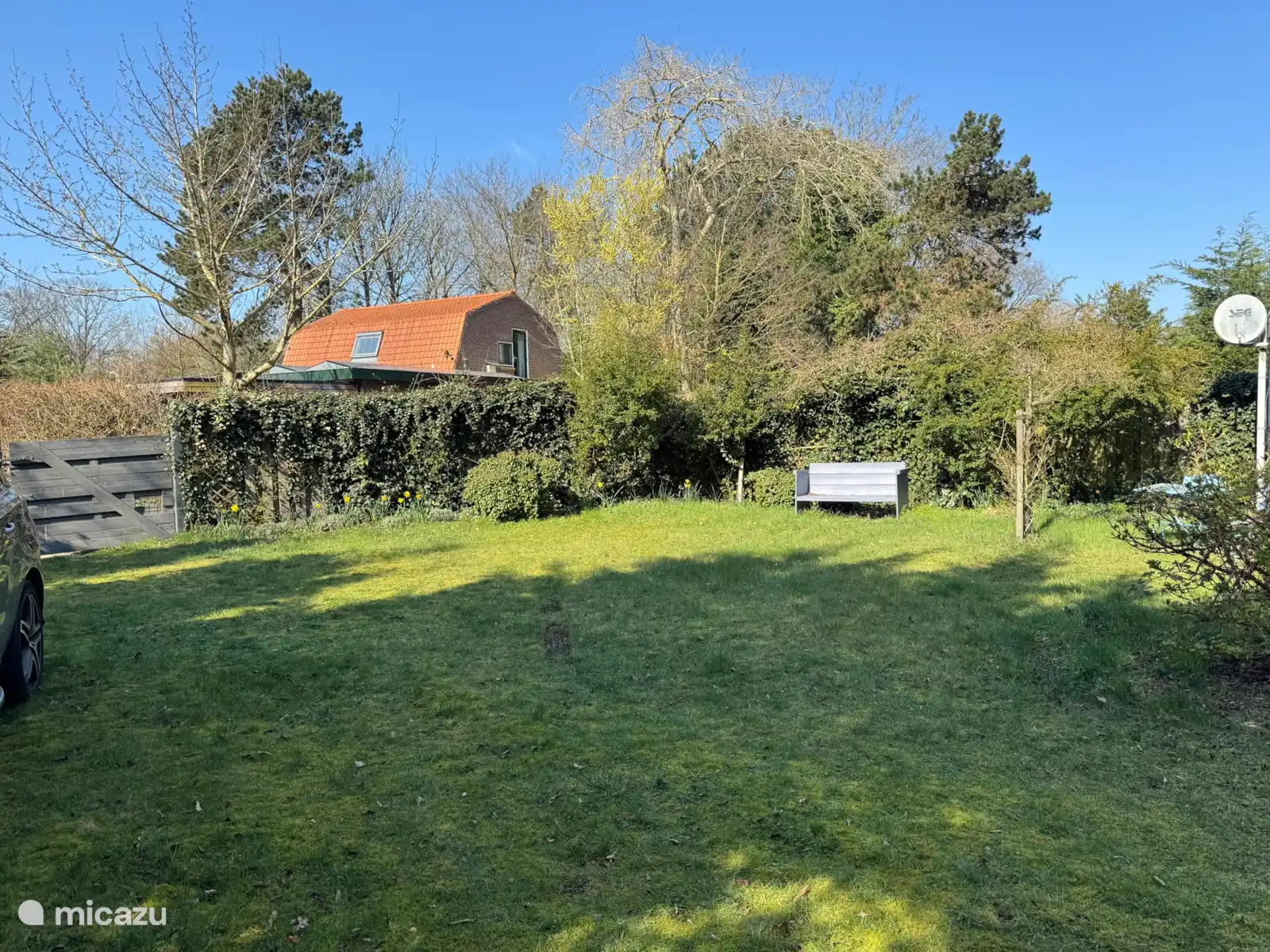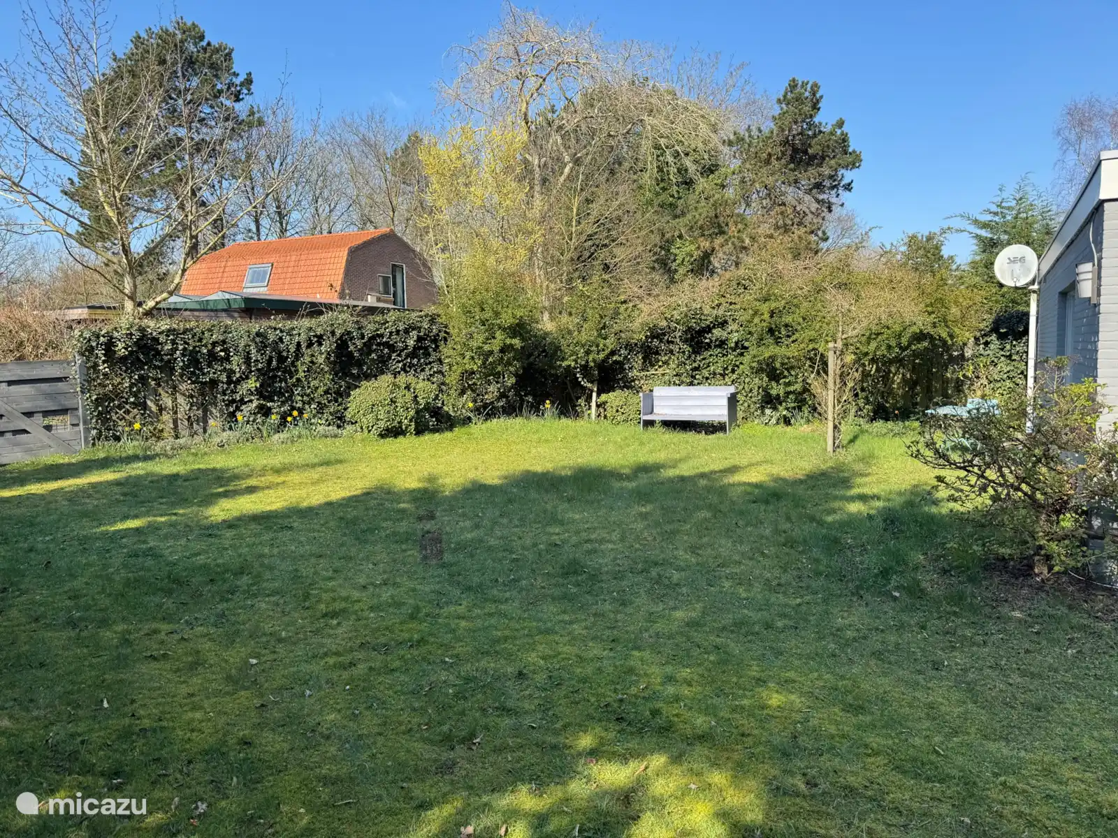 Der großzügige, grüne Garten bietet viel Privatsphäre und ist perfekt zum Entspannen, zum Essen draußen oder einfach zum Genießen der Ruhe.