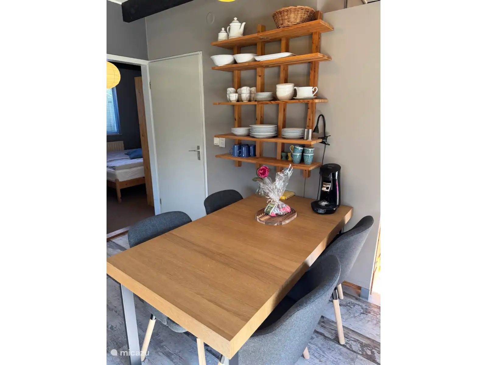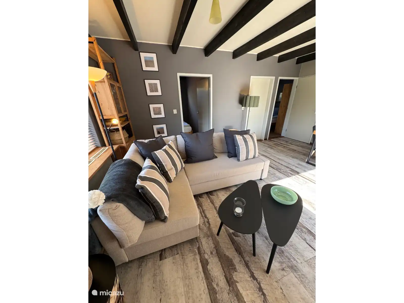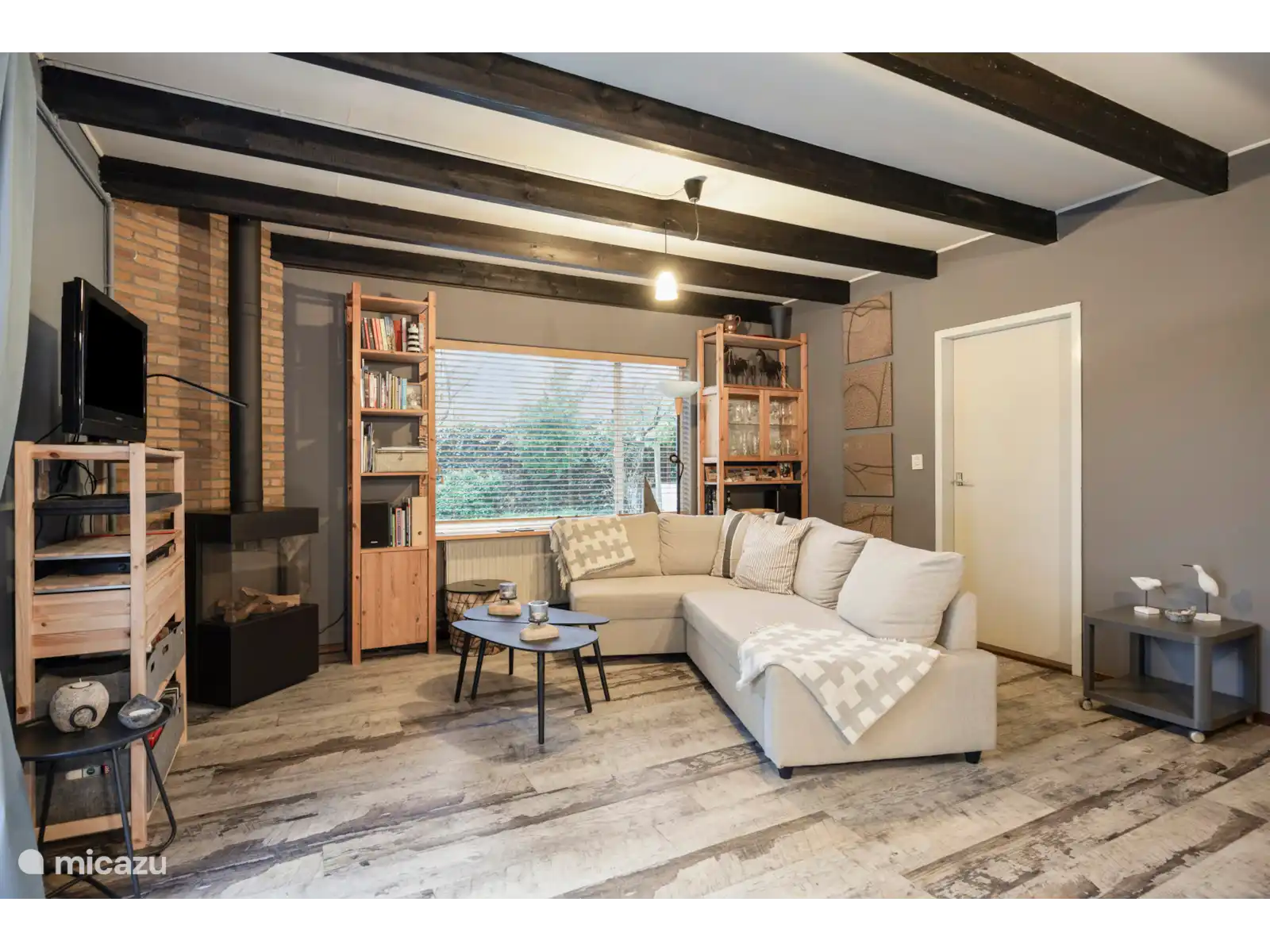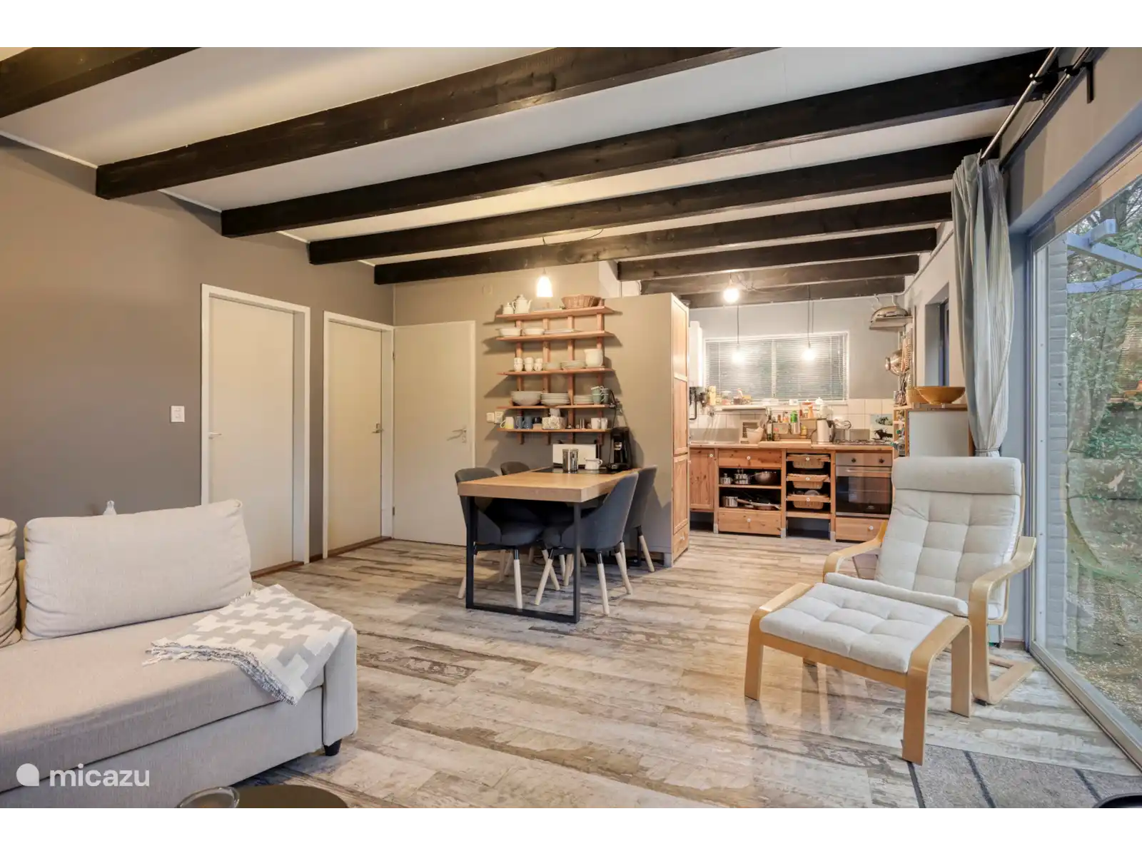Das Haus ist für **bis zu 6 Personen** geeignet und hat dank der Verwendung von Holz und großen Fenstern ein warmes, natürliches Aussehen. Das helle Wohnzimmer mit gemütlichem Kamin macht es auch in den kälteren Monaten zu einem wunderbaren Ort zum Bleiben.