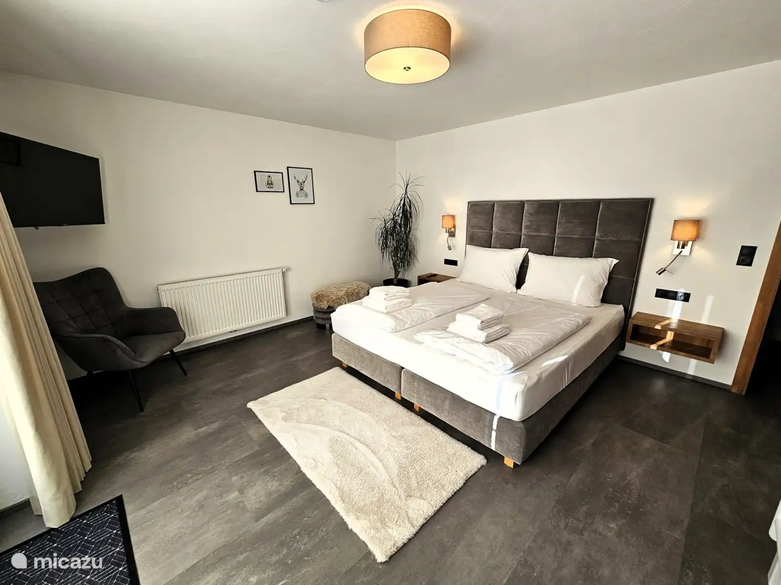 1 Schlafzimmer mit Doppelbett und Schlafsofa für 1 Person