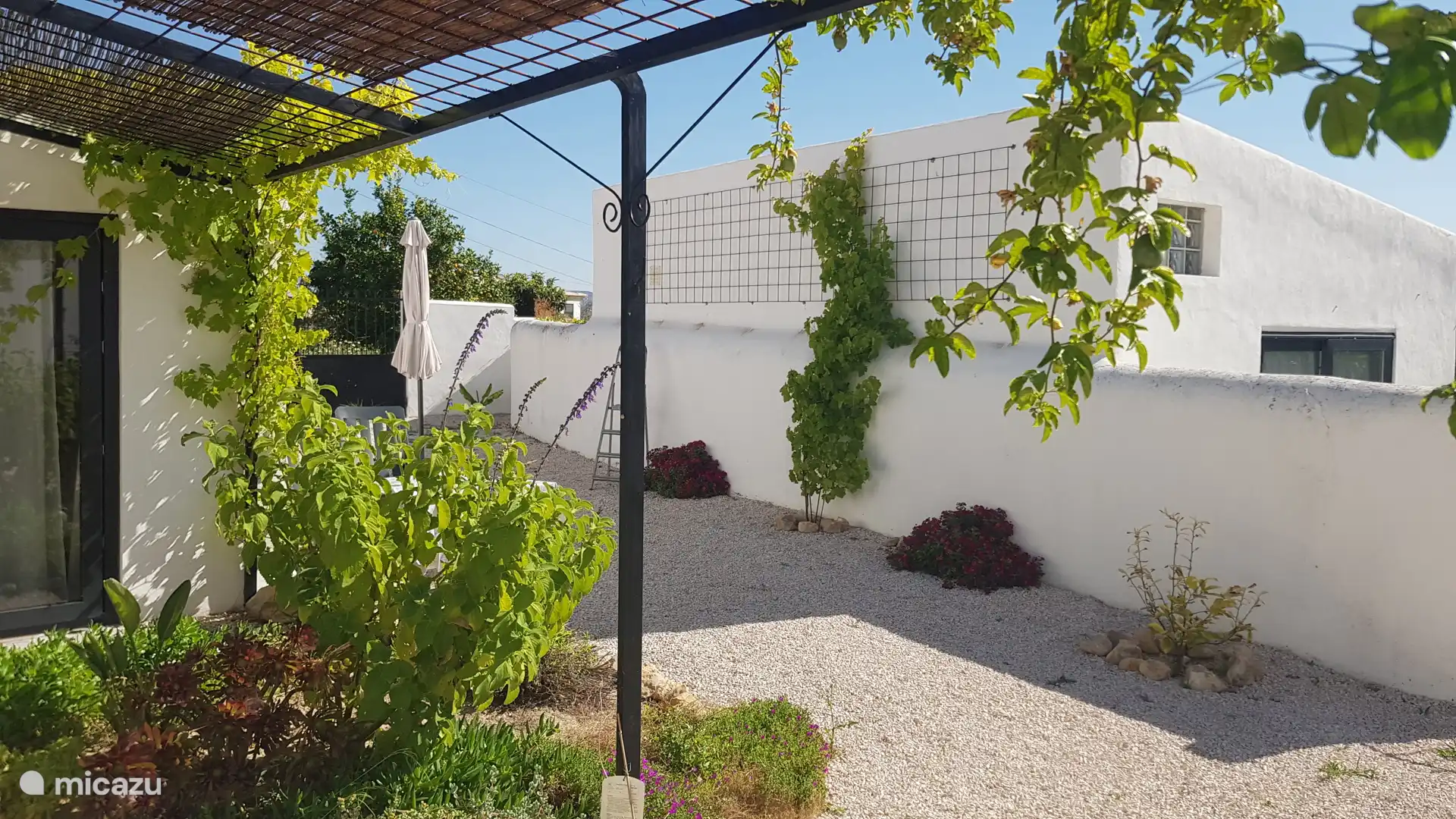 Casa Laranja besteht aus zwei Etagen. Im Erdgeschoss befindet sich der Eingang, das Badezimmer und das Schlafzimmer. Vom Schlafzimmer aus gelangt man über eine offene Treppe in den ersten Stock, wo sich das Wohnzimmer mit offener Küche und privater Terrasse befindet.