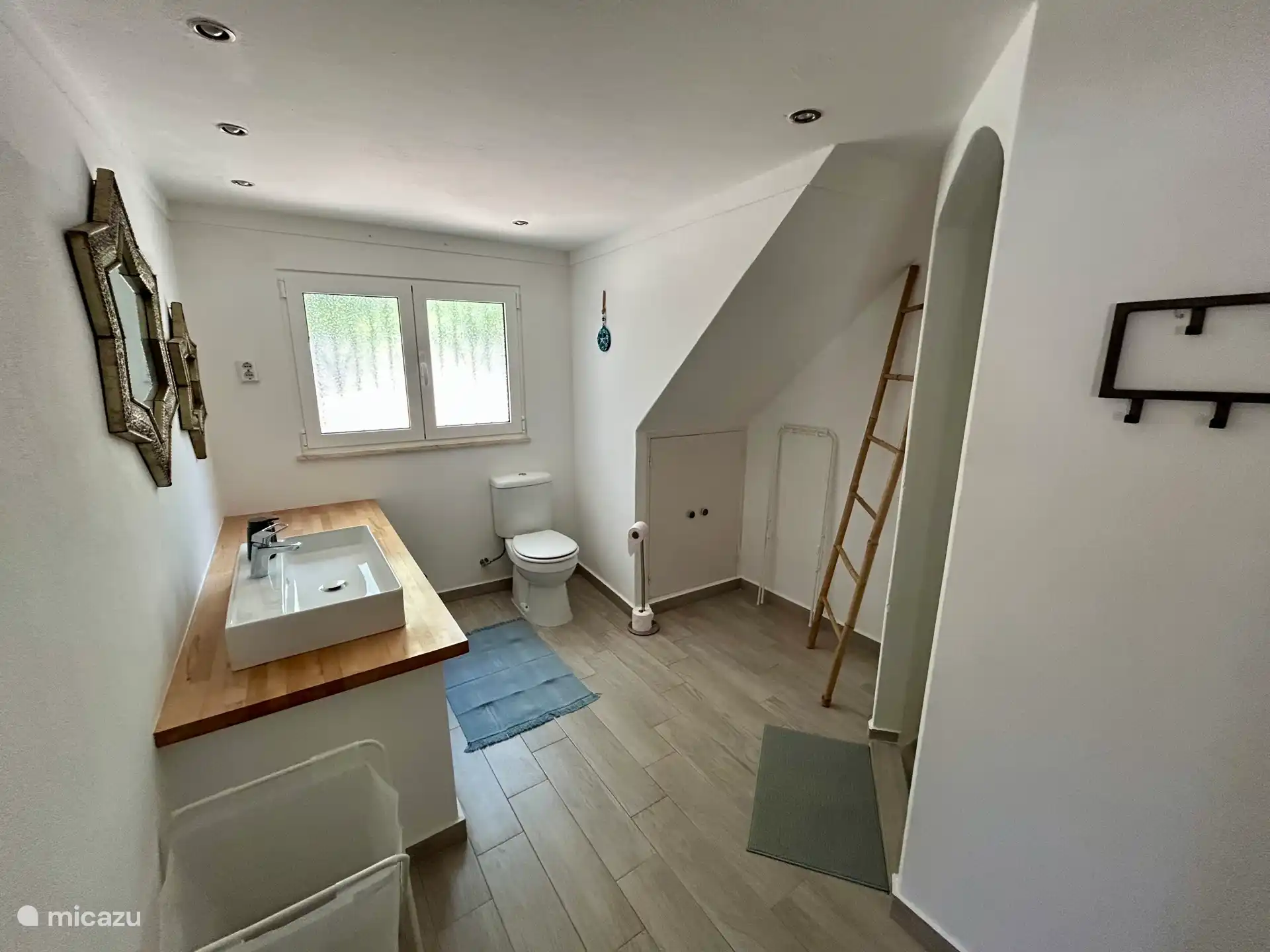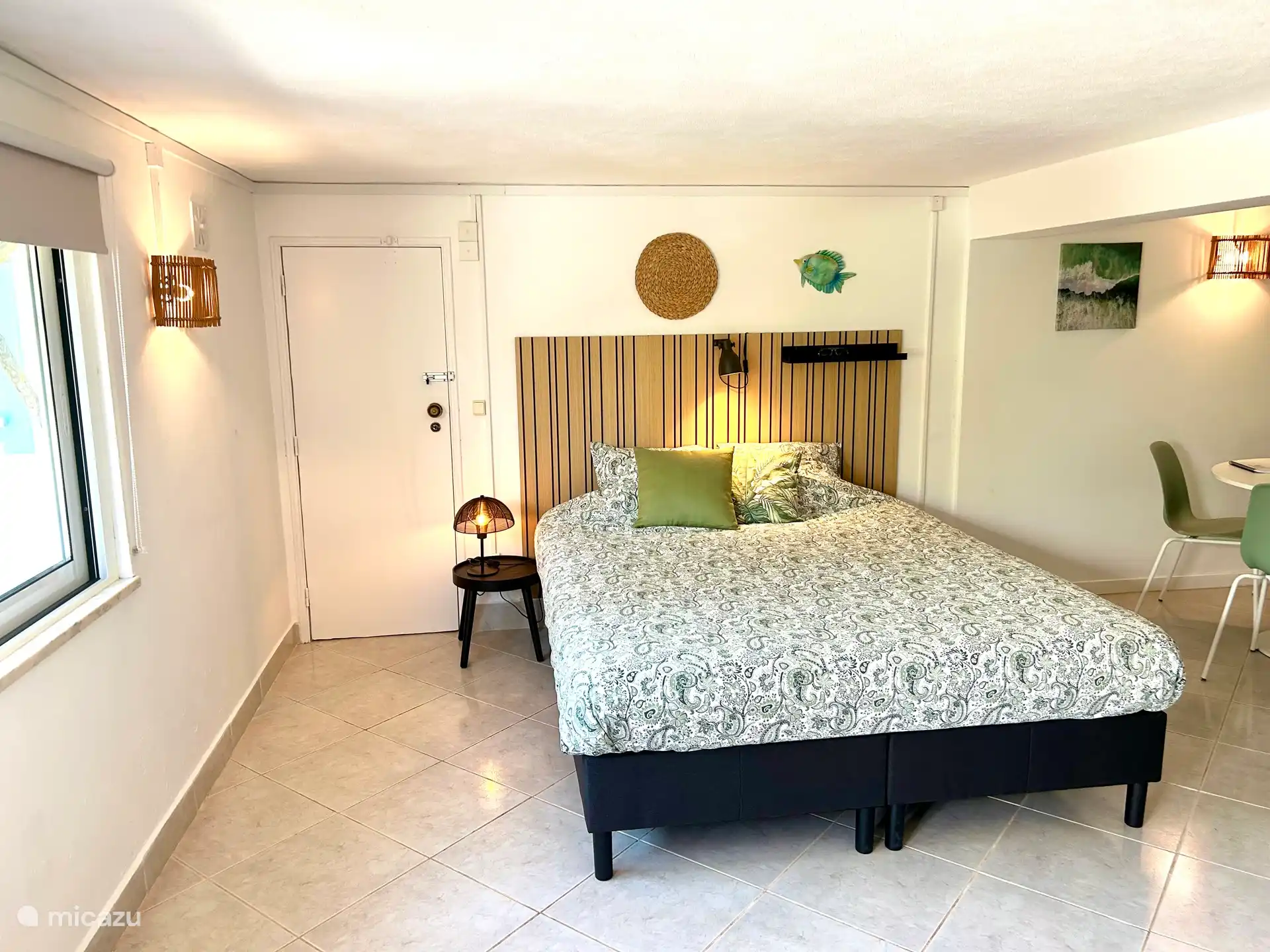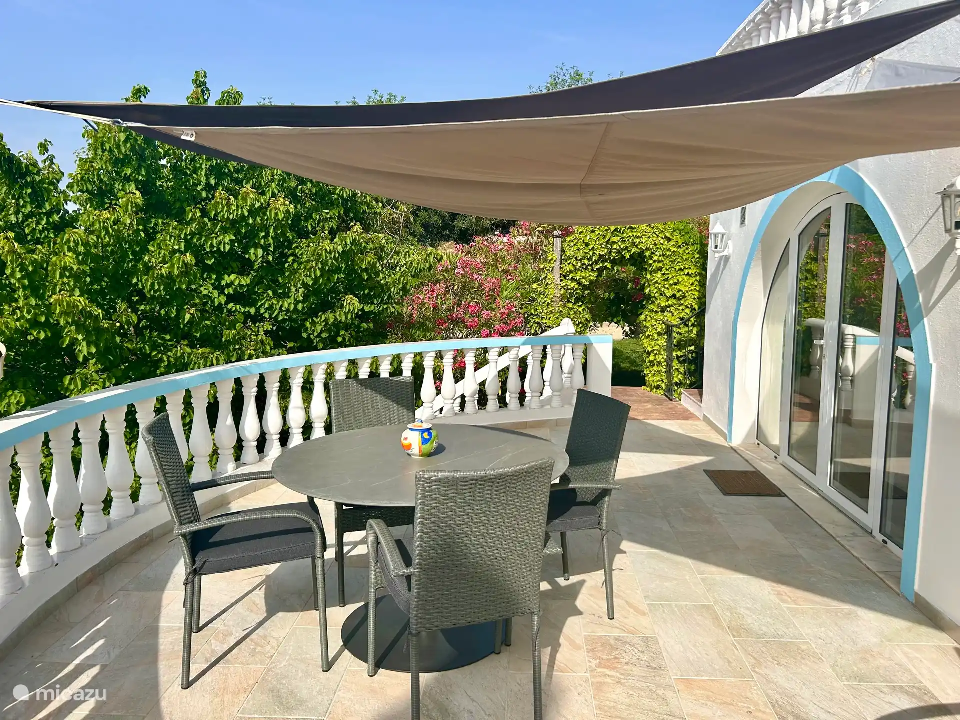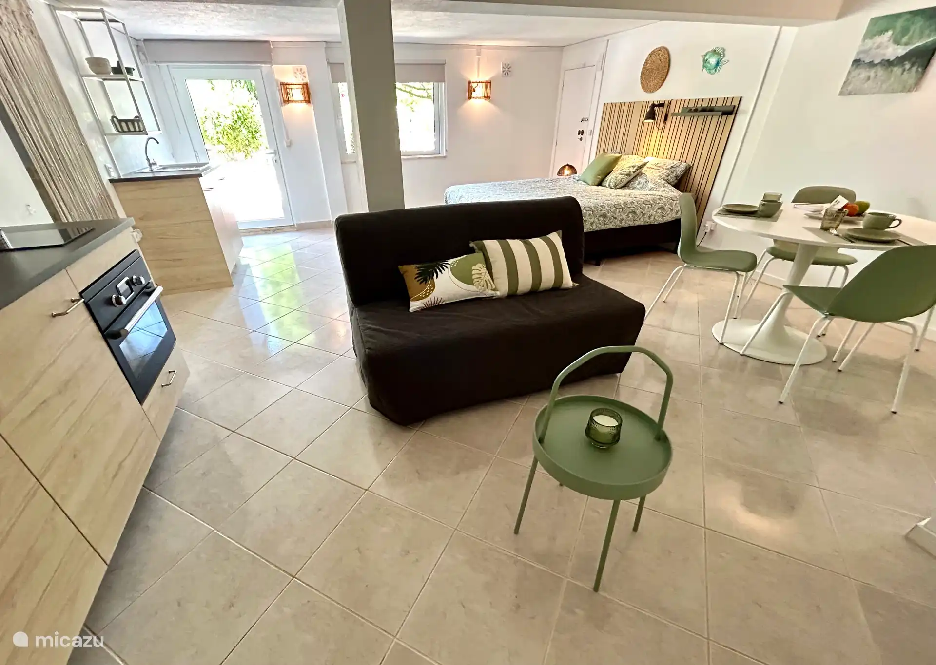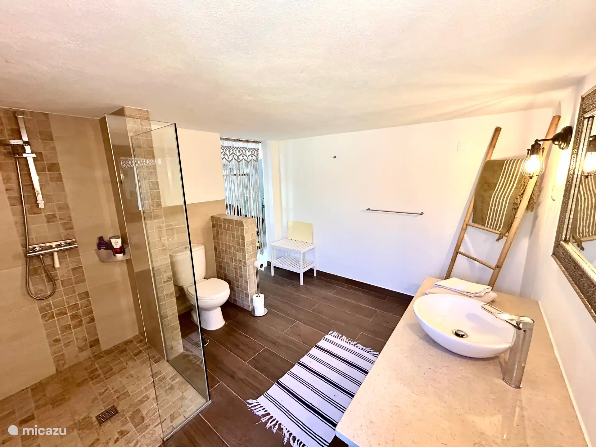 Geräumige 3-Zimmer-Wohnung mit einem Wohnzimmer im ersten Stock (mit Sitzecke und TV) mit bequemer 2-Personen-Schlafcouch, Esstisch und umfangreicher Küche sowie einem sehr sonnigen Balkon mit Sitzgelegenheit. Mittels eines Schattentuchs (Tarp) können wir es im Sommer angenehmer machen. Im Erdgeschoss befinden sich zwei Schlafzimmer (beide mit einem Doppelbett oder 2 Einzelbetten) und zwei moderne Badezimmer. Im geräumigsten Schlafzimmer ist auch genügend Platz für ein zusätzliches Babybett (auf Anfrage erhältlich).