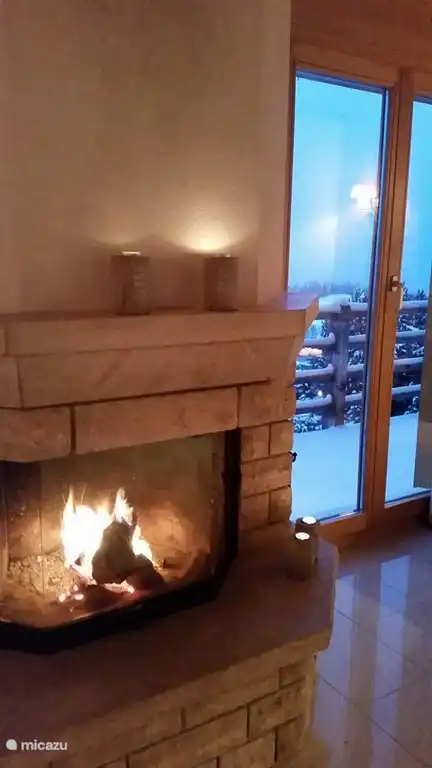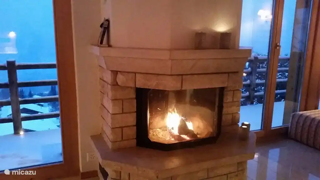 Im ersten Stock finden Sie das Wohn-/Esszimmer mit Kamin, offene Küche mit allen Geräten wie Mikrowelle, Geschirrspüler, Kühlschrank mit Gefrierfach und einer Nespresso-Maschine.