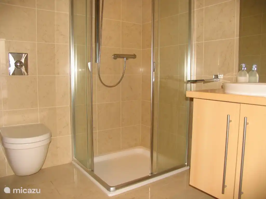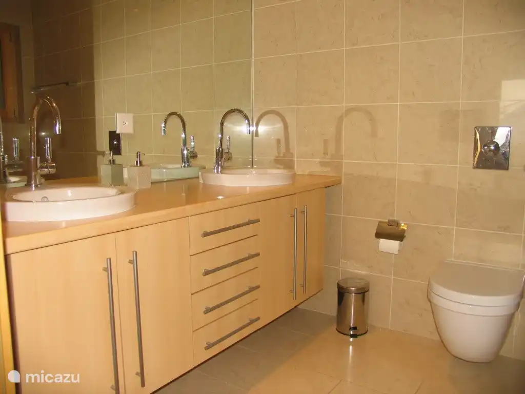 Das Hauptschlafzimmer verfügt über ein Doppelbett, einen Kleiderschrank, ein eigenes Badezimmer mit Badewanne/Dusche, WC, Fußbodenheizung und Doppelwaschbecken sowie einen Haartrockner