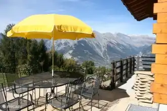 Die geräumige, sonnige Terrasse ist mit einem großen Tisch und Stühlen im Freien ausgestattet, so dass Sie mit der ganzen Familie mit Blick auf das Rhône-Tal draußen essen können.