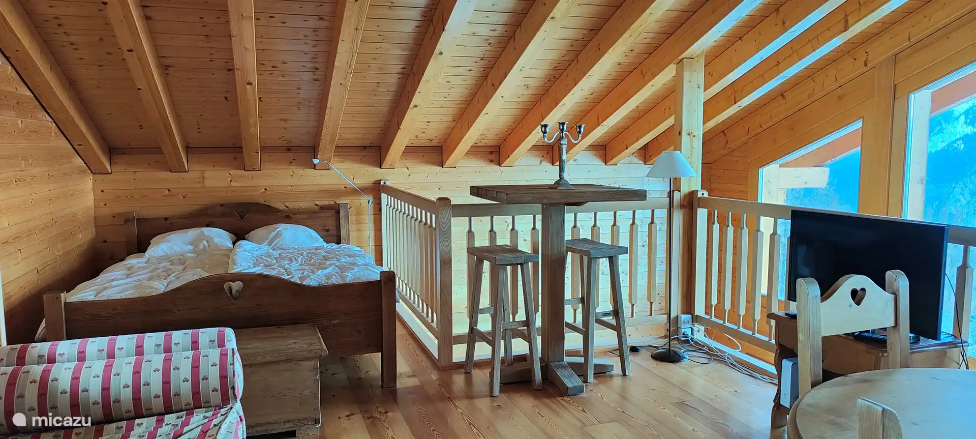 Über dem Wohnzimmer befindet sich das Loft. Dieses ist mit einer Sitzecke, einem Schlafsofa und einem Doppelbett ausgestattet.
