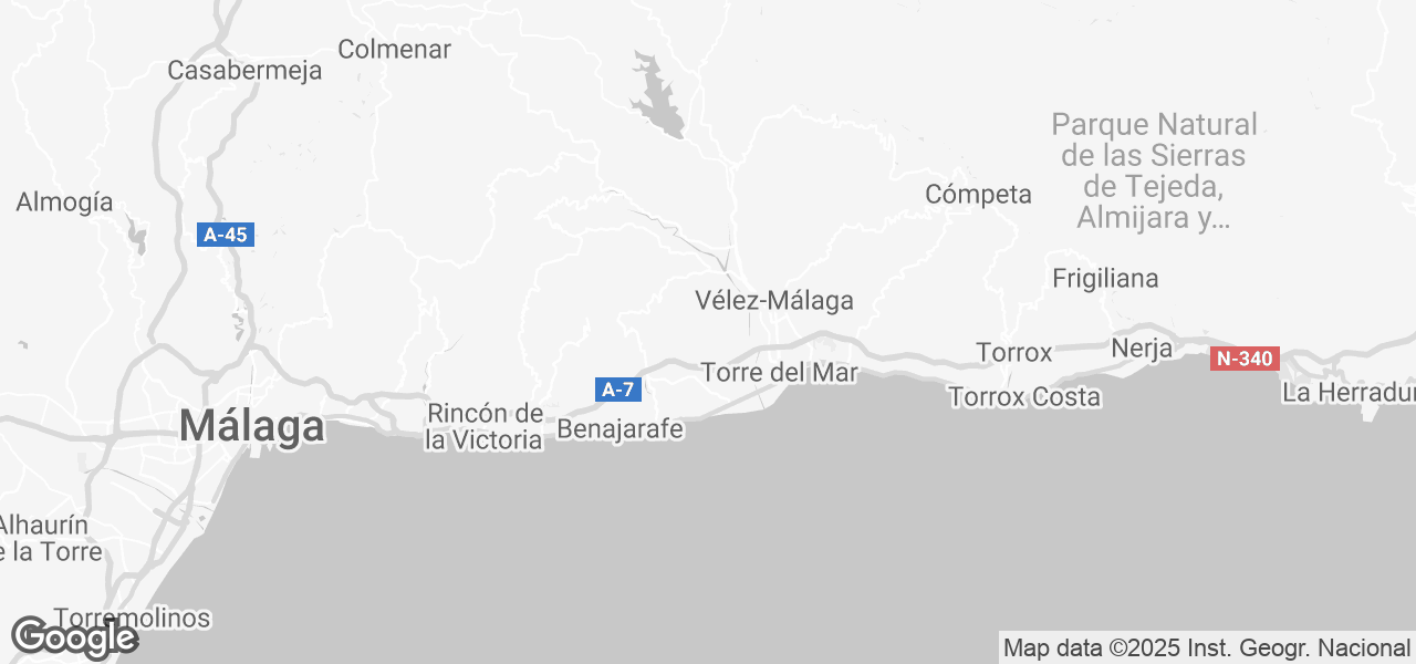 Der mehrfach ausgezeichnete Strand von Torre del Mar ist nur 14 km vom Haus entfernt. Das schöne Málaga, die gastronomische und kulturelle Perle der Costa del Sol, ist in einer halben Stunde über die Autobahn zu erreichen.