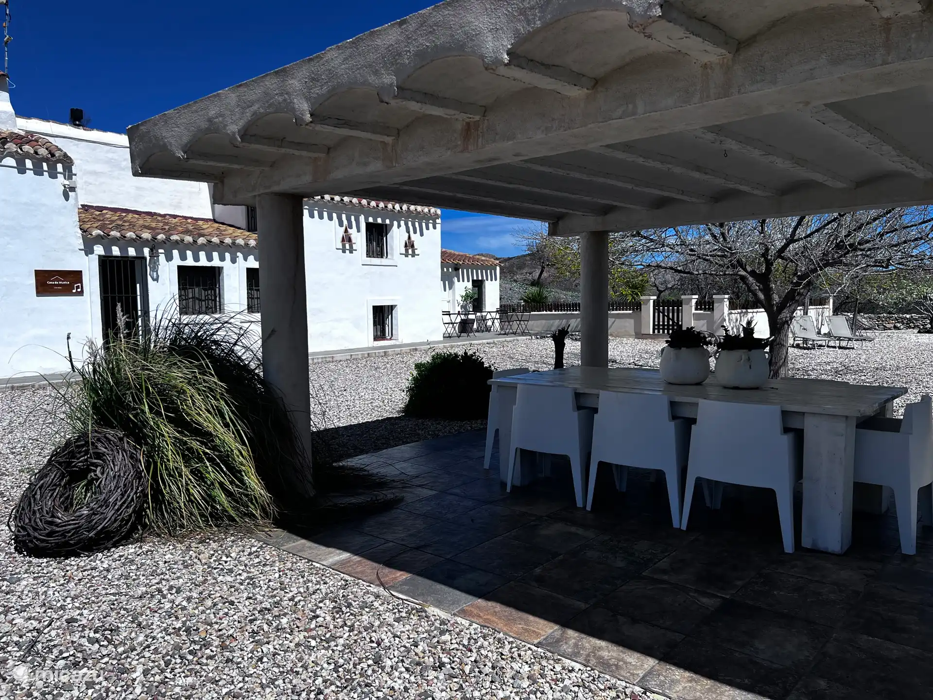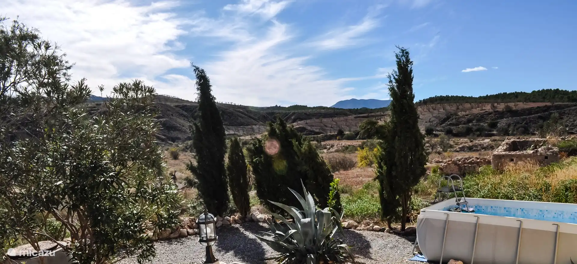 Sie haben dieses Haus aus Ihren Favoriten entfernt. finca, Velez Rubio, Andalusien, Spanien - Finca Mi Casita Schwimmbad Vor dem Haus mit der Veranda, wo Sie sitzen und essen können. Abends lässt es sich wunderbar draußen sitzen, den Grillen lauschen und in den Sternenhimmel schauen. Im Winter ist es wunderbar, abends ein Feuer zu machen und gemütlich am Kamin zu sitzen. Ein ganzer Haufen Holz wartet auf Sie! Neue Küche mit Backofen, Mikrowelle, Kaffeemaschine, Waschmaschine und Kühl- / Gefrierschrank. Das Wohnzimmer ist schön kühl im Sommer. Aber mit dem Kamin im Winter angenehm warm. Bequemes 3-Sitzer-Sofa im geräumigen Wohnzimmer. Küche mit Durchgang zum Wohnzimmer. Küche mit Geräten. Das Hauptschlafzimmer mit Klimaanlage. Schlafzimmer 2 mit Klimaanlage. Schlafzimmer drei mit Klimaanlage. Schlafzimmer 4 Schlafzimmer 5. Badezimmer 1. Badezimmer 1. Badezimmer 2 Swimmingpool und Blick auf 'La Muela' So heißt unser Haus! Der Pool ist komplett ummauert und das Tor ist abschließbar. Ein schönes Gefühl, wenn man Kinder hat, die noch keinen Schwimmschein haben. Veranda vor dem Haus. Schöner Ort mit Schatten und einem schönen Blick auf die Berge. Veranda mit bequemer Lounge-Couch. Veranda mit Sitzecke. Blick auf den Berg 'La Muela'. Bei Ihrer Ankunft erwartet Sie eine schöne Flasche Cava! Schwimmbadbereich. Es gibt unzählige wundervolle Ecken, Plätze und Plätze rund um das Haus. Es gibt auch sehr schöne alte Olivenbäume rund um das Haus. Das ist im Vorgarten. Der Garten ist wunderschön mit so vielen Blumen, Pflanzen und Bäumen. Die 25 Olivenbäume in unserem Garten werden im Dezember geerntet und geben uns jedes Jahr 50-100 Liter Olivenöl. Im Garten wächst alles, von Trauben, Mandeln und Oliven bis hin zu Feigen und Granatäpfeln. Vor dem Haus. Hinteres Haus mit La Muela im Hintergrund Vorderhaus mit links unser Schwimmbad. Garage. Dieser Mandelgarten steht zwischen dem Haus und der Straße. Sie können die Mandeln essen. Der Garten mit 'La Muela' im Hintergrund. Ein Campingbett steht zur Verfügung. Ein Hochstuhl ist vorhanden. Schloss Velez-Blanco, ca. 10 Autominuten von unserem Haus entfernt. Velez-Blanco Schloss. Blick über Velez-Blanco vom Schloss. Mit La Muela in der Ferne. Das Rathaus (Ayuntamiento) von Velez-Rubio. Auf dem Platz befinden sich drei nette Bars mit einer Terrasse, auf der Sie für wenig Geld leckeres Essen genießen können. Die schöne Kirche von Velez-Rubio. Blick auf „La Muela“ bei Sonnenuntergang eine andere Ansicht von 'La Muela' Das ist der Oliven- und Mandelhain rund um unser Haus. Pool, Garten und unsere schöne Aussicht. Wolken, Sonnenuntergang über einer Mandelplantage. Vor allem im Frühling ist es sehr grün mit vielen Blüten. Finca Mi Casita 9,2 Spanien Andalusien Velez Rubio 2-6 Personen 5 Schlafzimmer 9 Bewertungen Nachtpreis ab Pro Woche (7 Nächte): € 1.260,- Nachtpreis ab € 180,-