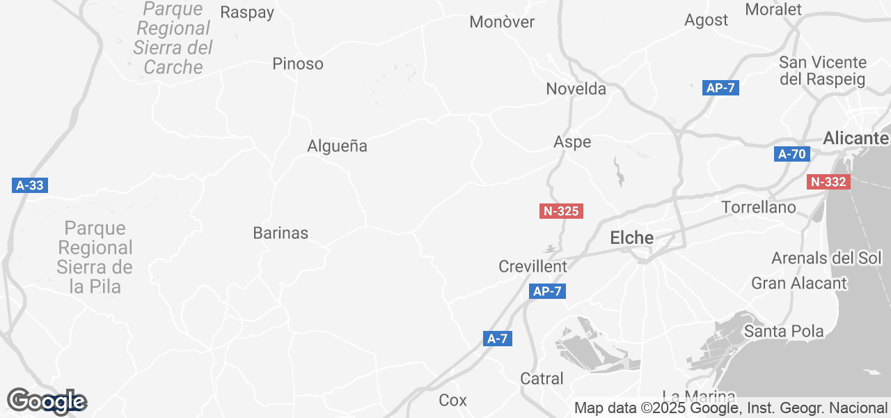 Nur eine halbe Autostunde entfernt erreichen Sie die Küste mit ihren wunderschönen Stränden, den berühmten Badeort Torrevieja oder Santa Pola mit verschiedenen Wassersportmöglichkeiten. Elche, berühmt für seinen schönen Palmenpark (ein Vermächtnis), ist mit einer 20-minütigen Fahrt auf jeden Fall einen Besuch wert. Dieser Palmenpark ist der größte Europas und steht auf der UNESCO-Welterbeliste.