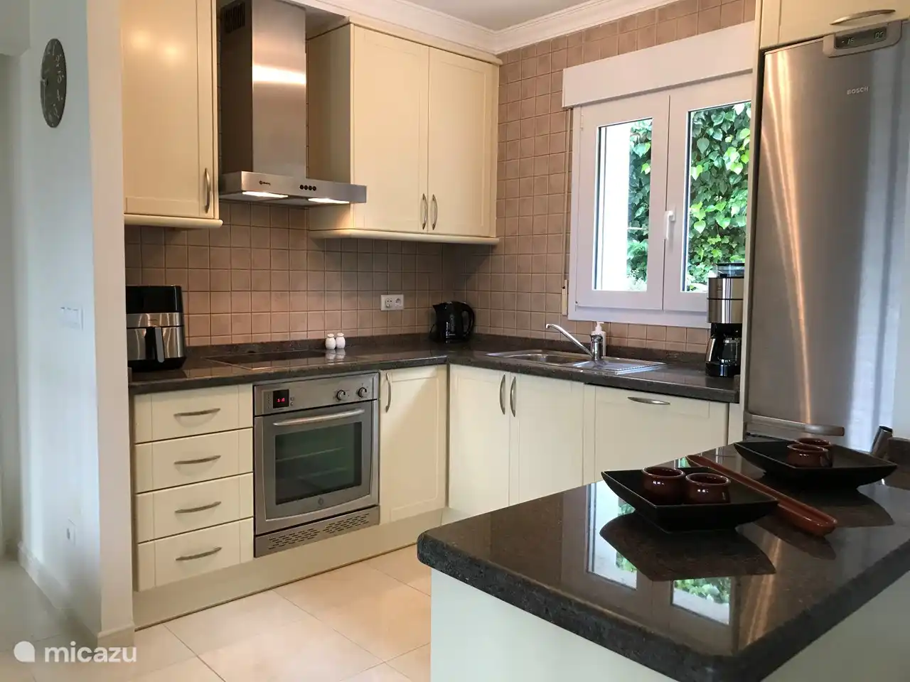 Sie haben dieses Haus aus Ihren Favoriten entfernt. ferienhaus, Benidoleig, Costa Blanca, Spanien - Haus Virginia Sie wohnen in dieser schönen, einstöckigen, traditionellen spanischen Villa, 15 Gehminuten vom Dorfzentrum entfernt Casa Virginia hat nur eine Treppe. Das Haus ist über die Auffahrt gut zu erreichen. Auch für Menschen, die weniger in der Lage sind, Treppen zu steigen. Es gibt genügend Parkplätze sowohl vor der Garage als auch oberhalb der Einfahrt Casa Virginia verfügt über ausreichend Parkplätze. Schon wenn man die Auffahrt hinaufgeht, wähnt man sich mit der Palme und dem Lorbeer in einer mediterranen Atmosphäre Casa Virginia hat viele Terrassen. Ein idealer Ort für Ruhesuchende, Wanderer, Radfahrer und natürlich auch sehr gut geeignet für diejenigen, die gerne Golf oder Tennis spielen. Genießen Sie die Aussicht auf das Dorf Orba Badezimmer mit Toilette und Badewanne Schlafzimmer mit 2 Betten. Matratzengröße 90 x 185 Präsentieren Sie Kommoden und große Einbauschränke Schlafzimmer mit 2 Betten. Größe Matratze 90 x 200 cm Für die Hobbyköche unter uns! Voll ausgestattete offene Küche mit Elektroofen und einem Gasofen. Die Küche ist komplett ausgestattet. Es wurde an alles gedacht, um Ihren Gästen ein optimales Essen zu bieten Esszimmer Komfortables großes Wohnzimmer mit Terrassentüren zum Balkon, TV-Raum mit kostenlosem WLAN. Großer geräumiger Flur mit traditionellen spanischen Terrassentüren Casa Virginia verfügt über eine Waschmaschine und einen Trockner. In diesem Raum gibt es auch eine 3. Gästetoilette Fernsehraum mit niederländischem und englischem Satellitenfernsehen. Der Fernseher hat einen USB-Eingang Sonnenuntergang vom Haus aus gesehen Blick auf das Dorf Orba Vom Pool aus können Sie den Duft dieser Jasminpflanze riechen. Frische Trauben im Garten (in der Sommersaison) Der Garten ist von wunderschönen mediterranen Pflanzen umgeben Fröhliche Blumen im Garten Genießen Sie die spanische Atmosphäre in vollen Zügen. Großer Garten mit viel Sonne. Naturliebhaber können den Schatten der Bäume genießen. Dank der Vegetation ist Casa Virginia für alle geeignet, die Ruhe, Weite und Gelassenheit mögen. Beide Schlafzimmer verfügen über leise Ventilatoren, die die gesamten Schlafzimmer mit frischer Luft versorgen. Fernbedienung der Deckenventilatoren Der Garten Blick von Casa Virginia Dorf Orba ansehen Casa Virginia verfügt über viele Terrassen, die sich mehr oder weniger im Erdgeschoss befinden. Sie können sich den Pool ansehen und zu ihm hinübergehen, um ein Bad zu nehmen Sonnenuntergang. Ein schöner Spaziergang zum Dorf und Sie werden diese klare, saubere Bergluft sehen Casa Virginai wurde kürzlich gestrichen und ist gut gesichert. Es gibt auch Moskitonetze in den Fenstern Haus Virginia 8,7 Spanien Costa Blanca Orba 1-4 Personen 2 Schlafzimmer 5 Bewertungen Nachtpreis ab Pro Woche (7 Nächte): € 770,- Nachtpreis ab € 110,-