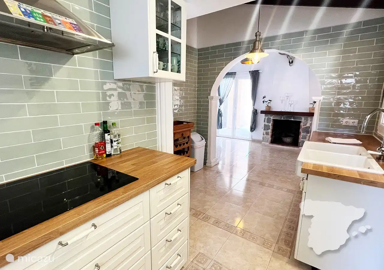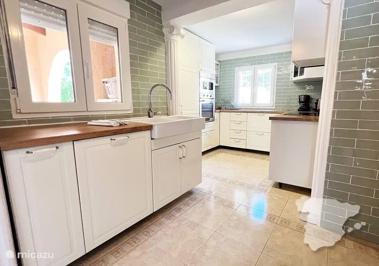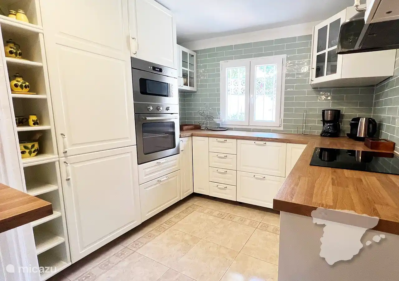 Beim Betreten betreten Sie einen hellen und einladenden offenen Wohn- und Essbereich, der mit integrierter Klimaanlage für einen komfortablen Aufenthalt ausgestattet ist. Auf der rechten Seite finden Sie eine voll ausgestattete Küche, in der Sie Ihre kulinarischen Kreationen unterstützen können. Die Küche ist mit allem Notwendigen ausgestattet: Kühlschrank, Gefrierschrank, Backofen, Mikrowelle, Induktionskochfeld , Kaffeemaschine, Wasserkocher und Toaster.