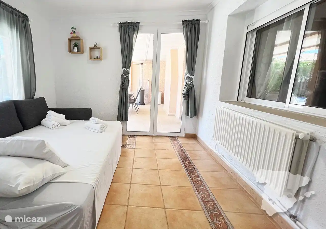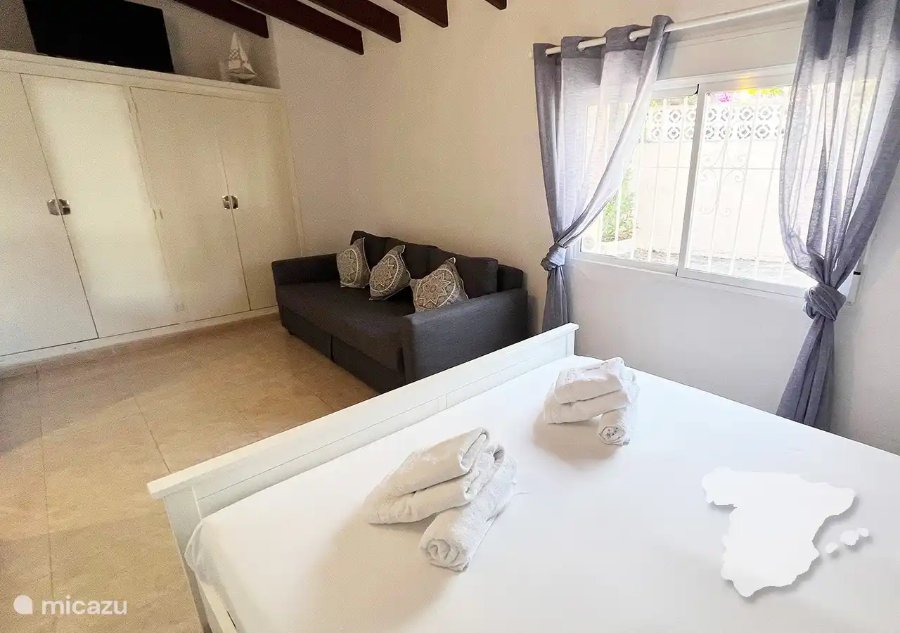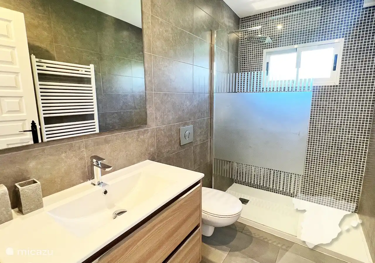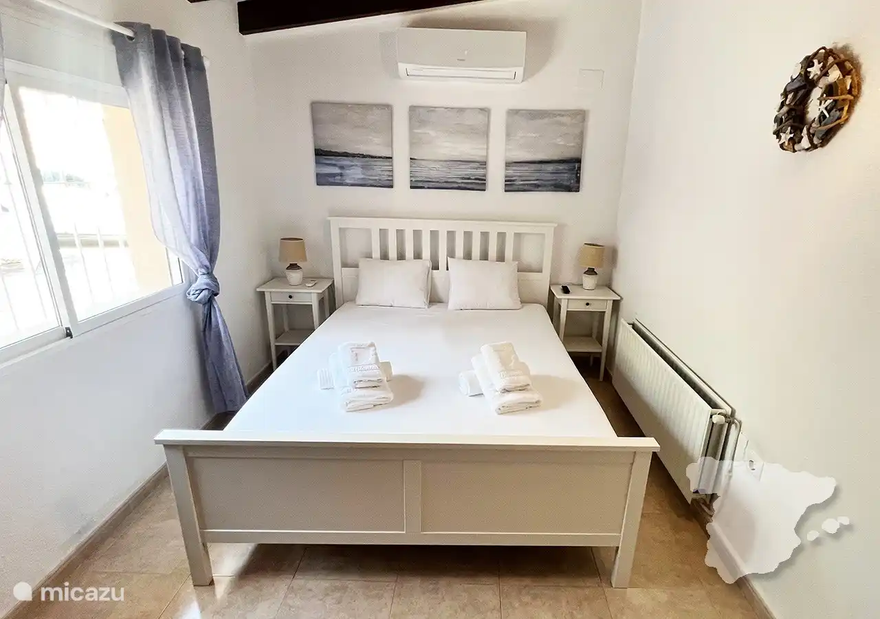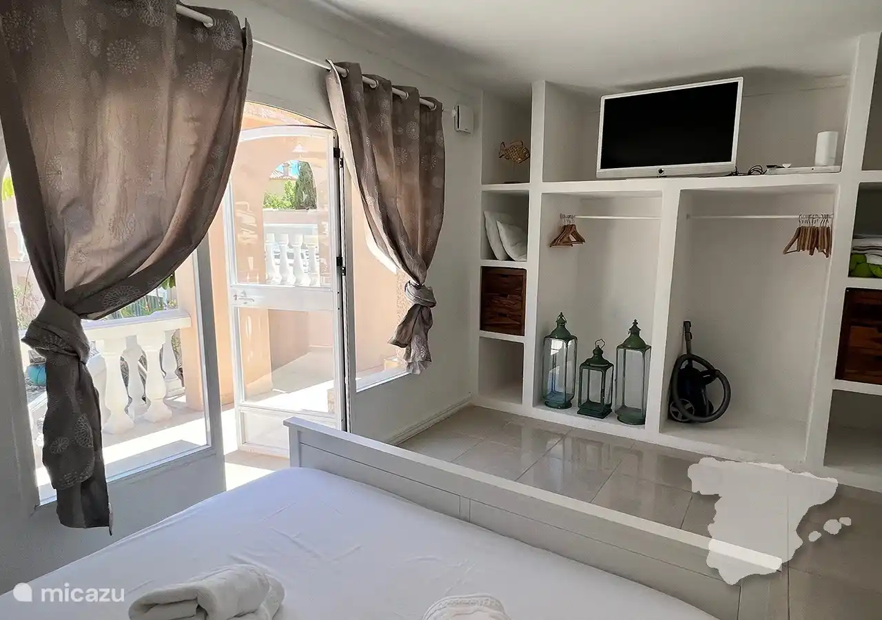 Im Inneren bietet die Wohnung drei gut ausgestattete, klimatisierte Schlafzimmer und zwei moderne Badezimmer. Die Master-Suite dient als Oase der Ruhe, mit einem bequemen Doppelbett, viel Stauraum, einem Smart-TV und einem atemberaubenden Meerblick. Das eigene Badezimmer verfügt über ein Doppelwaschbecken, eine luxuriöse Dusche und eine Toilette. Das zweite und dritte Schlafzimmer verfügen jeweils über zwei Einzelbetten und einen Kleiderschrank. Ein separates Badezimmer weiter unten auf dem Flur bietet zusätzlichen Komfort mit Dusche, Waschbecken und WC. Für zusätzlichen praktischen Komfort sorgt auch ein Hauswirtschaftsraum mit Waschmaschine.