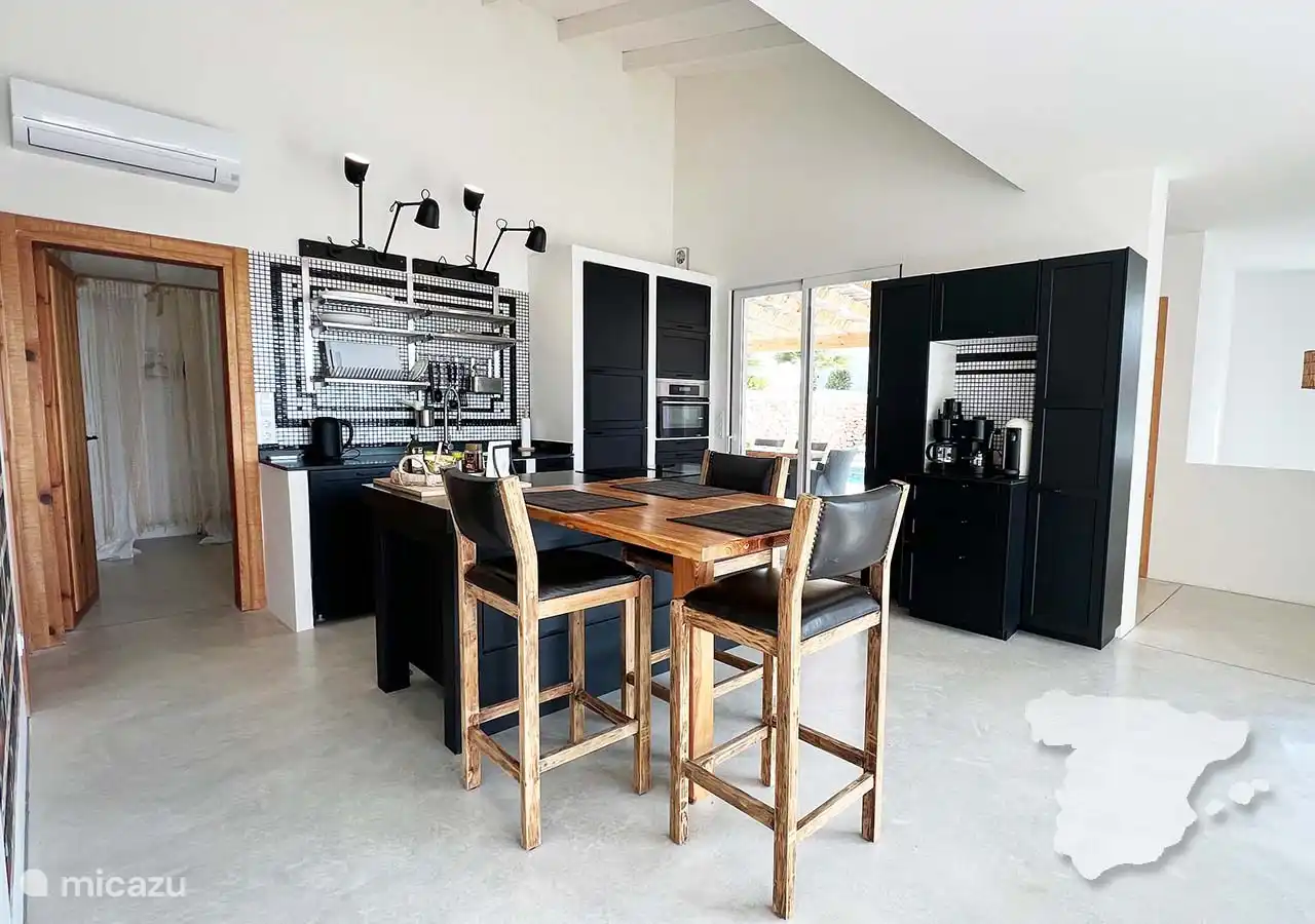 Die Villa Olga bietet einen geräumigen Wohnraum, der die gemütliche Atmosphäre Spaniens ausstrahlt. Entspannen Sie sich auf der Couch oder lesen Sie die Zeitung auf einem der beiden Sitze. Genießen Sie das ganze Jahr über die spanische Natur. Im Winter kann es abends allerdings etwas kühl werden. Dann tun Sie sich alle zusammen und legen Sie ein zusätzliches Holzscheit in den Kamin.
