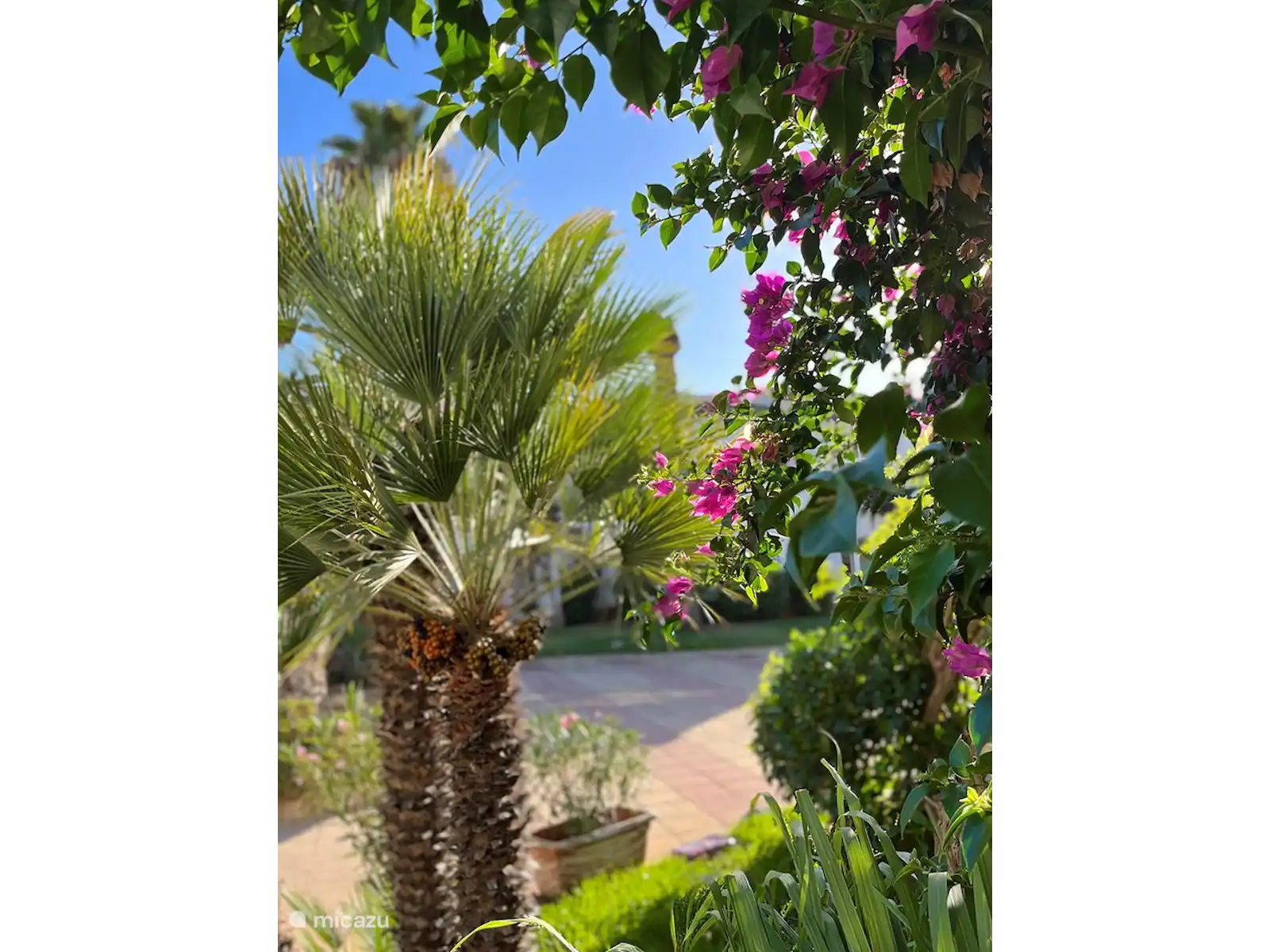 Die Wohnung ist modern eingerichtet und verfügt über zwei Schlafzimmer mit Klimaanlage und bequemen Betten. Eine überdachte Terrasse grenzt an den Garten. Die Küche ist komplett ausgestattet.