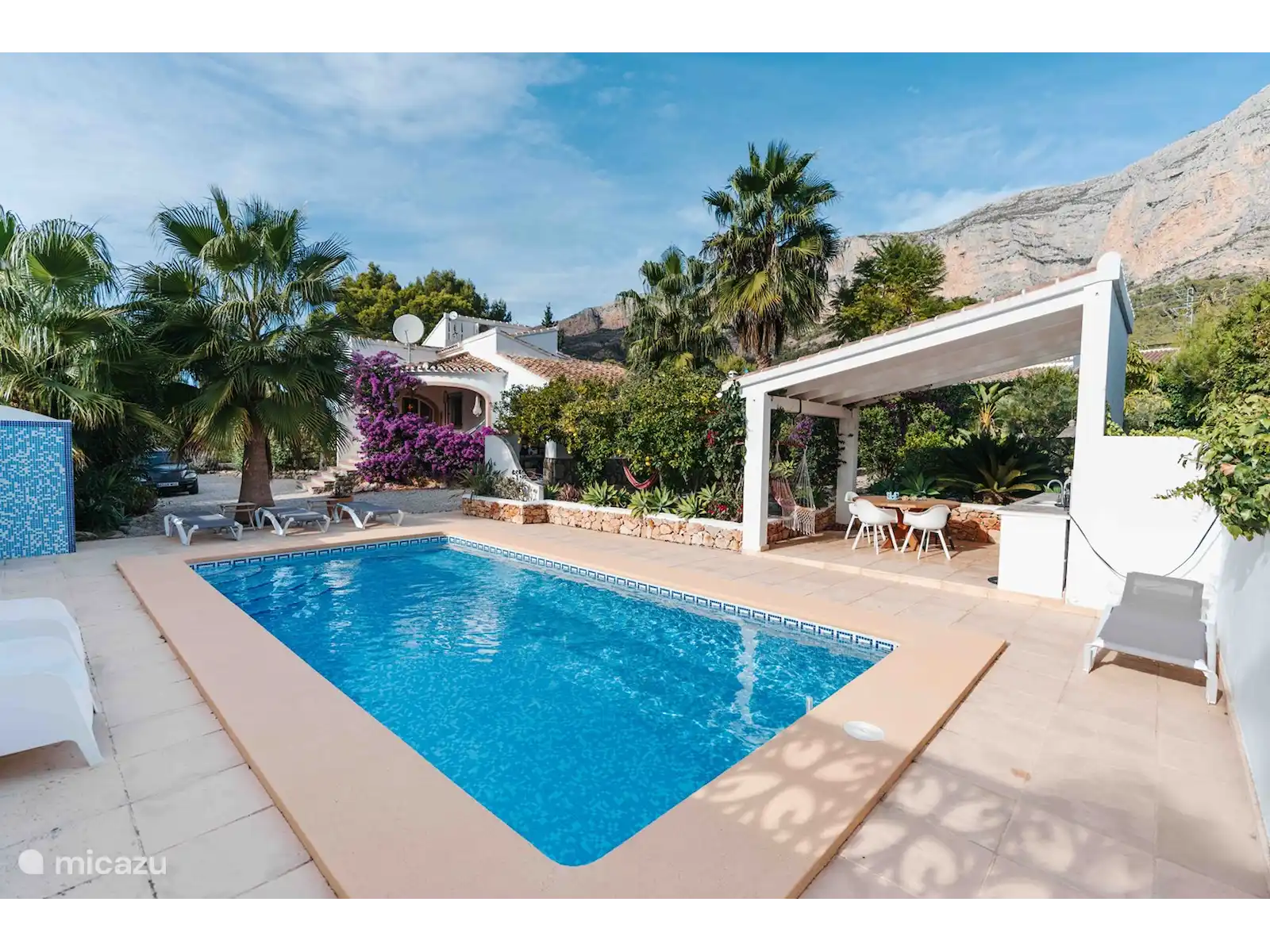 Ein wunderschönes, gemütliches Haus in einer ruhigen Nachbarschaft mit herrlichem Blick über den Montgo-Berg und das Tal. Viel Privatsphäre. Das Haus ist effizient eingerichtet mit einer geräumigen Küche, einem schönen Essbereich und einem gemütlichen Wohnzimmer. Die beiden Bäder sind in Bezug auf Fliesen retro und gut gepflegt. Beide haben ein Bad mit Dusche. Schlafzimmer 1 (klimatisiert) mit Doppelbett, Schlafzimmer 2 (klimatisiert) mit zwei Einzelbetten, die zusammengebaut werden können. Ein drittes Zimmer (mit Deckenventilator) befindet sich vorne im Haus mit einem Einzelbett. Die Küche verfügt über einen großen Kühlschrank mit Gefrierfach, Geschirrspüler, Gasherd mit Ofen und eine Nespresso-Kaffeemaschine. Im Hauswirtschaftsraum gibt es eine Waschmaschine und einen Trockner. Im gepflegten Garten befindet sich ein geräumiges Schwimmbecken mit einer gemütlichen Pergola und Speisebereich. Die Einfahrt bietet Platz für einige Autos. Das Haus ist 5 Minuten vom Dorf und 10 Minuten vom Strand (Auto) entfernt. Für frische Brötchen und köstlichen Kaffee gibt es einen Supermarkt eine Minute🔆 vom Haus entfernt