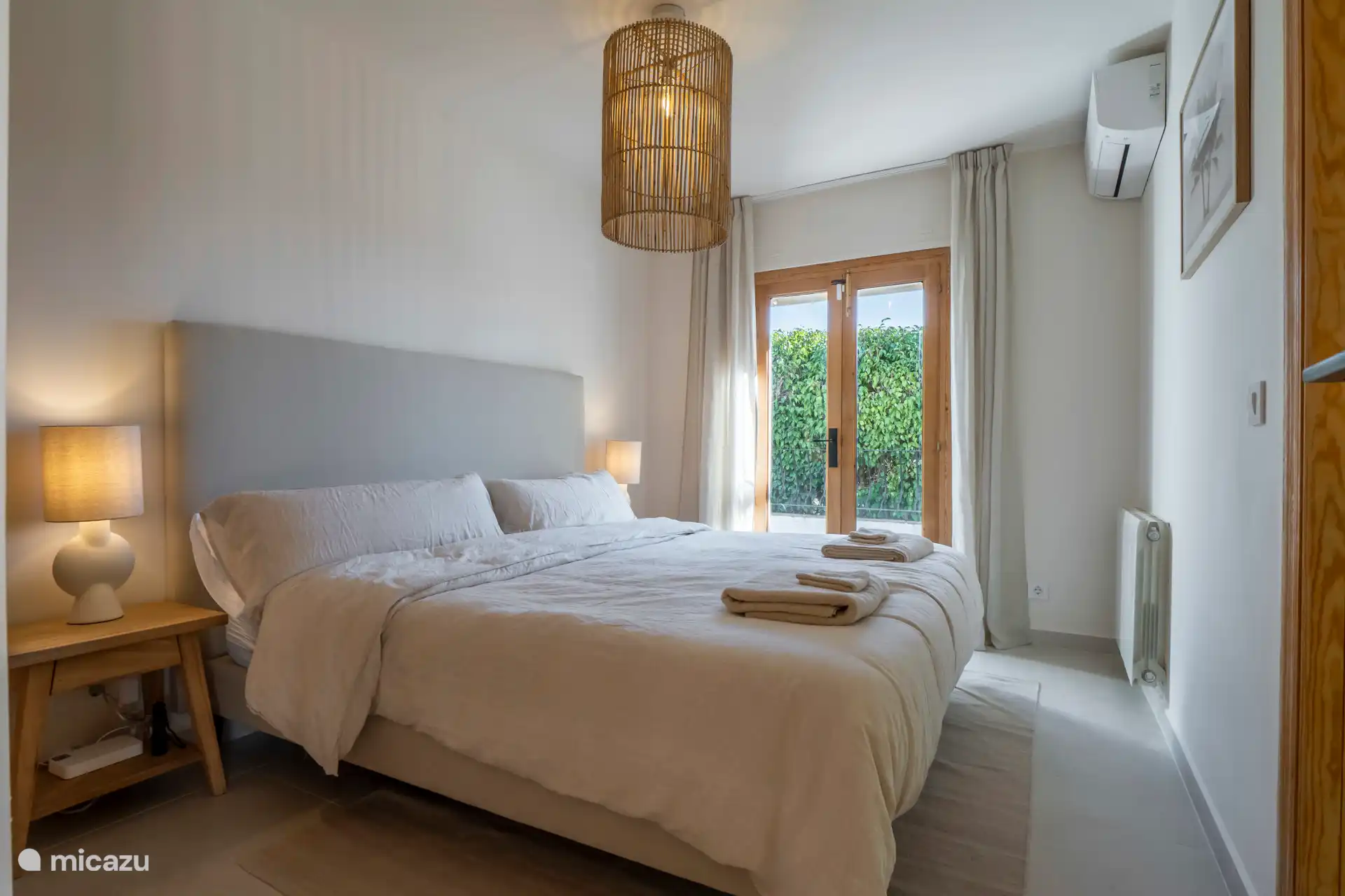 Im Erdgeschoss befinden sich 2 identische Schlafzimmer mit Schiebetüren zur Poolterrasse.